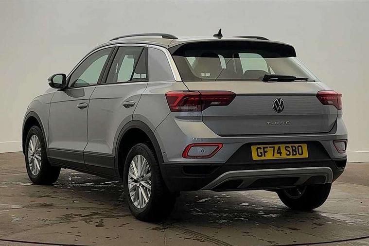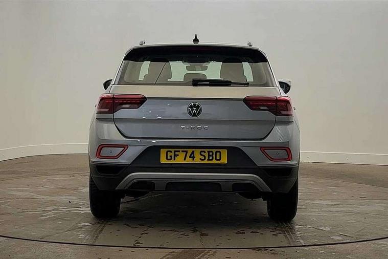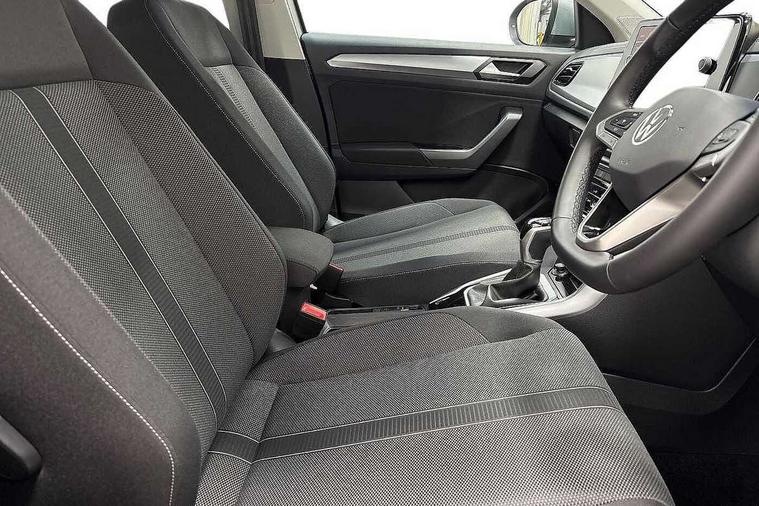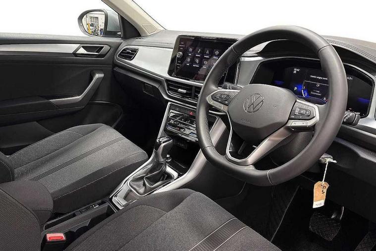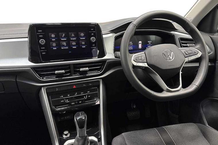 Advanced driver attention and drowsiness monitor, Dynamic road sign display, Emergency call service, Lane keeping system Lane Assist, Mobile phone interface, Modified key software - reduce switch off time for key status change to Long no motion, Online services, Park assist including front and rear parking sensors, Power assisted speed sensitive steering, Service interval indicator, Tailgate/trunk lid release from outside, Think blue trainer driver tips and journey analysis, Warning sound and light for front seatbelts unfastened, Wireless app connect, Battery regeneration during braking, Front shock absorption, Rear shock absorption chassis with increased ride height, Start/stop function with battery regeneration, DAB Digital radio, Diversity antenna for FM reception, Front and rear 6 speakers, Music playback - MP3, WMA and AAC files, Premium USB cable in choice of either Apple or Android smartphone compatibility, SD card slot, Simultaneous pairing of 2 compatible mobile devices, Title and cover art display, We Connect and We Connect Plus functionality, Auto dimming interior rear view mirror, Automatic hazard lights activation under emergency braking, Automatic headlight control with LED separate daytime running lights with coming/leaving home function, Black roof rails, Body coloured bumpers and radiator grille with chrome trim and front fog lamps with chrome bezel, Body coloured exterior mirror housings and door handles, Electrically adjustable and heated door mirrors, Extended roof spoiler, Exterior mirrors aspherical on driver side, convex on front passenger side, External USB type C socket and charging sockets, Front windscreen wiper with intermittent wipe and 4 position delay, Heated rear window, LED 3rd brake light, LED rear combination lamps, LED rear number plate lights, Power windows with comfort operation and circuit breaker, Rain sensor, Rear exhaust tailpipe, Rear fog light on one side and reversing lights on both sides, Rear side wing doors, Rear wash/wipe with intermittent wipe setting, Remote electrically foldable door mirrors, puddle lights and reverse activated passenger's door mirror, 12V power socket in centre console, 3 rear head restraints, 3 seat bench in 2nd row, 4 load lashing points in luggage compartment, Air care climatronic air conditoning system with active combination filter and 2-zone temperature control, Ambient lighting with mirror logo projection, Cloth upholstery, Door and side trim panel in cloth, Drawer under drivers seat, Driver/front passenger seat height adjustment, Front centre armrest, Front comfort sports seats, Front cupholders x 2, Front reading light, Front seat back storage pockets, Glove compartment door with light, Instrument lighting, white adjustable panel illumination, Interior light delay, Isofix child seat preparation, Leather gearshift handle, Load-through provision with cup holder when folded down ('Unsplit rear seat bench, split folding backrest, with centre armrest), Luggage compartment lighting, Lumbar support for driver's and front passengers seat, Non-folding front passenger seat backrest, Single front passenger seat, Storage compartment in left and right luggage area, Storage compartment in rear doors, Storage compartments in driver and front passenger doors, Sunvisors with illuminated vanity mirrors, Variable boot floor, height adjustable and removable, Driver assistance pack without proactive passenger protection - T-Roc Life/Match, 3 point height adj front seatbelts + pretensioners, 3 point seatbelts in outer rear with ECE label, ABS, Child locks on rear doors, City emergency braking and pedestrian monitoring, Driver and front passenger airbag with front passenger airbag deactivation, Driver and front passenger safety-optimised head restraints, Drivers seatbelt reminder, Electronic parking brake, Electronic Stability Control (ESC) inc EDL (Electronic Differential Lock) and ASR (Traction Control), Front and rear passengers curtain airbag system including front side airbags, Front disc brakes, Hill start assist, Predictive pedestrian protection, Rear disc brakes, Two tone horn, Tyre pressure loss indicator, Volkswagen roadside assistance, Alarm with interior protection, Pewter matt decorative inserts for intrument panel, centre console and door panels at the front, Trims for alloy wheels,