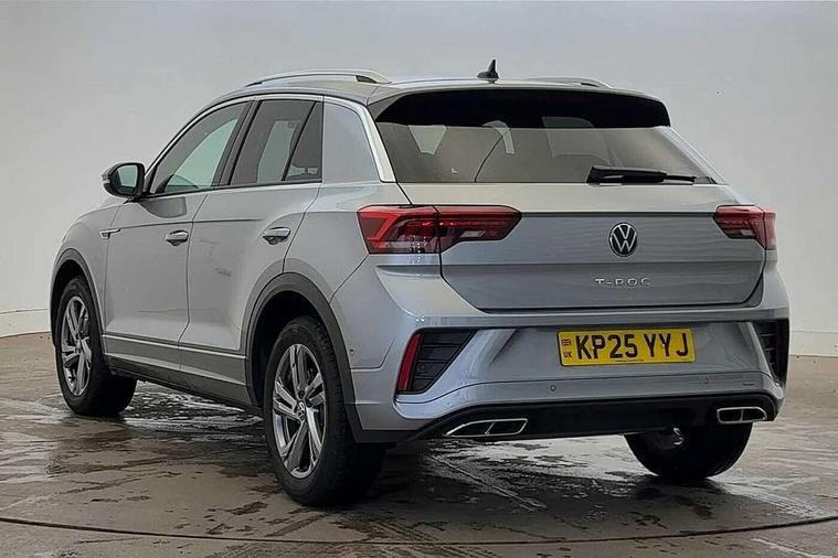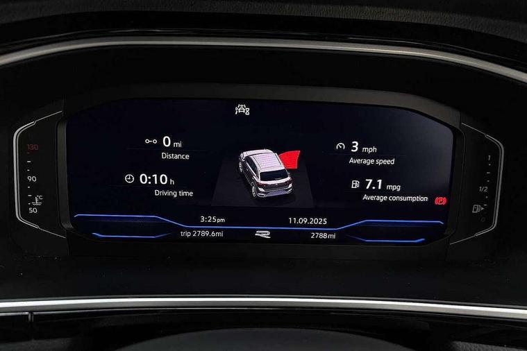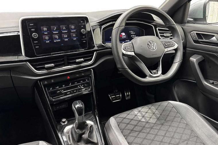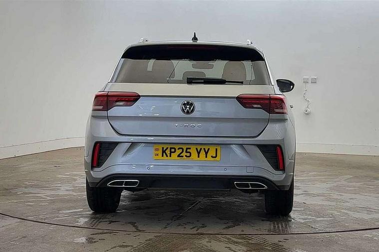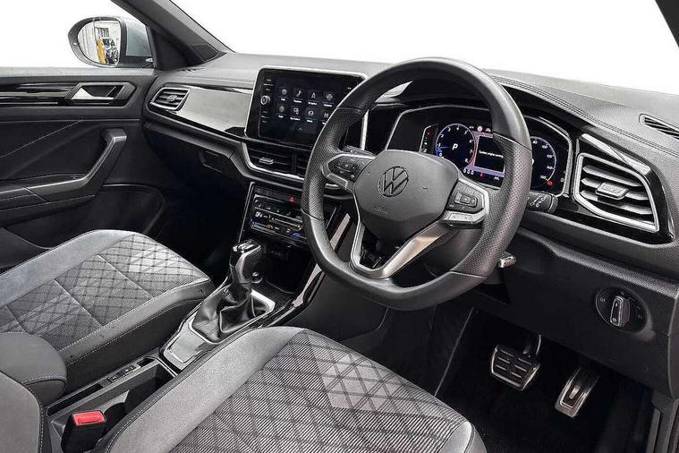 10.25" Digital cockpit pro, Advanced driver attention and drowsiness monitor, Emergency call service, Lane keeping system Lane Assist, Mobile phone interface, Modified key software - reduce switch off time for key status change to Long no motion, Online services, Park assist including front and rear parking sensors, Service interval indicator, Tailgate/trunk lid release from outside, Think blue trainer driver tips and journey analysis, Warning sound and light for front seatbelts unfastened, Wireless app connect, Battery regeneration during braking, Start/stop function with battery regeneration, DAB Digital radio, Diversity antenna for FM reception, Front and rear 6 speakers, Music playback - MP3, WMA and AAC files, Premium USB cable in choice of either Apple or Android smartphone compatibility, SD card slot, Simultaneous pairing of 2 compatible mobile devices, Title and cover art display, We Connect and We Connect Plus functionality, Auto dimming interior rear view mirror, Automatic hazard lights activation under emergency braking, Automatic headlight control with LED separate daytime running lights with coming/leaving home function, Body coloured exterior mirror housings and door handles, Electrically adjustable and heated door mirrors, Extended roof spoiler, Exterior mirrors aspherical on driver side, convex on front passenger side, External USB type C socket and charging sockets, Front windscreen wiper with intermittent wipe and 4 position delay, Heated rear window, LED 3rd brake light, LED rear combination lamps, LED rear number plate lights, Power windows with comfort operation and circuit breaker, Privacy glass for rear side windows and rear window, R-Line design body coloured bumpers, Rain sensor, Rear exhaust tailpipe, Rear fog light on one side and reversing lights on both sides, Rear side wing doors, Rear wash/wipe with intermittent wipe setting, Remote electrically foldable door mirrors, puddle lights and reverse activated passenger's door mirror, 12V power socket in centre console, 3 rear head restraints, 3 seat bench in 2nd row, 4 load lashing points in luggage compartment, Air care climatronic air conditoning system with active combination filter and 2-zone temperature control, Black roof lining, Chrome plated decorative trims, Chrome plated radiator grille inserts, air vent surrounds and light switch surrounds, Door and side trim panel with leatherette insert, Front + rear carpet mats, Front centre armrest, Front cupholders x 2, Front footwell illumination, Front reading light, Front scuff plates with R Line logo, Front seat back storage pockets, Glove compartment door with light, Instrument lighting, white adjustable panel illumination, Interior ambient lighting and surround lighting, Interior light delay, Isofix child seat preparation, Leather gearshift handle, Load-through provision with cup holder when folded down ('Unsplit rear seat bench, split folding backrest, with centre armrest), Luggage compartment lighting, Single front passenger seat, Stainless steel pedals, Storage compartment in left and right luggage area, Storage compartment in rear doors, Storage compartments in driver and front passenger doors, Sunvisors with illuminated vanity mirrors, Variable boot floor, height adjustable and removable, Driver assistance pack without proactive passenger protection - T-Roc, 3 point height adj front seatbelts + pretensioners, 3 point seatbelts in outer rear with ECE label, ABS, Child locks on rear doors, City emergency braking and pedestrian monitoring, Driver and front passenger airbag with front passenger airbag deactivation, Driver and front passenger safety-optimised head restraints, Drivers seatbelt reminder, Electronic parking brake, Electronic Stability Control (ESC) inc EDL (Electronic Differential Lock) and ASR (Traction Control), Front and rear passengers curtain airbag system including front side airbags, Hill start assist, Predictive pedestrian protection, Rear disc brakes, Two tone horn, Tyre pressure loss indicator, Volkswagen roadside assistance, Piano black decorative inserts in dashboard and front door trim panels, Trims for alloy wheels,