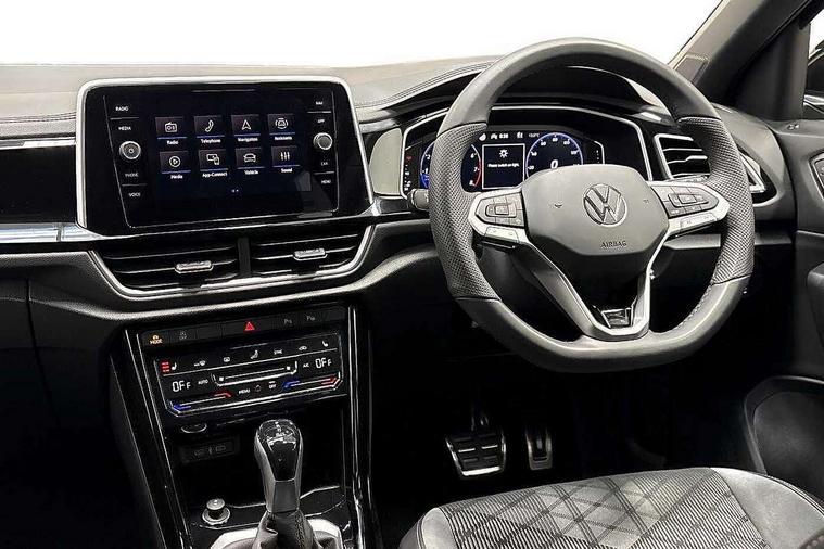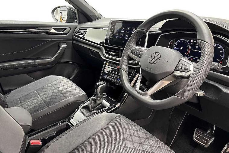 10.25" Digital cockpit pro, Advanced driver attention and drowsiness monitor, Emergency call service, Lane keeping system Lane Assist, Mobile phone interface, Modified key software - reduce switch off time for key status change to Long no motion, Online services, Park assist including front and rear parking sensors, Service interval indicator, Tailgate/trunk lid release from outside, Think blue trainer driver tips and journey analysis, Warning sound and light for front seatbelts unfastened, Wireless app connect, Battery regeneration during braking, Start/stop function with battery regeneration, DAB Digital radio, Diversity antenna for FM reception, Front and rear 6 speakers, Music playback - MP3, WMA and AAC files, Premium USB cable in choice of either Apple or Android smartphone compatibility, SD card slot, Simultaneous pairing of 2 compatible mobile devices, Title and cover art display, We Connect and We Connect Plus functionality, Auto dimming interior rear view mirror, Automatic hazard lights activation under emergency braking, Automatic headlight control with LED separate daytime running lights with coming/leaving home function, Body coloured exterior mirror housings and door handles, Electrically adjustable and heated door mirrors, Extended roof spoiler, Exterior mirrors aspherical on driver side, convex on front passenger side, External USB type C socket and charging sockets, Front windscreen wiper with intermittent wipe and 4 position delay, Heated rear window, LED 3rd brake light, LED rear combination lamps, LED rear number plate lights, Power windows with comfort operation and circuit breaker, Privacy glass for rear side windows and rear window, R-Line design body coloured bumpers, Rain sensor, Rear exhaust tailpipe, Rear fog light on one side and reversing lights on both sides, Rear side wing doors, Rear wash/wipe with intermittent wipe setting, Remote electrically foldable door mirrors, puddle lights and reverse activated passenger's door mirror, 12V power socket in centre console, 3 rear head restraints, 3 seat bench in 2nd row, 4 load lashing points in luggage compartment, Air care climatronic air conditoning system with active combination filter and 2-zone temperature control, Black roof lining, Chrome plated decorative trims, Chrome plated radiator grille inserts, air vent surrounds and light switch surrounds, Door and side trim panel with leatherette insert, Front + rear carpet mats, Front centre armrest, Front cupholders x 2, Front footwell illumination, Front reading light, Front scuff plates with R Line logo, Front seat back storage pockets, Glove compartment door with light, Instrument lighting, white adjustable panel illumination, Interior ambient lighting and surround lighting, Interior light delay, Isofix child seat preparation, Leather gearshift handle, Load-through provision with cup holder when folded down ('Unsplit rear seat bench, split folding backrest, with centre armrest), Luggage compartment lighting, Single front passenger seat, Stainless steel pedals, Storage compartment in left and right luggage area, Storage compartment in rear doors, Storage compartments in driver and front passenger doors, Sunvisors with illuminated vanity mirrors, Variable boot floor, height adjustable and removable, Driver assistance pack without proactive passenger protection - T-Roc, 3 point height adj front seatbelts + pretensioners, 3 point seatbelts in outer rear with ECE label, ABS, Child locks on rear doors, City emergency braking and pedestrian monitoring, Driver and front passenger airbag with front passenger airbag deactivation, Driver and front passenger safety-optimised head restraints, Drivers seatbelt reminder, Electronic parking brake, Electronic Stability Control (ESC) inc EDL (Electronic Differential Lock) and ASR (Traction Control), Front and rear passengers curtain airbag system including front side airbags, Hill start assist, Predictive pedestrian protection, Rear disc brakes, Two tone horn, Tyre pressure loss indicator, Volkswagen roadside assistance, Piano black decorative inserts in dashboard and front door trim panels, Trims for alloy wheels,