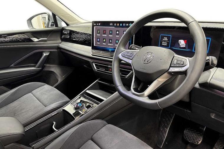 Adaptive cruise control (ACC), Advanced driver attention and drowsiness monitor, Bluetooth mobile phone interface, Car2X technology, Comfort drive travel assist, lane keeping system, lane assist and emergency assist, Digital Cockpit Pro - 10.25" high resolution dash display screen with customisable menus and information, Dynamic road sign display, E-Sim card for online connectivity, eCall emergency call service, Front Assist - Autonomous emergency braking with pedestrian and cyclist monitoring, Lane change system, Side assist, Rear traffic alert and Exit warning system, Multifunction front facing camera, Oncoming vehicle braking when turning including swerve support, Park assist pro with park distance control (Remote park assist), Power assisted steering with speed sensitive, Start/stop system with regenerative braking, Warning signal and warning light for front and rear seatbelts not fastened, Wireless App-Connect, Adaptive chassis control DCC pro includes driving mode selection, Charging cable Mode 3 Type 2 / 3 (16A), Front shock absorption, Front wheel drive, Rear shock absorption, Digital radio reception (DAB), Diversity antenna for FM reception, Air intake with Chrome trim, Ambient lighting with logo projection, Auto dimming interior rear view mirror, Automatic headlight control system, Body colored bumpers in R-Line style, Body coloured door handles, Body-coloured exterior mirror housings, Chrome moldings on the side windows, Coming/leaving home lighting function, Heat insulating glass in side and rear windows, Heated rear window, Heated windscreen washer jets, High level 3rd brake light, Illuminated door handle recesses, Illuminated lightline between headlamps, Laminated safety glass from B-pillar backwards 90% tinted, Laminated safety glass windshield, LED Day time running light, Rain sensor windscreen wipers, Rear fog light on one side, reversing light on both sides, Rear side wing doors, Rear wiper, Silver roof rails, 12V outlet in center console rear and in luggage compartment, 12V socket in centre console, 3 bench rear seats in 2nd row, Air care climatronic 3 zone air conditioning system with rear air conditioning control panel, Carpet mats, front and rear, Centre console with illuminated storage compartment with sliding cover and two drinks holders, Ceramique headlining, Chrome elements on the mirror switch and power window switches and door pulls, Door and side trim panel with leatherette insert, Door sill protectors, Front centre armrest, Interior ambient lighting with 30 colour options, ISOFIX anchors for child seats on outer rear seats and front passenger seat compatible with i-Size, Mechanical rear seat release, Power adjustable lumbar support in front, Rear bench seat, split folding, longitudinally movable and folding with load-through hatch and centre armrest, Safety optimised front head restraints, Single front passenger seat, Sports comfort seats in front, Sun visors with illuminated vanity mirrors, Three rear head restraints, Variable luggage compartment floor, Comfort package with park assist plus and Safelock - Tiguan, Driver assistance package - Tiguan, 3 point seat belt for centre rear seats, 3 Point seat belts in front with pretensioners, 3 point seatbelts in outer rear with ECE label, Driver and front passenger airbag with front passenger airbag deactivation, Electronic parking brake with auto hold, Front and rear curtain airbags, Front and rear side airbags, Front centre airbag, Front disc brakes, Hill start assist, Manual child proof rear door locks, Rear disc brakes, Two tone horn, Warning triangle, Decorative inserts Cross in dash and front door panels, Interior door handle in matte chrome, Soul instrument panel, Tyre mobility kit including compressor and sealing foam,