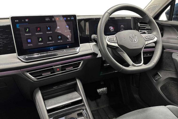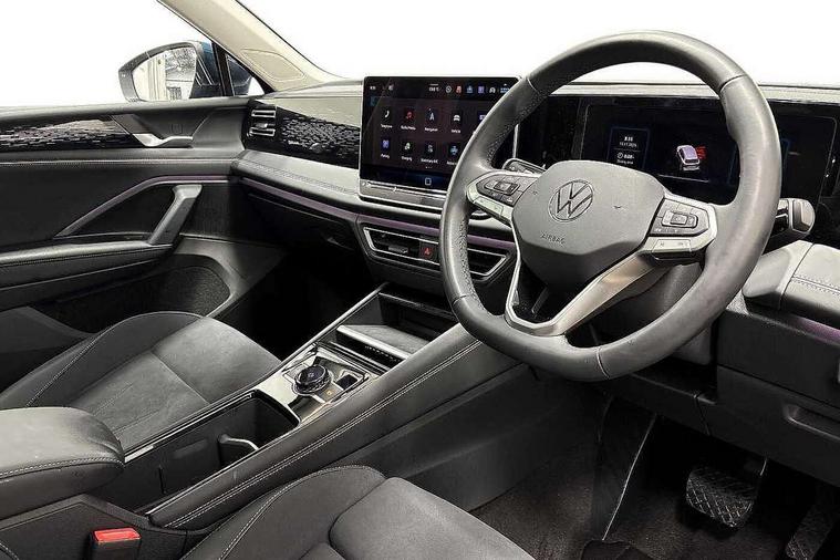 Adaptive cruise control (ACC), Advanced driver attention and drowsiness monitor, Bluetooth mobile phone interface, Car2X technology, Comfort drive travel assist, lane keeping system, lane assist and emergency assist, Digital Cockpit Pro - 10.25" high resolution dash display screen with customisable menus and information, Dynamic road sign display, E-Sim card for online connectivity, eCall emergency call service, Front Assist - Autonomous emergency braking with pedestrian and cyclist monitoring, Lane change system, Side assist, Rear traffic alert and Exit warning system, Multifunction front facing camera, Oncoming vehicle braking when turning including swerve support, Park assist pro with park distance control (Remote park assist), Power assisted steering with speed sensitive, Start/stop system with regenerative braking, Warning signal and warning light for front and rear seatbelts not fastened, Wireless App-Connect, Adaptive chassis control DCC pro includes driving mode selection, Charging cable Mode 3 Type 2 / 3 (16A), Front shock absorption, Front wheel drive, Rear shock absorption, Digital radio reception (DAB), Diversity antenna for FM reception, Air intake with Chrome trim, Ambient lighting with logo projection, Auto dimming interior rear view mirror, Automatic headlight control system, Body colored bumpers in R-Line style, Body coloured door handles, Body-coloured exterior mirror housings, Chrome moldings on the side windows, Coming/leaving home lighting function, Heat insulating glass in side and rear windows, Heated rear window, Heated windscreen washer jets, High level 3rd brake light, Illuminated door handle recesses, Illuminated lightline between headlamps, Laminated safety glass from B-pillar backwards 90% tinted, Laminated safety glass windshield, Rain sensor windscreen wipers, Rear fog light on one side, reversing light on both sides, Rear side wing doors, Rear wiper, Silver roof rails, 12V outlet in center console rear and in luggage compartment, 12V socket in centre console, 3 bench rear seats in 2nd row, Air care climatronic 3 zone air conditioning system with rear air conditioning control panel, Carpet mats, front and rear, Centre console with illuminated storage compartment with sliding cover and two drinks holders, Ceramique headlining, Chrome elements on the mirror switch and power window switches and door pulls, Door and side trim panel with leatherette insert, Door sill protectors, Front centre armrest, Interior ambient lighting with 30 colour options, ISOFIX anchors for child seats on outer rear seats and front passenger seat compatible with i-Size, Mechanical rear seat release, Power adjustable lumbar support in front, Rear bench seat, split folding, longitudinally movable and folding with load-through hatch and centre armrest, Safety optimised front head restraints, Single front passenger seat, Sports comfort seats in front, Sun visors with illuminated vanity mirrors, Three rear head restraints, Variable luggage compartment floor, Comfort package incl. Memory feature for Park assist and Safelock - Tiguan, Driver assistance package - Tiguan, 3 point seat belt for centre rear seats, 3 Point seat belts in front with pretensioners, 3 point seatbelts in outer rear with ECE label, Driver and front passenger airbag with front passenger airbag deactivation, Electronic parking brake with auto hold, Front and rear curtain airbags, Front and rear side airbags, Front centre airbag, Front disc brakes, Hill start assist, Manual child proof rear door locks, Rear disc brakes, Two tone horn, Warning triangle, Anti theft wheel bolts, Decorative inserts Cross in dash and front door panels, Interior door handle in matte chrome, Soul instrument panel, Tool kit for tyre mobility set, Tyre mobility kit including compressor and sealing foam,