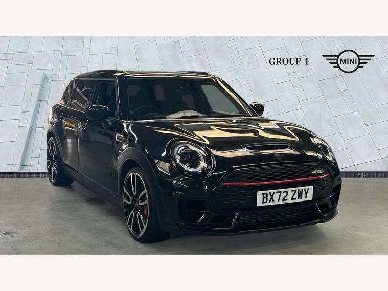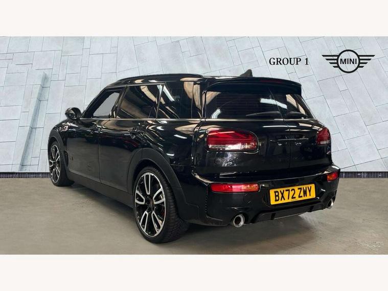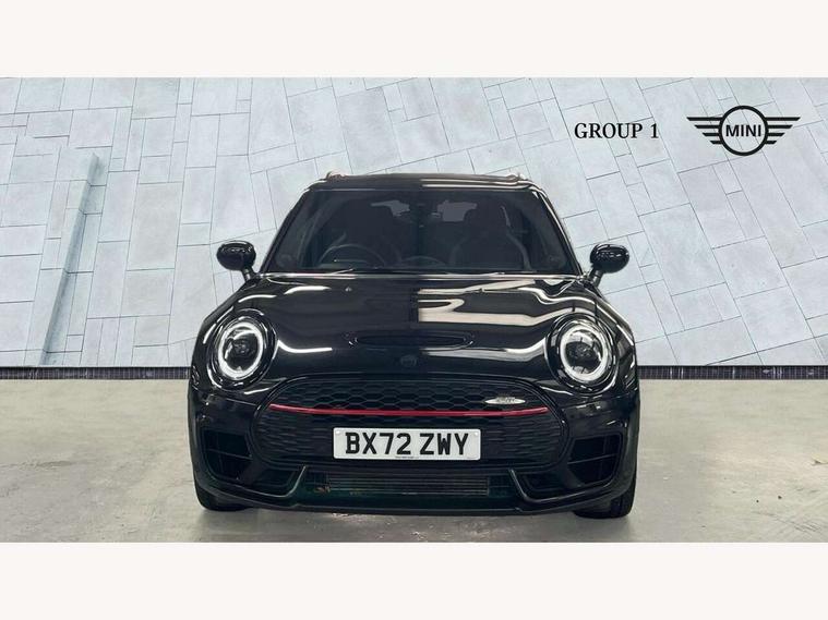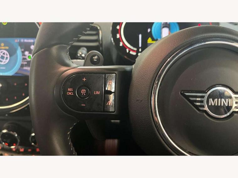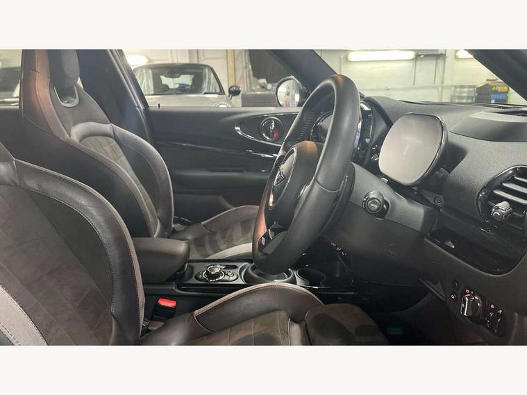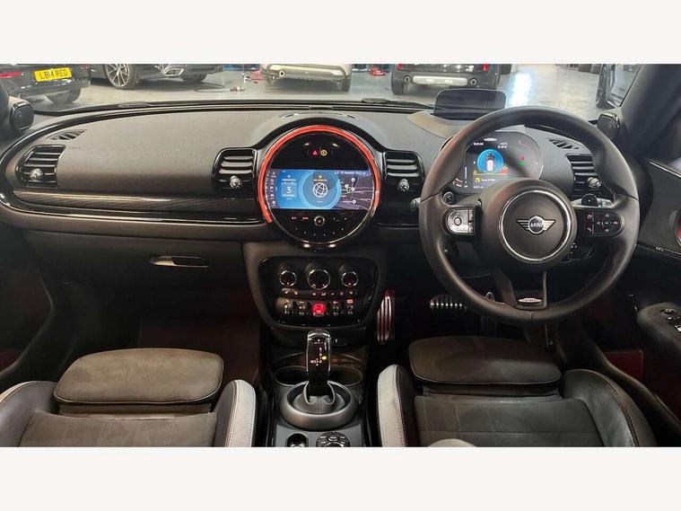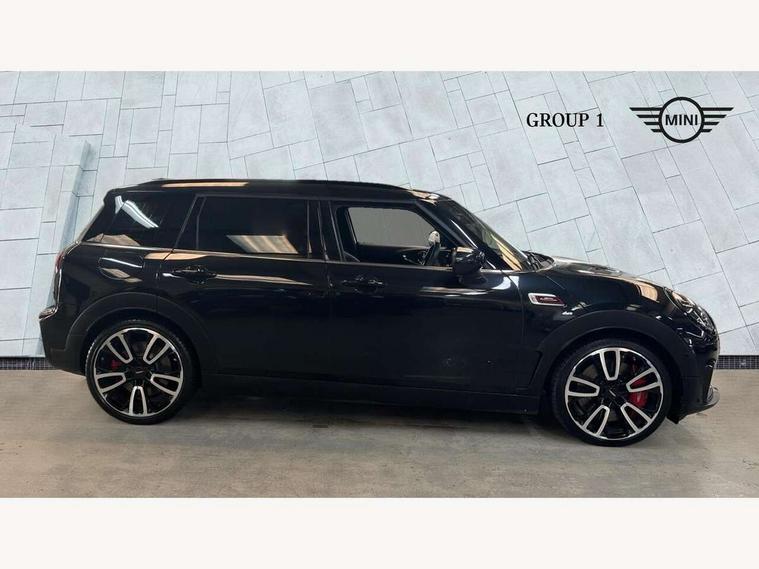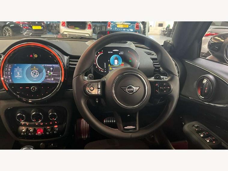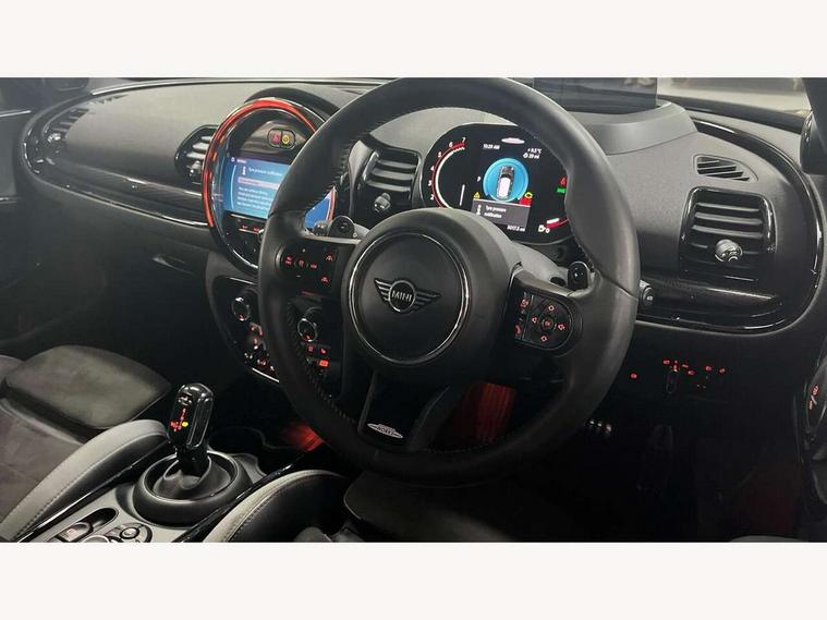 Active Guard incl speed limiting and lane departure functions with auto steering, and front collision warning with brake intervention, Automatic start/stop function with brake energy recuperation, Car sharing preparation, Compatible mobile phone bluetooth with audio streaming, Electro-mechanical speed dependant steering assistance, Instrument cluster, Mini E-call, MINI TeleServices, On board computer, 8 Speed steptronic sport transmission including electronic gear shifter and steering wheel paddles, All Wheel Drive (AWD), Double Vanos system, Fully variable valve control, High precision injection, Performance Control, FM tuner and DAB digital radio, Bonnet scoop, Chrome fuel filler cap, Dynamic brake lights, Electric windows, Heated rear window, Heated windscreen washer jets, John Cooper Works - aerodynamic kit (front and rear apron, spoiler), front and rear sport bumpers and part-painted side sills with door sill finishers, John Cooper Works entry sills, John Cooper Works rear spoiler, LED rear light with union jack design, Metal door sill strips with Cooper S imprint, Model logo on rear doors, Piano black exterior, Radiator grille piano black border with honeycomb structure in matt black with John Cooper Works logo above an individual grille struct in chilli red, Rain sensor with auto headlights, Rear fog lights, Rear side wing doors, Rear window wiper, Rear wing door, Side scuttle with MINI John Cooper Works logo in high gloss black with red border, Split rear doors, Sun/heat protection glass, Third brake light, Twin exhaust tailpipe, Variable front intermittent wipers, White indicator lenses, 12V Accessory socket in centre console, 3 seat bench in 2nd row, 360L luggage compartment capacity, 4 lashing eyes in luggage compartment, 60/40 split folding rear seat, Anthracite headlining with grab handles and clothes hooks, Chrome interior highlights, Cupholders, English handbook, Floor mats, Glove compartment, Height and length steering column adjustment, Interior lighting with 12 basic colours selectable via toggle switch in roof, Isofix rear child seat preparation, John Cooper Works leather gearshift lever and handbrake gaiter, John Cooper Works sports seat with integrated headrest, adjustable thigh support and John Cooper Works logo, LED reading lights, vanity mirror lights, front foot well light and spotlight on front seats, Multifunction steering wheel, Nappa leather steering wheel with JCW badge, Paddle shifts, Rubberised stainless steel pedals, Single front passenger seat, Storage compartments in doors, Sunvisors with vanity mirrors, Toolkit, Comfort plus pack with Park assist - Mini Clubman, Excitement pack - Clubman, Extended interior lighting pack - Mini Clubman, Navigation pack - Clubman, 17" front sport brake with 4 piston fixed calliper, 2 tone horn, 3 point seatbelts on all seats, 6 Airbags - front, side, head and seat belt tensioners, Anti-lock braking system (ABS), Child locks on rear doors, DSC - Dynamic Stability Control, Electronic handbrake, Front and rear disc brakes, Red brake callipers with John Cooper Works logo, Torsen mechanical limited slip differential, Tyre pressure monitoring system, Alarm system with tilt sensor, monitoring doors, bonnet interior and tailgate, Auto drive away locking, Comfort access system, Deadlocking function, Electronic vehicle immobiliser, Locking wheel bolts, Remote central locking, Start/stop toggle with keyless go,