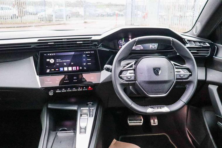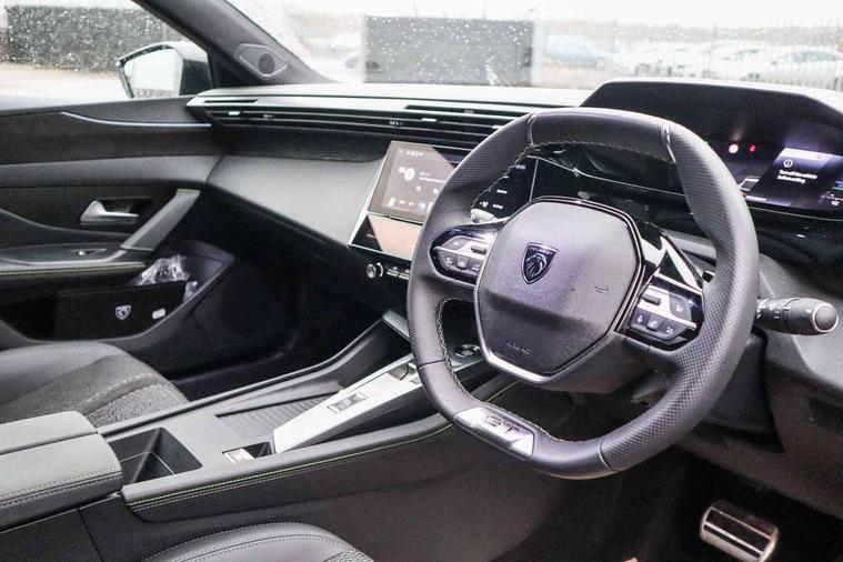 Bluetooth telephone facility, Compact automatic gearbox impulse selector, Driver attention warning, Driver's profile setting, Emergency call service, Extended traffic sign recognition, Exterior temperature indicator with ice warning, Front and rear parking sensors, Intelligent speed adaptation, Lane keep assist, Multi driving mode selector - Eco / Normal / Sport mode selector, Multi function trip computer, PEUGEOT i-Cockpit with 10.0" high definition (HD) capacitive touchscreen, PEUGEOT i-Cockpit with compact steering wheel, PEUGEOT i-Connect Advanced - Over the air updates, PEUGEOT SOS and assistance, Push button start, Speed limit recognition and recommendation, Wifi and voice recognition, Wireless apple car play/android Auto, 2x USB sockets in front, 2x USB sockets in rear, DAB Digital radio, PEUGEOT i-Cockpit with PEUGEOT configurable i-Toggles, 3rd brake light, 408 Model designation badges on front and rear, Acoustic laminated front windows, Acoustic tinted windscreen, Automatic hazard light activation upon heavy brake application, Body colour door handles, Body colour rear spoiler, Dark tinted rear side and tailgate windows, Electric, heated, and power folding door mirrors, Electrochrome rear view mirror, Front and rear electric windows with one touch/anti pinch, Front grille with vertical body colour stamping, Full LED matrix headlights with automatic adjustment, Gloss black finish B pillar, Gloss black rear cluster connecting strip, High beam assist, LED rear number plate lights, LED side indicator lights integrated into door mirrors, Lower body and wheel arch "SUV style" protection, Nera black door mirrors, PEUGEOT shield on front doors, PEUGEOT signature LED front daytime running lights incorporating indicators, Rear bumper grained black, Rear full LED 3D Peugeot new claw effect lights with sequential welcome sequence upon unlocking the vehicle, Rear Hybrid badging, Rear reversing lights, Rear side wing doors, Roof mounted 'fin' style antenna, Smart electric tailgate, Tailgate with heated rear windscreen and wiper blade, 1/3 2/3 'Magic Flat' folding rear seats with controls located in the boot, 2x 12V sockets, 3 seat bench in 2nd row, 4 Grab handles retractable and damped, 8 Colour personalisable ambient lighting, Aluminium door sills and boot sill, Aluminium pedals and footrest, Arch design central console with storage, Central front armrest with storage compartment, Dual Zone automatic air conditioning with AQS 3, Dynamic front seats, Electric power steering with reach and rake adjustable steering column, Front central console with two cup holders, Gloss black waistbelt (window weather strips), Glovebox with LED lighting, Heated steering wheel, High air vent system, Luggage cover, Luxury carpet mats with adamite green stitching, Multifunction full grain leather steering wheel with admite green stitching & GT badging, Piano keys toggle switches to access main functions, Roof lining - Mistral black, Seatbelt unfastened on the move audible and visual alert for front and rear seats, Single front passenger seat, Ski hatch with central rear armrest with cup holder, Steering wheel mounted gearshift paddles, Sunvisor with concealable vanity mirrors with LED lighting, Driver Sport Pack - 408, Visibility pack - 408, 2x Isofix child seat fitting on outer rear seats, 3x3 point rear seat belts, ABS + EBD + EBA, Active safety brake with night function/cyclists/pedestrians, Adaptive driver and front passenger airbags with passenger airbag deactivation function, Advanced emergency braking system (Video - AEB) includes Radar, Automatic post collision braking, Child locks on rear doors, Driver/front passenger side airbags, Electronic parking brake, ESP, Front and outer rear seatbelts with pyrotechnic pretensioners, Front and rear curtain airbags, Front and rear disc brakes, Front optimised safety headrests and rear retractable headrests (x3), height adjustable, Front three point retractable seatbelts with force limiters, Hill start assist, Tyre under inflation monitoring and indirect detection with visual indicator and warning sound, 2x keys, Acoustic vehicle alert system (AVAS), Anti-theft wheel bolts, Automatic door locking when moving off, Deadlocking system, Electronic code immobiliser, Locking wheel nuts, Peugeot open and go system includes keyless entry with proximity locking and unlocking, Thatcham cat. 1 alarm with anti lift sensor, 19" Graphite diamond cut alloy wheels in Onyx black gloss, Alloy wheel 'star' centre cap,