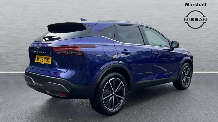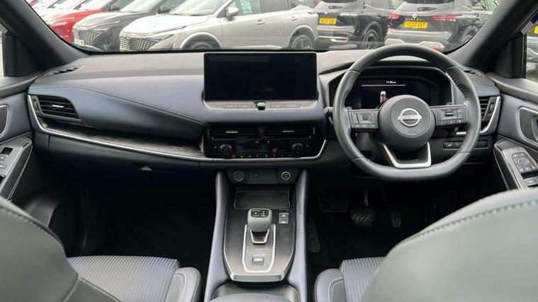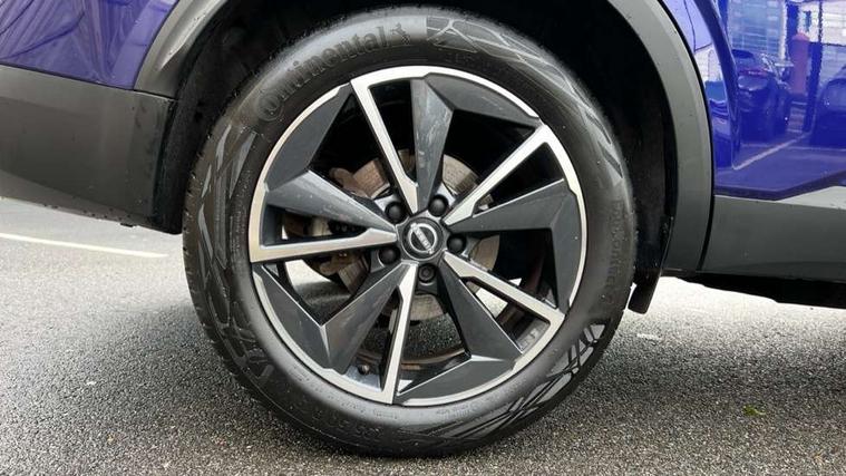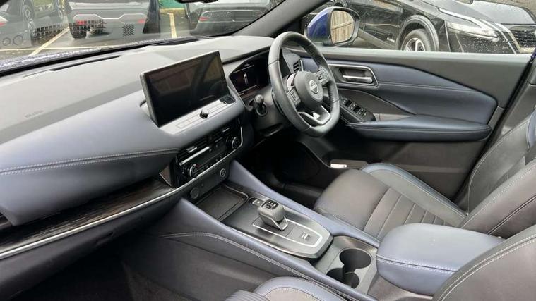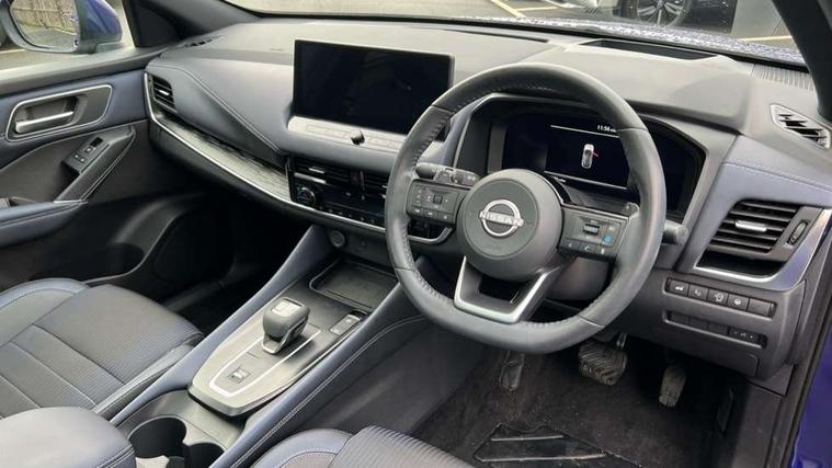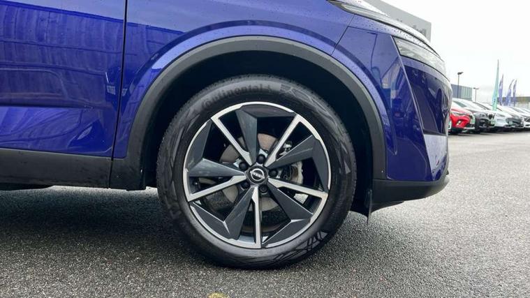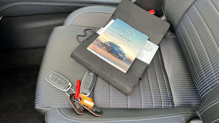 Advanced windscreen head up display, Android auto/Apple CarPlay (Wired), Blind spot warning, Drive modes (sport, normal, eco), Electric speed sensitive power steering, Emergency and breakdown call, Front and rear parking sensors, Full Digital 12.3" TFT Digital Combimeter, Google maps services - search, weather, 3D maps and Google street view, Hands free power tailgate, Idle stop/start system, Intelligent around view monitor, Intelligent Cruise control (ICC), Intelligent driver alert system, Intelligent forward collision warning, Intelligent lane intervention, Lane departure prevention, Lane departure warning system, Lane keep assist, Moving object detection, Nissan connect 12.3 inch touchscreen infotainment system, Nissan connect navigation, ProPilot, Push button starter, Rear cross traffic alert, Rear view camera, Remote control services - door locks, lights, horn and car locator, Telematics - notifications and connectivity services, TomTom live traffic services, Traffic jam pilot, Traffic sign recognition with legal speed adjustment, Trip computer, Virtual personal assistant and firmware over the air capability, Wireless apple carplay, Wireless charging pad, 6 speakers, AM/FM audio system with DAB, Bluetooth audio streaming, Front USB connections (Type-A and Type-C), Rear USB charging only ports (Type-A and Type-C), Auto dimming rear view mirror, Auto rear wiper when reversing, Automatic hazard signal with emergency stop signal, Body colour mirror caps, Body coloured door handles, Bodyside mouldings, Chrome side window finisher, Door handle with button, Electric auto folding door mirrors, Electrically adjustable and heated door mirrors with LED turn indicator, Follow me home headlights, Front and rear LED turning signals, Headlights auto levelling system, Intelligent auto headlights, LED daytime running lights, LED headlights with adaptive driving beam, LED rear lights, One touch front and rear electric windows with remote opening and closing, Partially body coloured bumpers, Privacy glass, Rear bumper with graphite insert, Rear reversing light (bulb lighting), Rear roof spoiler, Rear side wing doors, Rear styling plate, Shark fin antenna, Splash free rain sensing wipers, Super UV and infrared cut glass, Thermaclear heated windscreen, Three blink turn signal, 12v power socket in dashboard and luggage, 2x Rear coat hooks, 3 bench rear seats in 2nd row, 3 rear headrests, 4 folding assist grip, 6 Luggage hooks - 4 on floor, 2 on side, 60/40 split folding rear seat bench, Ambient lighting around centre console, Ambient lighting in front doors, Centre console storage tray, Chrome interior door handles, Cloth/syntech leather monoform upholstery, Dark black/blueish PVC wrapping, Dark headlining, Driver and front passenger sunvisors with illuminated vanity mirrors, Driver seat back pocket, Dual zone automatic climate control with pollen filter, Electrically adjustable driver seat, Electrically adjustable lumbar support for driver, Front and rear door storage, Front centre console and armrest, Front cupholders x 2, Front door with bottle holders, Glovebox with light, Hard trunk cover, Heated front seats, Heated steering wheel, Height adjustable driver's seat, Height adjustable front headrests, Height adjustable passenger seat, Leather steering wheel, Luggage board system, Luggage space lighting, Manual lumbar support on passenger seat, Manually adjustable passenger (slide recline + lifter), Multifunction steering wheel, Passenger seat back pocket, Rear armrest with 2 cupholders, Rear door bottle holders, Single front passenger seat, Soft PVC kneepad, Steering wheel gearshift paddles, Steering wheel switches, Tilt/telescopic adjustable steering wheel, Two rear isofix child seat anchorage points with top tether, Welcome light and doors with console tray ambient lighting, Glass roof pack with roof rails - Qashqai, 3x3 point rear seatbelt pretensioners + load limiters, ABS with EBD and brake assist, Active brake limited slip, Auto hold function, Child locks on rear doors, Curtain and front side, far side airbags, Driver and passenger airbags, Driver, passenger and 2nd row rear seat belt reminder, Electronic parking brake, Front seatbelt pretensioners + load limiters, Height adjustable front seatbelts, Hill start assist, Intelligent blind spot intervention, Intelligent front emergency braking with pedestrian, cyclist recognition and junction assist, Intelligent rear automatic braking, Tyre pressure monitoring system, Vehicle dynamic control, Capless fuel filler, Engine immobiliser, Intelligent Key, Remote central door locking with deadlocking, Thatcham Cat.1 alarm, Interior instrumental panel C finisher, 19" Alloy wheels, Tyre puncture repair kit,