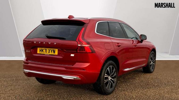 12.3" Active TFT crystal driver's instrument display, 9" centre console touch screen, Adjustable steering wheel force, Bluetooth handsfree system, Drive mode selector, Driver alert control with lane keeping aid, Emergency services call system, Front and rear park assist, Google Automotive Services, Oncoming Lane Mitigation, Service interval indicator, Speed limiter, Speed sensitive steering, Trip computer, Volvo on call with App, Wireless apple carplay, Wireless/Inductive Mobile Phone Charging, 7m 10amp Charge Cable with 3 Pin Plug and 7m 1-Phase 16amp Type 2 / Mode 3 Charge Cable, 8 speed automatic transmission with start/stop + manual change functions, Dynamic chassis, Electric rear axle drive, Recharging port located in nearside front wing, DAB Digital radio, Fresh air subwoofer, Adaptive brake lights with high level LED brake lights, Auto dimming interior + exterior mirrors, Automatic headlight levelling system, Automatic LED Headlights + Active high beam incorporating daytime running lights, Chrome deco lower front bumper, Chrome lower side moulding trim with Recharge logo, Chrome window surround, Colour co-ordinated door mirrors, Electric adjustable/heated/auto power folding door mirrors, Electric front+rear windows, High gloss black grille with chrome inserts, Home safe and approach lighting, Integrated roof rails in Chrome, Power glass tilt and slide panoramic sunroof with sun curtain, Puddle lights, Rain sensor with automatic windscreen wiper activation, Rear Bumper Chrome Insert, Rear side wing doors, Rear wiper, Roof antenna, Roof spoiler, Tinted windscreen, Visible VIN plate, 12V socket in front tunnel console and luggage compartment, 2 zone electronic climate control with Clean zone air quality system and pollen filter, 3 seat bench in 2nd row, A-pillar parking ticket holder, B Pillar ventilation, Bright metal luggage threshold, Centre armrest storage illumination, Centre console cupholders and storage, Floor mats, Front and rear door pocket and front cupholder illumination, Front footwell and side step illumination, Front reading lights, Front seat cushion extensions, Head restraints for all seats, Heated front seats, Height/reach adjustable steering column, High gloss black steering wheel remote infotainment controls, Illuminated glovebox, Illuminated luggage compartment, Illuminated vanity mirrors + ticket holder, Load cover, Load protection net, Multi directional lumbar support, Multicolour theatre lights, Orrefors Crystal gear lever knob, Rear armrest with cupholder, Rear footwell and side step illumination, Rear seat concealed storage, Recharge aluminium tread plates, Single front passenger seat, Tailgate illumination and ambient door lighting, Underfloor stowage compartment, Versatile split folding rear seat - 60/40, Seat pack - XC60 R-Design Pro/Inscription Pro, 5 three point seatbelts, City safety with steering support with Pedestrian + cyclist + large animal detection + front collision warning with full auto brake, Drivers knee airbag, Dual stage driver/passenger airbags, Electronic parking brake with auto hold, First aid kit, Hill descent control, Hill start assist, IC (Inflatable Curtains) - Full Length, Mechanical child locks on rear doors, Passenger airbag cut-off device, Road sign information display, Run off Road Mitigation, Run off Road Protection, Seatbelt reminder and pretensioners, SIPS (Side Impact Protection System), SIPS airbags, Slippery road and hazard light alert, Stability and Traction Control with Spin control, Engine Drag Control and Corner Traction Control, Tyre pressure monitoring system, Vehicle deceleration control with Anti-lock Brake System, Electronic Brake Distribution and Emergency Brake Assist, Warning triangle, WHIPS whiplash protection system - front, Anti-theft alarm including immobiliser/volume sensor + level sensor, Care key with user defined top speed, Key integrated remote control central locking + fuel flap with deadlocking system and auto open/close power windows, Keyless Drive (includes Keyless Entry and Keyless Start) with Handsfree Tailgate Opening/Closing, Locking wheel nuts, Private locking for tailgate, Tailored instrument panel with contrast stitching, Tyre sealant kit + 12v compressor,