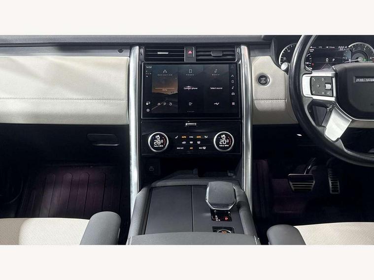 11.4" touchscreen, 3D surround camera, Adaptive cruise control, Android Auto, Apple car play, Blind spot assist, Driver condition monitor, Electric power assisted steering (EPAS), Emergency services call system, Front and rear parking aid, Lane keep assist, Power inner tailgate, Push button start, Rear collision monitor, Rear traffic monitor, Remote, Remote boot release, Service interval indicator, Speed proportional steering, Sportshift selector, Stop/start system, Traffic sign recognition with adaptive speed limiter, Trip computer, Wade Sensing, Adaptive dynamics, Dynamic stability control, Electronic air suspension, Front axle open differential, Digital Audio Broadcast radio-DAB, Dynamic volume control, Pivi pro connected, USB/aux input socket, Acoustic laminated windscreen, Animated directional indicators, Auto dimming interior rear view mirror, Automatic headlight levelling, Automatic headlights, Body colour bumpers, Body colour door handles, Centre high mounted stop light, D300 badge, Electric heated/power fold memory door mirrors with approach lights and auto dimming driver side, Electric windows with one touch open/close and anti-trap, Heated rear window, Heated windscreen, LED darkend tail lights, Metal treadplates with R-Dynamic branding, Narvik black Discovery script, Privacy glass, Puddle lights, Rain sensing windscreen wipers, Rear fog lights, Rear side wing doors, Rear wash/wipe, Trailer stability assist, Variable intermittent wiper, 12V power sockets, 12V USB charging socket in loadspace, 2 seat bench in 3rd row, 3 seat bench in 2nd row, Central hinged twin lidded storage, Ebony morzine headlining, First and second row door bins, Footwell lights, Front and rear 12V with front USB, Front passenger seat isofix location point, In-facia storage, Isofix child seat preparation for front passenger seat, Loadspace cover, Loadspace Hook, Loadspace light, Lockable glovebox, Lower centre console storage, Luggage tie downs in loadspace, Multi function steering wheel, Overhead lighting console, Premium carpet mats, Rear ISOFIX, Shopping bag hook, Single front passenger seat, Storage glovebox, Sunvisors with illuminated vanity mirrors, Third row storage, Twin front cupholders with cover, USB with 12V socket in centre console, Online pack with data plan - Discovery, R-Dynamic black exterior pack - Discovery, 3x3 point rear seatbelts, Anti-lock braking system (ABS), Brake pre-fill technology, Cornering brake control, Curtain airbags, Customer configurable autolock, Driver and passenger airbags, EBD - Electronic brakeforce distribution, Electronic traction control, Emergency brake assist, Emergency braking, ESP, Front side airbags, Gradient acceleration control, Hill descent control, Hill launch assist, Power operated child locks, Rear airbags, Roll stability control, Seat belt reminder, Torque vectoring brake, Tyre pressure monitoring system, Immobiliser, Intrusion sensor, Keyless entry, Locking wheel nuts, Remote central locking, All terrain tyres,
