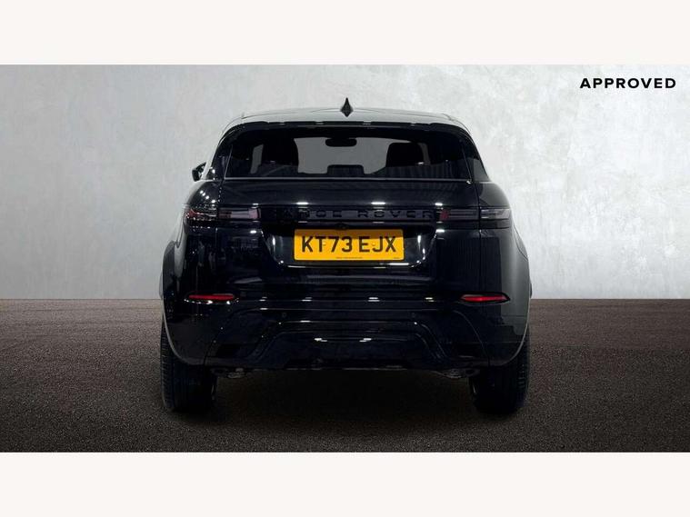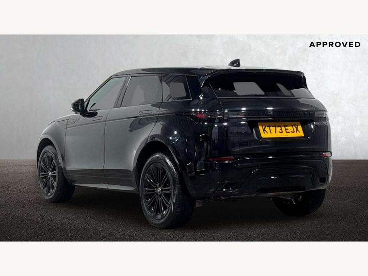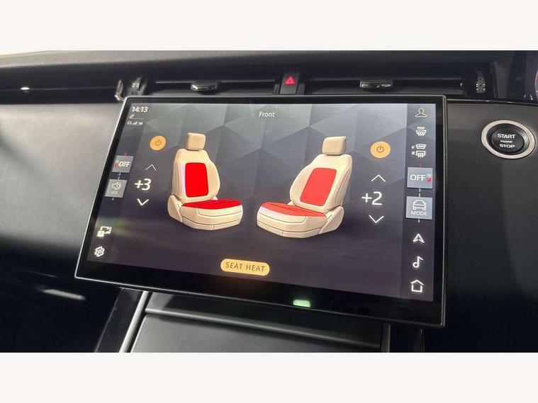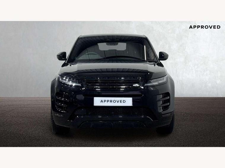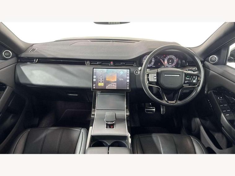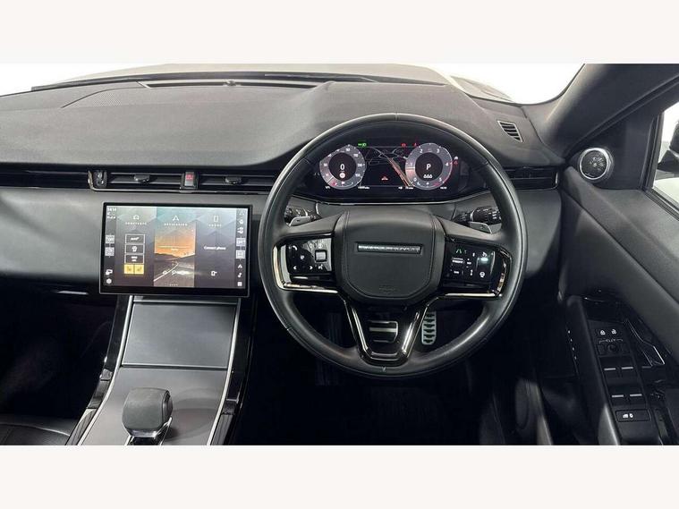 11.4" touch screen, Adaptive cruise control, Android Auto, Apple car play, Blind spot assist, Bluetooth connectivity, Brake pad wear indicator warning light, Driver condition monitor, eCall emergency system, Eco mode, Electronic power assisted steering (EPAS), Front and rear parking aid, InControl remote, Interactive driver display, Land Rover InControl apps, Lane keep assist, Pivi pro connected includes diamond pivi variant, smart settings, connected navigation pro, nuance speech licence, Powered tailgate/boot lid, Rear collision monitor, Rear traffic monitor, Traffic sign recognition with adaptive speed limiter, Voice control system, Wireless device charging, All terrain progress control, Diesel exhaust fluid (DEF) large tank, Efficient Driveline, Large fuel tank, Passive suspension, Terrain Response 2, Digital Audio Broadcast radio-DAB, Steering wheel mounted controls, Acoustic laminated windscreen, Auto headlights, Automatic headlight levelling, Electric windows with one touch open/close and anti trap, Flush deployable exterior door handles, Front and rear recovery eyes, Front fog lights, Heated rear window with timer, Heated washer jets, Heated windscreen, Pixel LED headlights with signature DRL and LED tail Lights, Power fold, auto-dimming, heated door mirrors with approach lights and auto dimming driver side, Rain sensing windscreen wipers, Rear animated directional indicators, Rear fog lights, Rear side wing doors, Rear wiper, Side repeater indicators in mirror, Tailgate spoiler, Third brake light, Winter wiper park position, 14 way driver memory electric front seats with 2 way manual headrests + 4 way lumbar support, bolsters, 40:20:40 split folding rear seats with centre headrest and armrest, Ambient interior lighting, Bright metal pedals, Carpet mats, Chrome tread plates with range rover branding Includes stainless steel loadspace scuff plate with etched graphic, Customer configurable single point entry, Electrically adjustable steering column with memory function and easy entry/exit, Front and rear cupholders, Heated steering wheel, Isofix system on outer rear seats, Overhead lighting console, Overhead stowage for sunglasses, Passive front head restraints, Rear air vents, Rear head restraints, Satin chrome gearshift paddles, Single passenger seat, Sunvisors with illuminated vanity mirrors, Twin sliding front centre armrest, Online pack with data plan - Evoque, Power socket pack 2 - Evoque, 3 rear 3 point seatbelts, Anti-lock braking system (ABS), Brake hold function, Customer configurable autolock, DSC - Dynamic Stability Control, Electronic brake force distribution, Electronic parking brake, Electronic traction control, Emergency braking, Front and rear seatbelt reminder, Hill descent control, Hill launch assist, Low traction launch, Occupant protection assist, Passenger seat occupant detector, Power operated child locks, Roll stability control, Six airbags - Driver and passenger airbags/driver knee airbag/front side airbag and curtain airbags, Torque vectoring brake, Tyre pressure monitoring system, Alarm, Immobiliser, Intrusion sensor, Keyless entry, Locking wheel nuts,