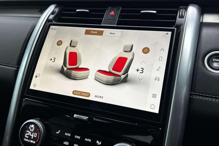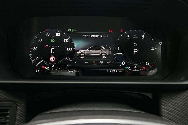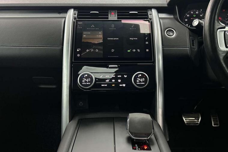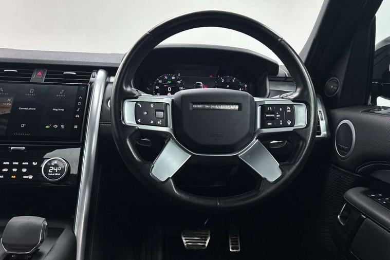 11.4" touchscreen, 3D surround camera, Adaptive cruise control, Android Auto, Apple car play, Blind spot assist, Driver condition monitor, Electric power assisted steering (EPAS), Emergency services call system, Front and rear parking aid, Lane keep assist, Power inner tailgate, Push button start, Rear collision monitor, Rear traffic monitor, Remote, Remote boot release, Service interval indicator, Speed proportional steering, Sportshift selector, Stop/start system, Traffic sign recognition with adaptive speed limiter, Trip computer, Wade Sensing, Adaptive dynamics, Dynamic stability control, Electronic air suspension, Front axle open differential, Digital Audio Broadcast radio-DAB, Dynamic volume control, Pivi pro connected, USB/aux input socket, Acoustic laminated windscreen, Animated directional indicators, Auto dimming interior rear view mirror, Automatic headlight levelling, Automatic headlights, Body colour bumpers, Body colour door handles, Centre high mounted stop light, D300 badge, Electric heated/power fold memory door mirrors with approach lights and auto dimming driver side, Electric windows with one touch open/close and anti-trap, Heated rear window, Heated windscreen, LED darkend tail lights, Metal treadplates with R-Dynamic branding, Narvik black Discovery script, Privacy glass, Puddle lights, Rain sensing windscreen wipers, Rear fog lights, Rear side wing doors, Rear wash/wipe, Trailer stability assist, Variable intermittent wiper, 12V power sockets, 12V USB charging socket in loadspace, 2 seat bench in 3rd row, 3 seat bench in 2nd row, Central hinged twin lidded storage, Ebony morzine headlining, First and second row door bins, Footwell lights, Front and rear 12V with front USB, Front passenger seat isofix location point, In-facia storage, Isofix child seat preparation for front passenger seat, Loadspace cover, Loadspace Hook, Loadspace light, Lockable glovebox, Lower centre console storage, Luggage tie downs in loadspace, Multi function steering wheel, Overhead lighting console, Premium carpet mats, Rear ISOFIX, Shopping bag hook, Single front passenger seat, Storage glovebox, Sunvisors with illuminated vanity mirrors, Third row storage, Twin front cupholders with cover, USB with 12V socket in centre console, Online pack with data plan - Discovery, R-Dynamic black exterior pack - Discovery, 3x3 point rear seatbelts, Anti-lock braking system (ABS), Brake pre-fill technology, Cornering brake control, Curtain airbags, Customer configurable autolock, Driver and passenger airbags, EBD - Electronic brakeforce distribution, Electronic traction control, Emergency brake assist, Emergency braking, ESP, Front side airbags, Gradient acceleration control, Hill descent control, Hill launch assist, Power operated child locks, Rear airbags, Roll stability control, Seat belt reminder, Torque vectoring brake, Tyre pressure monitoring system, Immobiliser, Intrusion sensor, Keyless entry, Locking wheel nuts, Remote central locking, All terrain tyres,