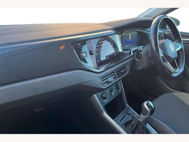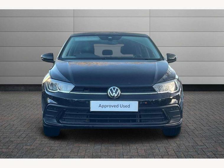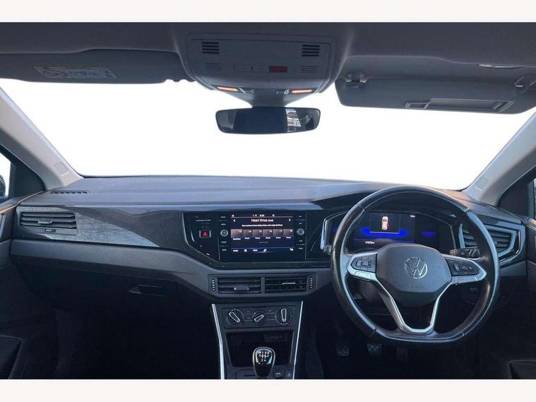 Adaptive cruise control without follow-to-stop and speed limiter, Bluetooth mobile phone interface, Driver alert system, Emergency call service, Front assist system, Power assisted speed sensitive steering, Preparation for We connect and We connect plus, Speedo and rev counter, electronic odometer, trip, service interval display and fuel gauge, Standard rear axle, Travel Assist - Lane keeping system and traffic jam assist, Travel assist including emergency assist, Trip computer, Warning signal and warning light for front and rear seatbelts not fastened, Washer fluid level indicator, Wireless app connect, Front wheel drive, Rear shock absorpion, Start-stop system with battery regeneration (recuperation - energy recovery during braking), DAB Digital radio, Diversity antenna for FM reception, Automatic dimming interior rear view mirror, Body colour bumpers, Body colour door handles, Body colour door mirrors, Electric front windows, Heat insulating darkened glass in side and rear windows, Heat insulating glass windscreen, Power folding adjustable/heated exterior mirrors and front passenger exterior mirror lowering function, Rain sensor, Rear electric windows, Rear fog light, Rear side wing doors, Rear windscreen washer and wiper with interval delay, Third brake light, 12V power socket in centre console, 2 front and 2 rear reading lights, 2 USB-C ports in the front, 2 USB-C charging sockets on the center console in the rear, 3 rear head restraints, 60/40 split folding rear seat and rear seat bench not split, Ceramique headliner, Chrome plated radiator grille inserts, air vent surrounds and light switch surrounds, Door and side trim panel, Driver and front passenger seat height adjustment, Driver/passenger sunvisors with illuminated vanity mirrors, Front centre armrest, Front seat backrest storage pockets, Front standard seats, Handbrake lever handle in leather, Hartley/Thomas cloth upholstery, Isofix child seat preparation easy-fit (for two outer rear seats, and front passenger seat) compatible with I-size, Leather trimmed gear knob, Luggage compartment cover, Luggage compartment floor, Luggage compartment lighting, Multifunction steering wheel, Single front passenger seat, Standard pedal cluster, Light and vision pack - Polo, 3 point height adj front seatbelts + pretensioners, 3x3 point rear seatbelts, ABS, Driver and front passenger airbag with front passenger airbag deactivation, Drivers and front passengers safety optimised head restraints, ESC (Electronic stability control) + EDL (Electronic Differntial lock) and ASR (Traction control), Extended and predictive pedestrian/ cyclist protection, Front curtain and side airbags with center airbag, Front disc brakes, Hill hold control, Manual child lock in rear doors, Rear drum brakes, Single tone horn, Tyre pressure loss indicator, Alarm with interior protection, Anti-theft alarm system with interior monitoring, backup horn, and towing protection, Anti-theft wheel bolts, Electronic engine immobiliser, Lava stone black gloss/matt decorative inserts in dash and front door panels, Low rolling resistance tyres,
