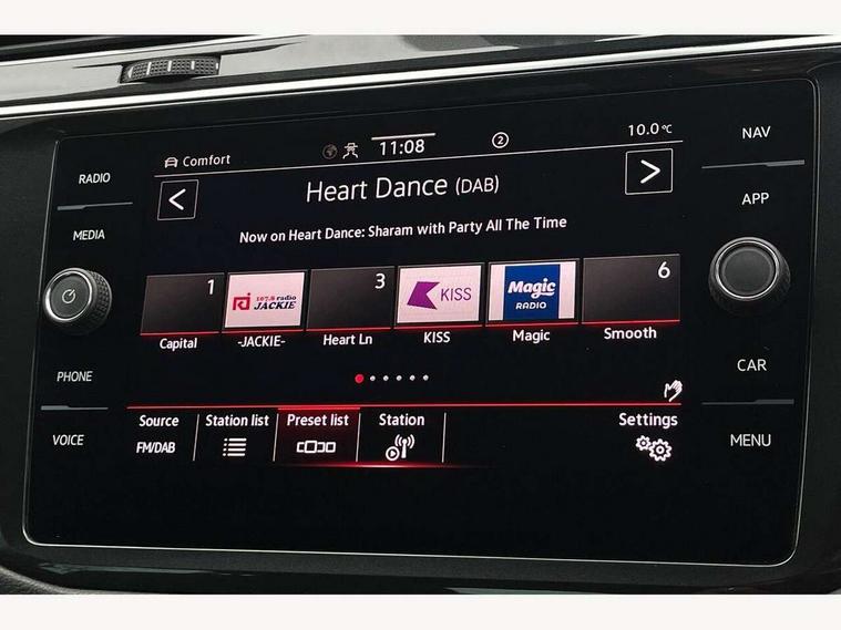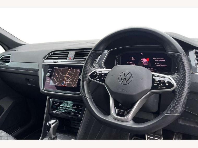 Adaptive cruise control ACC stop and go including speed limiter, App-Connect incl. App-Connect Wireless for Apple CarPlay and Android Auto, Bluetooth phone integration system, Digital Cockpit Pro - Active info display, Distance control assist, Driver alert system, Driver profile selection, Dynamic road sign display, eCall emergency call system, Electromechanical speed sensitive power steering, Engine start/stop button, Lane keeping system Lane Assist, Lights on warning, Multifunction front facing camera, Outside temperature display, Premium multifunction display with multi colour display, Remote control boot opening, Rev counter, Revision / skills operating concept travel assistant, Service interval indicator, Speed limit display, Start/stop system with regenerative braking, Trip computer, Warning sound and light for doors and tailgate open, Battery regeneration during braking, Charging cable Mode 3 Type 2 / 3 (16A), XDS electronic differential lock for improved traction and handling, 2 USB-C ports in the front, 1 USB-C charging socket on the center console in the rear, Diversity antenna for FM reception, Radio, SD card slot, Simultaneous pairing of 2 compatible mobile devices, SMS functionality - read, compose and send SMS messages using touch-screen display, Title and cover art display, Auto dimming interior rear view mirror, Automatic headlight control system, Black roof rails, Body colour door handles, Body coloured bumpers in R Line style, Body coloured door mirrors with integrated indicators, Chrome moldings on the side windows, Coming/leaving home lighting function, Dynamic headlight range control, Front and rear electric windows, Heated rear window, High level 3rd brake light, Laminated safety glass windshield, heat and sound insulating, LED rear number plate lights, License plate carrier in front and rear, Privacy glass for rear side windows and rear window, R Line body kit, R Line side sills, Rain sensor windscreen wipers, Rear exhaust tailpipe, Rear fog lamp, Rear side wing doors, Rear spoiler in R style, Rear windscreen washer and wiper with interval delay, Side and rear windows in heat insulating glass, Trailer Stability Programme, Unique R Line badging, Windscreen wipers/ intermittent wipe + 4 position delay, 12V outlet in center console rear and in luggage compartment, 12V outlet in front and tray, 2 cup holders in front, 2 LED front reading lights, 2 LED rear reading lights, 3 bench rear seats in 2nd row, 3 rear headrests, 4 load lashing points, 40:20:40 split folding rear seats, Air Care Climatronic 3 zone automatic climate control with enhanced air filter and controls in the rear, Backrest release for left front seat, Black headlining, Brushed stainless steel pedals and footrest, Carpet mats in front and rear with decorative stitching in Gray, Climate control unit rear with touch function, Door and side trim panel in foam film, insert in leatherette, Front centre armrest, Front footwell illumination, Front seats head restraints (x-adjustment), Height adjustable front seats, Height/reach adjust steering wheel, Instrument lighting white adjustable panel illumination, Interior light with delay, Isofix Preparation 2 Rear child seats, Leather gear knob, Lockable cooled glovebox, Luggage compartment lighting, Luggage net, Rear bench seat asymetrically split folding, longitudinally movable and folding with load-through hatch and center armrest, Remote unlocking for rear seat backrest, Removable luggage cover, Removable rear headrests, Safety optimised front head restraints, Single front passenger seat, Sliding/reclining rear seats, Standard rear seat release, Storage compartment in driver's door, Storage compartment in passenger's door, Storage compartment in rear doors, Storage compartments in luggage area left and right, Storage tray on dashboard, Sun visors with illuminated vanity mirrors, Top front comfort seats, Variable boot floor, height adjustable and removable, Ambience pack - Tiguan R Line, Driver assistance pack plus - Tiguan DSG, Park assist pack - Tiguan, 3 point seat belt for centre rear seats, 3 point seat belts with seat belt pretensioners for the outer rear seats, Active bonnet, Curtain airbags for front and rear passengers, Driver/Front Passenger airbags, Drivers knee airbag, Electronic parking brake with auto hold, Electronic Stability Control with driver steering recommendation, ABS, ASR, EDL, EDTC and trailer stabilization, Front assist with autonomous emergency braking (for Adaptive Cruise Control ACC up to 130 mph), Front disc brakes, Front passenger airbag deactivation, Front side airbags, Height adjustable front 3 point seatbelts + pretensioners, Hill hold control, Manual child proof rear door locks, Pedestrian monitoring system, Power assisted brakes, Proactive passenger protection system in combination with front assist, Rear disc brakes, Rigid safety cell with front and rear crumple zones, Two tone horn, Tyre pressure loss indicator, Warning sound and light for front seat belts if unfastened, Anti theft alarm system with interior monitoring, backup horn and towing protection, Anti theft wheel bolts, Electronic engine immobiliser, 20" Misano black with diamond turned surface alloy wheels with Airstop tyres, Tool kit, Tyre mobility kit Includes 12V compressor and tyre sealant,