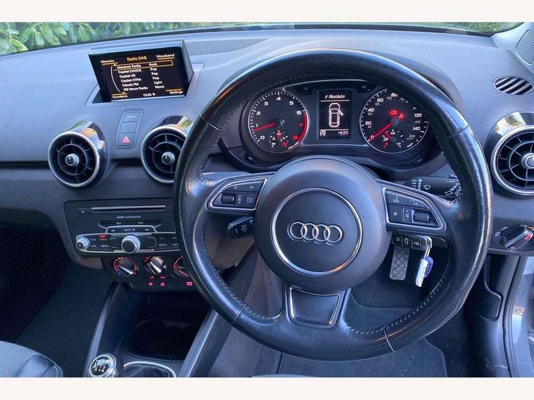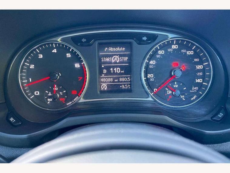 Audi drive select, Electro-mechanical PAS, Low washer fluid indicator, Service interval indicator, Voice control system, Additional SD card reader, Audi music interface, Bluetooth audio streaming, DAB Digital radio, Adaptive brake lights, Electric adjustable door mirrors, Electric front windows, Electric rear windows, Front fog lights, Heat insulating glass, Heated door mirrors, Heated rear windscreen, Rear wiper, 12V Accessory socket in centre console, 3 spoke leather multifunction sports steering wheel, Adjustable rear head restraints, Cupholders in centre console, Door sills trims with aluminium inlays, Front floor mats, Front head restraints, Front sports seats, Height adjustable front seats, Illuminated glovebox, Isofix attachments on outer rear seats, Jack and tool kit, Leather handbrake, Lumbar adjustment for front seats, Rake/reach adjustable steering wheel, Split folding rear seats, ABS/EBD, Brake assist function, Driver and passenger side airbags, Driver/Front Passenger airbags, EDL, ESP with ASR, First aid kit, Front and rear seatbelt reminder, Front passenger airbag deactivation, Head airbags, Height adjustable front seatbelts, Tyre pressure monitor, Warning triangle, Locking wheel bolts, Remote control central locking, Thatcham category 1 alarm + immobiliser, Tyre repair kit,