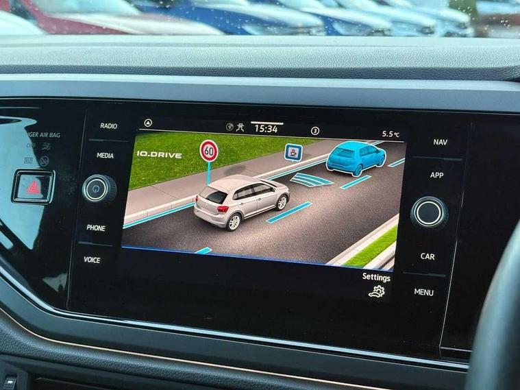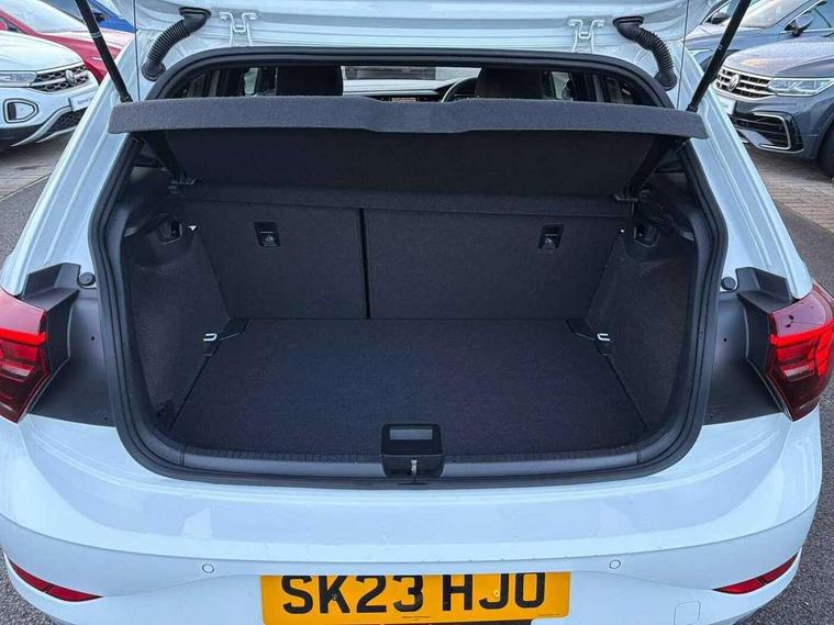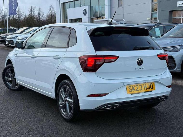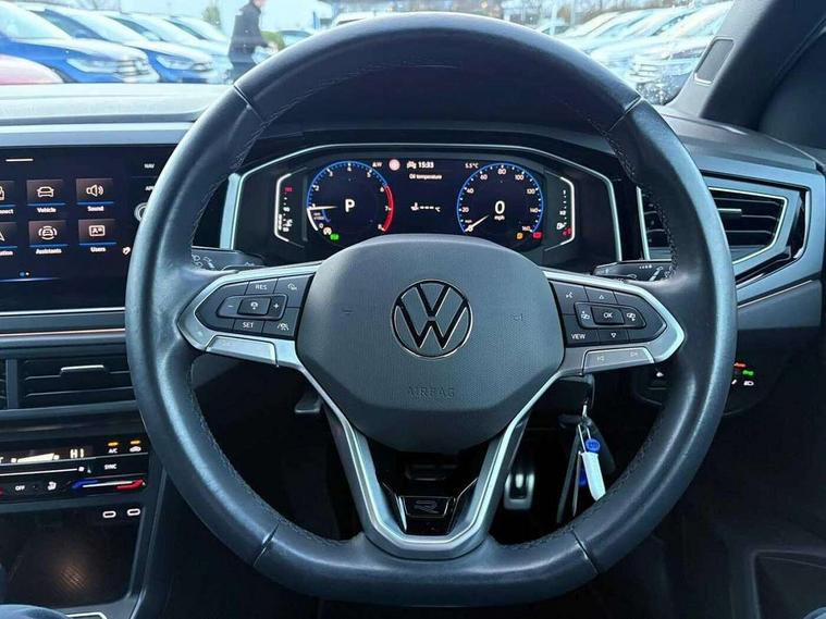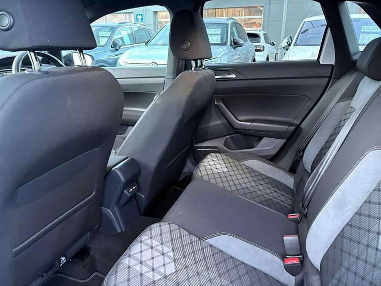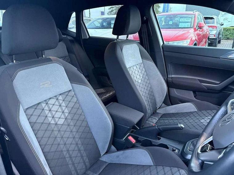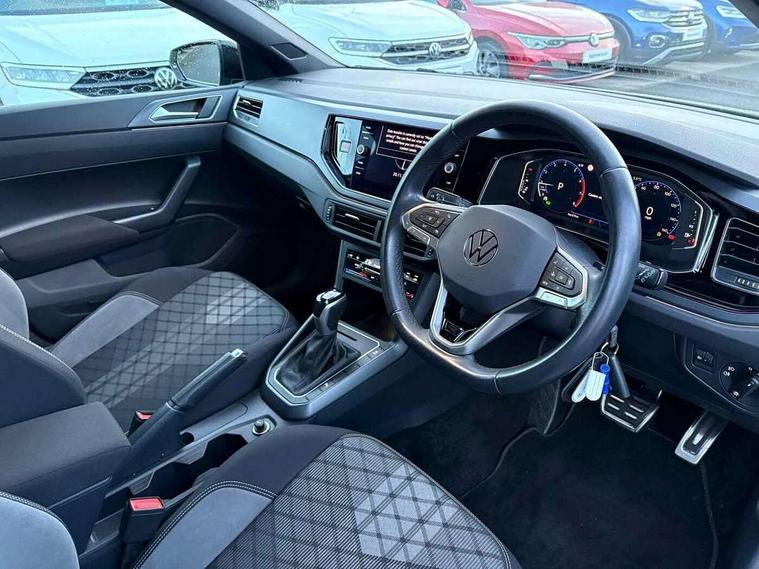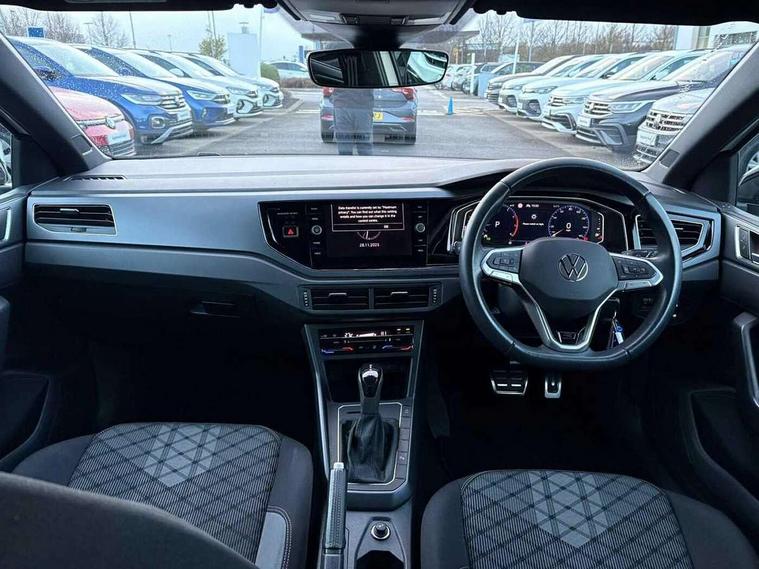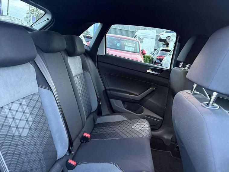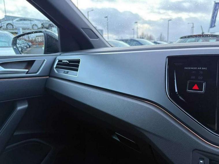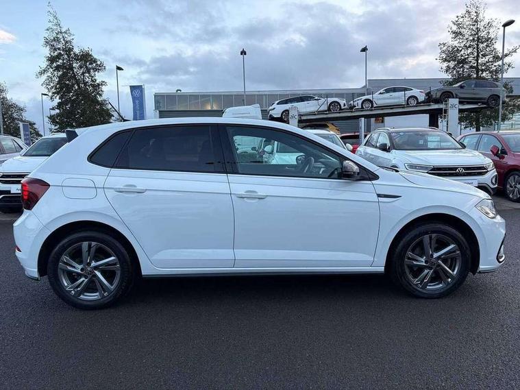 Adaptive cruise control with follow-to-stop and speed limiter, Bluetooth mobile phone interface, Digital Cockpit Pro with 10.25" Display, Driver alert system, Dynamic road sign display, Emergency call service, Power assisted speed sensitive steering, Preparation for We connect and We connect plus, Speedo and rev counter, electronic odometer, trip, service interval display and fuel gauge, Standard rear axle, Travel Assist - Lane keeping system and traffic jam assist, Travel assist including emergency assist, Trip computer, Warning signal and warning light for front and rear seatbelts not fastened, Washer fluid level indicator, Wireless app connect, Front wheel drive, Rear shock absorpion, Start-stop system with battery regeneration (recuperation - energy recovery during braking), DAB Digital radio, Diversity antenna for FM reception, Front and rear 6 speakers, Body colour bumpers, Body colour door handles, Electric front windows, Front scuff plates with R-Line logo, Heat insulating darkened glass in side and rear windows, Heat insulating glass windscreen, Power folding adjustable/heated exterior mirrors and front passenger exterior mirror lowering function, Rear electric windows, Rear fog light, Rear side wing doors, Rear windscreen washer and wiper with interval delay, Third brake light, 12V power socket in centre console, 2 USB-C ports in the front, 2 USB-C charging sockets on the center console in the rear, 3 rear head restraints, 60/40 split folding rear seat and rear seat bench not split, Air care climatronic air conditoning system with active combination filter and 2-zone temperature control, Black roof lining, Chrome plated radiator grille inserts, air vent surrounds and light switch surrounds, Door and side trim panel, Driver and front passenger seat height adjustment, Driver/passenger sunvisors with illuminated vanity mirrors, Front + rear carpet mats in recycled material, Front centre armrest, Front footwell illumination, Front seat backrest storage pockets, Front sports comfort seats, Handbrake lever handle in leather, Headliner in recycled material, Isofix child seat preparation easy-fit (for two outer rear seats, and front passenger seat) compatible with I-size, Karoso artvelours cloth upholstery, Leather trimmed gear knob, LED interior light with switch off delay and dimmer, 2 reading lights front and rear, Luggage compartment cover, Luggage compartment floor, Luggage compartment lighting, Lumbar adjustment for front seats, Single front passenger seat, Stainless steel pedals, Standard pedal cluster, Three spoke leather wrapped multifunction steering wheel with shifting paddles, Light and sight pack - Polo R-Line/Black Edition, 3 point height adj front seatbelts + pretensioners, 3x3 point rear seatbelts, ABS, Driver and front passenger airbag with front passenger airbag deactivation, Drivers and front passengers safety optimised head restraints, ESC (Electronic stability control) + EDL (Electronic Differntial lock) and ASR (Traction control), Extended and predictive pedestrian/ cyclist protection, Front curtain and side airbags with center airbag, Front/rear disc brakes, Hill hold control, Manual child lock in rear doors, Single tone horn, Tyre pressure loss indicator, Alarm with interior protection, Anti-theft alarm system with interior monitoring, backup horn, and towing protection, Anti-theft wheel bolts, Electronic engine immobiliser, Chrome applications on rotary light, mirror adjustment, window regulator switches, outlet with frame in black, Dark grey anodised matt decorative inserts in dash and front door panels, Low rolling resistance tyres,
