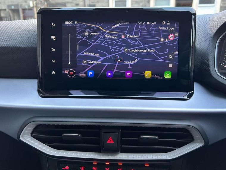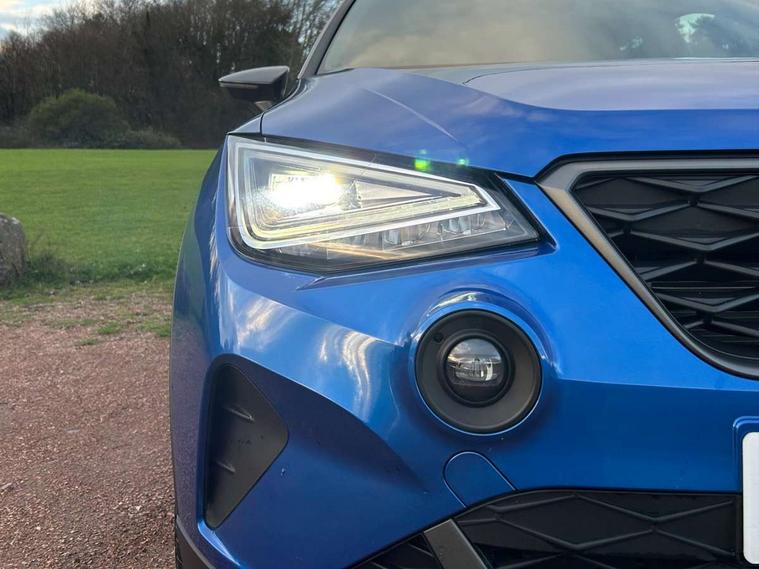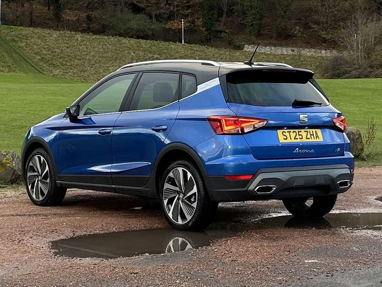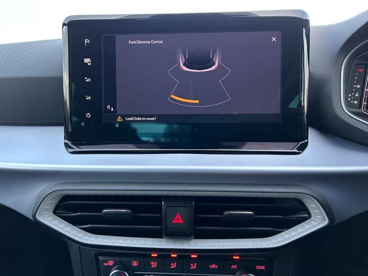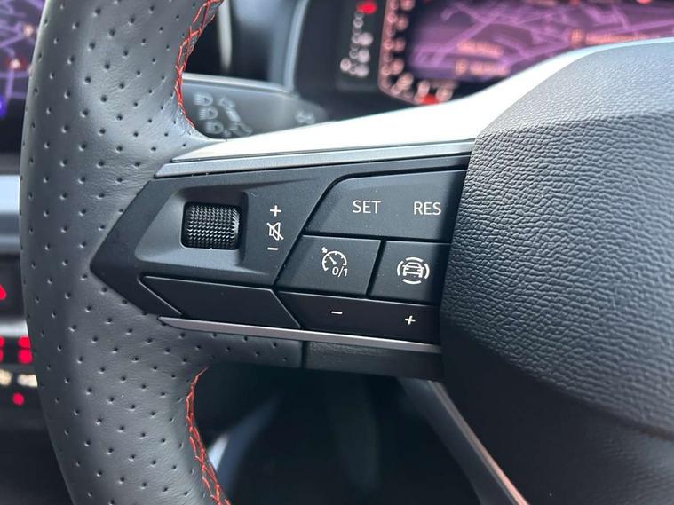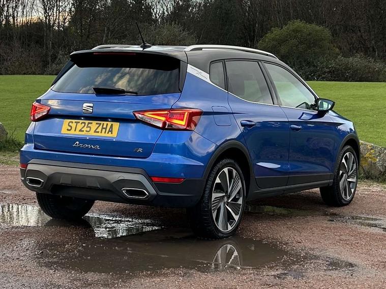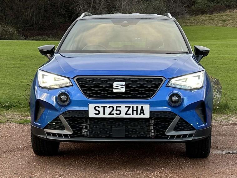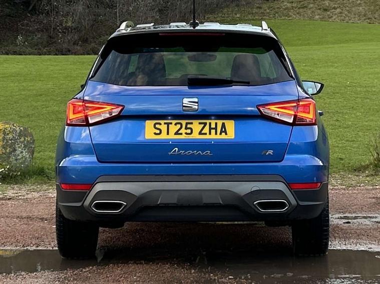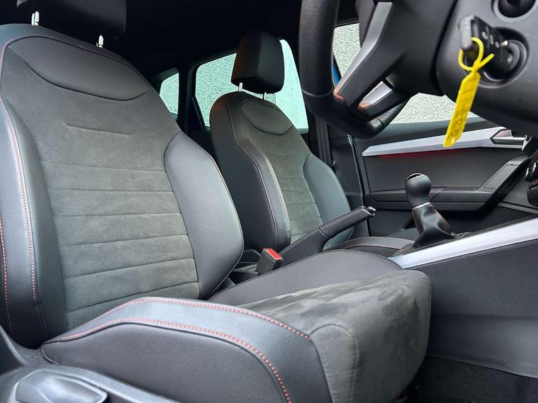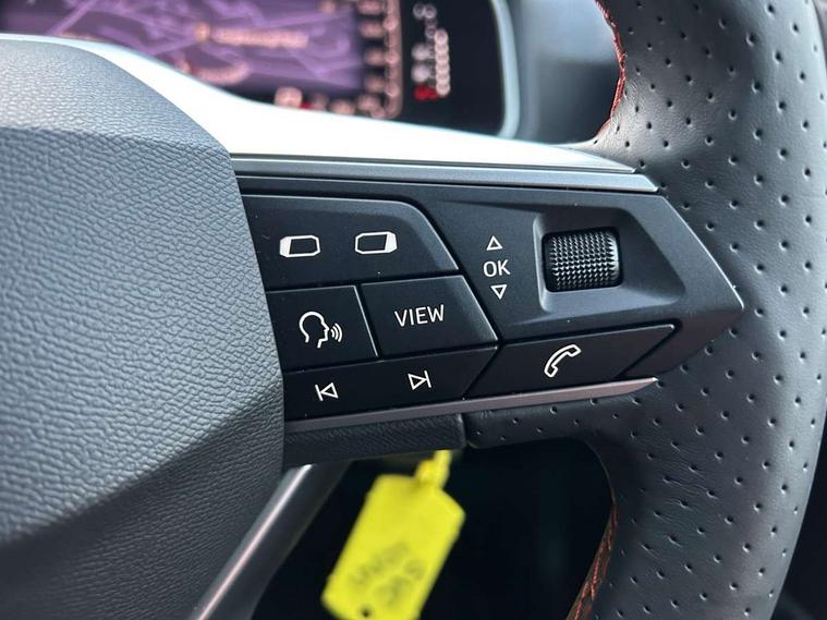 'Lights On' Reminder warning buzzer, 10" Digital cockpit, Digital clock, E-call, Electric speed sensitive power steering, Full link smartphone integration with mirror link, wireless apple carplay, Google android auto + USB Type C cable for apple and android devices, Lane keeping system, Low fuel warning light, Outside temperature display, RPM counter, SEAT Drive profile - Four different models normal-sport-eco-individual, steering response, throttle response, Trip computer, Wireless phone charger, 6 speakers, 9.2" colour touchscreen with navigation system, voice control and USB port (type c), Bluetooth interface for hands free and audio streaming, DAB digital radio and AM/FM radio, Steering wheel mounted audio controls, Anti theft roof antenna, Auto dimming interior rear view mirror, Automatic activation of hazard warning lights, Body coloured bumpers, Body coloured door handle inserts, Chrome roof rails and window surrounds, Dark tinted rear windows, Electric front/rear windows, Electrically adjustable, heated and folding door mirrors, Front fog lights with cornering function and rear fog light, FULL LED automatic headlights with dynamic headlight range control, coming and leaving home, LED daytime running lights, LED rear tail lights and licence plate lights, Protective side mouldings, Rain sensing wipers, Rear side wing doors, Rear spoiler, Rear window wash/wipe, Roof colour door mirrors, Third brake light, Twin exhaust pipe styling hidden exhaust pipe, Visible VIN plate, 2 cupholders, 3 seat bench in 2nd row, 60/40 split folding rear seat, Aircare filter, Black interior roof, Double boot floor, Driver sunvisor with covered mirror + card holder, Dual zone climate control, Front comfort seats, Front courtesy light with front reading lights, Front seat back storage pockets, Gear shift indicator, Heated front seats, Height adjustable front seats, Height/reach adjustable steering column, Illuminated air vent surrounds, Illuminated boot, Instrument lighting with brightness control, Interior ambient lighting, Interior light in footwell, central console and door panel, ISOFIX points in outer rear seats with top tether anchorage points, Microsuede cloth upholstery, Passenger sunvisor with vanity mirror, Perforated flat bottomed leather steering wheel/gear knob/handbrake with red stitching and FR logo, Potentiometer, Single front passenger seat, Two front and three rear height adjustable headrests, Interior chrome pack - Arona, Safe and driving pack (S) - Arona, 3 point seatbelts on all rear seats, ABS, Active front headrests, Child locks on rear doors, Driver and front passenger airbags with front passenger airbag de activation, front side and curtain airbags, Emergency Brake Assist (EBA) and front assist, Front and rear seatbelt reminder, Hill hold control, Multi-Collision braking, Tiredness recognition system, Traction control, Tyre pressure monitoring system, Alarm with back up horn with tow away protection, Deadlock, Electronic engine immobiliser, Locking wheel bolts, Remote central locking, Titan black dashboard, 18" Performance Cosmo grey matt alloy wheels,