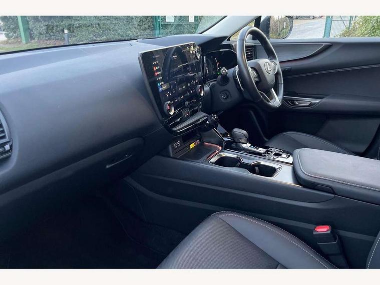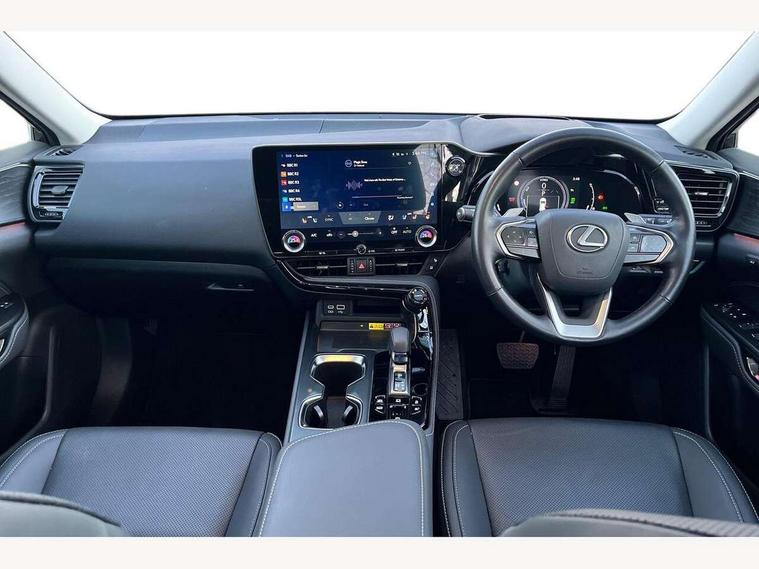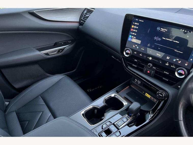 360 degree panoramic view monitor, 4 driving modes EV/Eco/Normal/Sport, 7" display in instrument binnacle, Blind spot monitoring with rear cross traffic alert, Bluetooth telephone connectivity, eCall emergency system, Electric speed sensitive power steering, Extended lexus safety+ system includes front cross traffic alert and lane change assist, Fully automated parking, Head up Display, Intelligent parking sensors - 4 front and 4 rear, Lane change flasher function, Lexus link connect - Cloud based navigation, cloud based voice assistant, always online, 14" HD touchscreen, embedded nav and faster CPU, Push button starter, Reversing camera with back guidelines, Service interval indicator, Tailgate, Tazuna cockpit with 7" improved meters display, 10" HUD and capacitive touch steering wheel switches, Wireless Apple CarPlay and wired Android Auto, Wireless Smartphone charger, 6.6 kW onboard charger, All Wheel Drive (AWD), Hybrid automatic transmission, Vehicle Dynamics Integrated Management (VDIM), Vehicle Stability Control (VSC), 4 USB ports - 2 front, one USB C, 2 rear USB C, DAB Digital radio, Mark Levinson premium surround sound system with 17 speakers, 4 eye LED headlight with adaptive high beam, Automatic headlights, Digital rear view mirror, Double hidden exhaust pipes, Electric sunroof, Front and rear one touch power windows, with anti-jam protection, Headlight cleaners, Heated, auto-folding, auto-dimming outside mirrors with reverse tilt function and turn indicators, Illuminated door handles with puddle light, LED brake lights and rear lights with emergency brake signal, LED cornering lights, LED daytime running lights, LED front fog lights, LED Indicators, Power back door with kick sensor, Privacy glass, rear doors and tailgate, Rain sensor windscreen wipers, Rear side wing doors, Rear wiper, 12V accessory port centre console and luggage compartment, 2 cupholders in front centre console, 2 x fixed shopping bag hooks in boot, 2 x sun visors with vanity mirror and lamp, 3 seat bench in 2nd row, 4 way electrical lumbar adjustment for driver, 4 x tie down hooks in the boot, 60/40 split folding rear seat, 8 way driver/passenger electrically adjustable front seats, Adjustable rear seat backrest, Card holder installed in driver and passengers sun visors, Centre armrest with storage box, Door courtesy lights, Driver seat memory function, Dual zone climate control air conditioning system with humidity sensor, Front and rear head restraints, Front and rear textile carpet mats, Front passenger seat, Heated and ventilated front seats, Heated rear seats, Heated steering wheel, Leather gear lever, LED ambient lighting, LED interior illumination, Power adjustable leather steering wheel with paddle shifts, Rear centre armrest with 2 cupholders, Smooth leather upholstery, Whiplash Injury Lessening (WIL) feature (active headrest) for seats, 2 x Isofix child rear seat restraints, 3 point ELR front seatbelts with pretensioners, 3x3 point rear seat belts, ABS, Adjustable seat belt anchor points, Driver and front passenger 2 stage airbag, Driver/front passenger side airbags, Drivers knee airbag, E-Latch with safe exit assist, EBD + Brake Assist, ECB (Electronically Controlled Brake System), Electronic parking brake, Front and rear curtain shield airbags, Front center airbag, Front passenger seat cushion airbag, Hill assist control, Lexus safety system - dynamic radar cruise control, pre collision system day and night, lane tracing assist, road sign, OTA, Manual rear child locks, Passenger airbag cut-off device, Traction control, Tyre pressure warning, Anti-theft system with alarm, intrusion sensor, glass breakage sensor, tilt sensor and engine immobiliser, Locking wheel nuts, Smart card key, Smart keyless entry, Speed sensitive auto door locking, Two motion door lock with double lock, Ultra Wide Band (UWB) Anti-theft system, VIN Window etching, Organic inlay, Sumi blackwood inlay,
