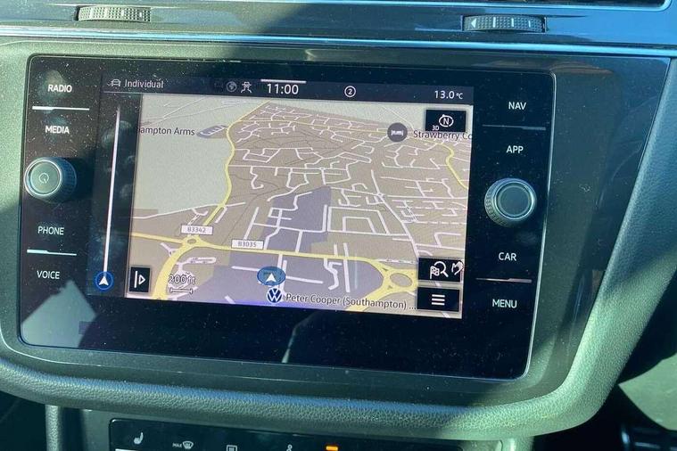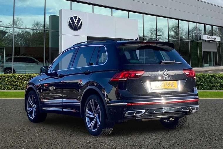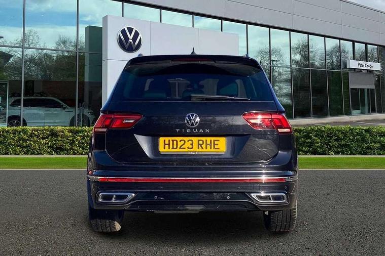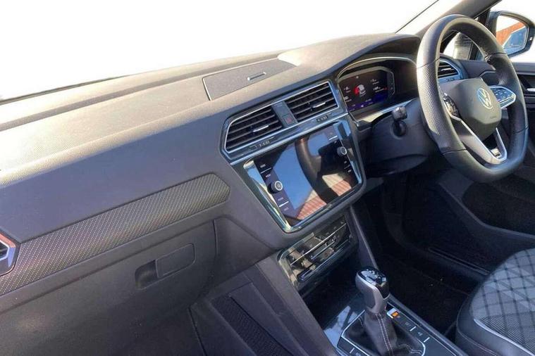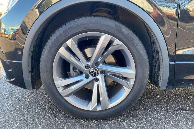 Adaptive cruise control ACC stop and go including speed limiter, App-Connect incl. App-Connect Wireless for Apple CarPlay and Android Auto, Bluetooth phone integration system, Comfort drive travel assist, Digital cockpit pro, Driver alert system, Driver profile selection, Dynamic road sign display, eCall emergency call system, Electromechanical speed sensitive power steering, Emergency assist, Front and rear parking distance sensors, Instrument cluster mph speedometer Great Britain, Lane keeping system Lane Assist, Lights on warning, Multifunction front facing camera, Outside temperature display, Premium multifunction display with multi colour display, Preparation for subsequent activation Navigation feature Discover Media includes Streaming and Internet, Remote control boot opening, Rev counter, Service interval indicator, Speed limit display, Start/stop system with regenerative braking, Tailgate/trunk lid unlocking from outside, Trip computer, Warning sound and light for doors and tailgate open, Battery regeneration during braking, Sports suspension, 8 Speakers, Digital radio reception DAB+, Diversity antenna for FM reception, Radio, Auto dimming interior rear view mirror, Automatic headlight control system, Body colored bumpers in R-Line style, Body colored exterior mirror housings, Body colour door handles, Chrome moldings on the side windows, Coming/leaving home lighting function, Dynamic headlight range control, Front and rear electric windows, Heated rear window, High level 3rd brake light, Laminated safety glass windshield, heat and sound insulating, LED headlamps with LED separate daytime running light and dynamic cornering light, LED rear combination lamps, LED rear number plate lights, License plate carrier in front and rear, Poor weather light and cornering light, Power adjustable, folding and heated door mirrors with surround lighting, front passenger exterior mirror lowering function, Privacy glass for rear side windows and rear window, R Line body kit, R Line side sills, Rain sensor, Rear exhaust tailpipe, Rear fog lamp, Rear side wing doors, Rear spoiler in R style, Rear windscreen washer and wiper with interval delay, Side and rear windows in heat insulating glass, Trailer Stability Programme, Unique R Line badging, Windscreen wipers/ intermittent wipe + 4 position delay, 12V outlet in center console rear and in luggage compartment, 12V outlet in front and tray, 2 LED front reading lights, 2 LED rear reading lights, 3 bench rear seats in 2nd row, 3 rear headrests, Air Care Climatronic 3 zone automatic climate control with enhanced air filter and controls in the rear, Art Velours greyson sports cloth upholstery, Backrest release for left front seat, Black headlining, Brushed stainless steel pedals and footrest, Carpet mats in front and rear with decorative stitching in Gray, Climate control unit rear with touch function, Door and side trim panel in foam film, insert in leatherette, Driver + front passenger lumbar support, Front footwell illumination, Front scuff plates in aluminum with R-Line logo, Front seats head restraints (x-adjustment), Height adjustable front seats, Height/reach adjust steering wheel, Isofix Preparation 2 Rear child seats, Leather gear knob, Rear bench seat asymetrically split folding, longitudinally movable and folding with load-through hatch and center armrest, Remote unlocking for rear seat backrest, Single front passenger seat, Sun visors with illuminated vanity mirrors, Top front comfort seats, Winter pack - Tiguan, 3 point seat belt for centre rear seats, 3 point seat belts with seat belt pretensioners for the outer rear seats, Curtain airbags for front and rear passengers, Driver/Front Passenger airbags, Drivers knee airbag, Electronic parking brake with auto hold, Electronic Stability Control with driver steering recommendation, ABS, ASR, EDL, EDTC and trailer stabilization, Front assist with autonomous emergency braking (for Adaptive Cruise Control ACC up to 130 mph), Front disc brakes, Front passenger airbag deactivation, Front side airbags, Height adjustable front 3 point seatbelts + pretensioners, Manual child proof rear door locks, Pedestrian monitoring system, Proactive passenger protection system in combination with front assist, Rear disc brakes, Two tone horn, Tyre pressure loss indicator, Warning sound and light for front seat belts if unfastened, Warning triangle, Anti theft alarm system with interior monitoring, backup horn and towing protection, Anti theft wheel bolts, Electronic engine immobiliser, Keyless locking and starting system keyless access with safelock, Chrome elements on the mirror switch power window switches and door pulls, Decorative inserts Carbon Gray for dashboard and front door trim panels, Interior door handle in matte chrome, 19" Valencia alloy wheels with AirStop tyres, Tool kit, Tyre mobility kit Includes 12V compressor and tyre sealant,