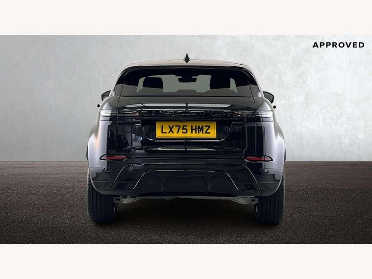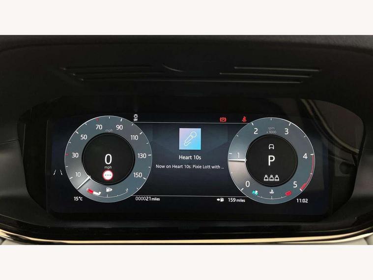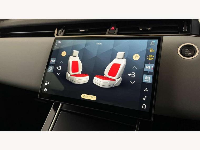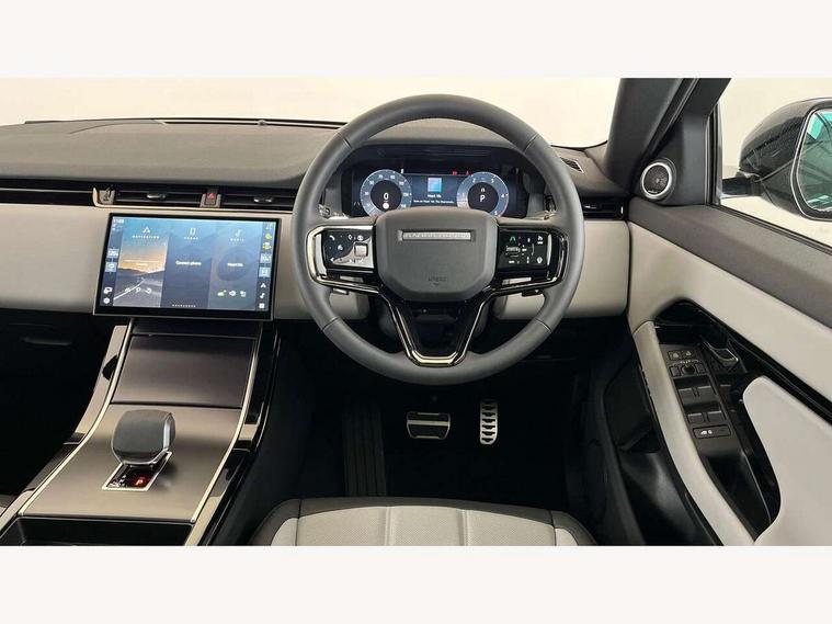 11.4" touch screen, 3D 360 degree surround camera with wade sensing, Adaptive cruise control, Android Auto, Apple car play, Blind spot assist, Bluetooth connectivity, Brake pad wear indicator warning light, Driver condition monitor, eCall emergency system, Eco mode, Electronic power assisted steering (EPAS), Front and rear parking sensors with auto brake, InControl remote, Interactive driver display, Land Rover InControl apps, Lane keep assist, Pivi pro connected includes diamond pivi variant, smart settings, connected navigation pro, nuance speech licence, Powered tailgate/boot lid, Rear collision monitor, Rear traffic monitor, Tailgate, Traffic sign recognition with adaptive speed limiter, Voice control system, Wireless device charging, All terrain progress control, Diesel exhaust fluid (DEF) large tank, Efficient Driveline, Large fuel tank, Terrain Response 2, Digital Audio Broadcast radio-DAB, Steering wheel mounted controls, Acoustic laminated windscreen, Auto headlights, Auto high beam assist, Automatic headlight levelling, Electric windows with one touch open/close and anti trap, Flush deployable exterior door handles, Front and rear recovery eyes, Heated rear window with timer, Heated washer jets, Heated windscreen, LED headlights with signature DRL and LED tail Lights, Power fold, auto-dimming, heated door mirrors with approach lights and auto dimming driver side, Rain sensing windscreen wipers, Rear animated directional indicators, Rear fog lights, Rear side wing doors, Rear wiper, Side repeater indicators in mirror, Tailgate spoiler, Third brake light, Winter wiper park position, 12 way driver memory and 10 way passenger electric front seats with 2 way manual headrest + 4 way lumbar support, 40:20:40 split folding rear seats with centre headrest and armrest, Ambient interior lighting, Bright metal pedals, Carpet mats, Chrome tread plates with range rover branding Includes stainless steel loadspace scuff plate with etched graphic, Customer configurable single point entry, Front and rear cupholders, Heated front seats, Heated steering wheel, Isofix system on outer rear seats, Manually adjustable steering column, Overhead lighting console, Overhead stowage for sunglasses, Passive front head restraints, Rear air vents, Rear head restraints, Satin chrome gearshift paddles, SE Grained leather upholstery, Single passenger seat, Standard steering wheel with Moonlight Bezel, Sunvisors with illuminated vanity mirrors, Twin sliding front centre armrest, Power socket pack 2 - Evoque, 3 rear 3 point seatbelts, Anti-lock braking system (ABS), Brake hold function, Customer configurable autolock, DSC - Dynamic Stability Control, Electronic brake force distribution, Electronic parking brake, Electronic traction control, Emergency braking, Front and rear seatbelt reminder, Hill descent control, Hill launch assist, Low traction launch, Occupant protection assist, Passenger seat occupant detector, Power operated child locks, Roll stability control, Six airbags - Driver and passenger airbags/driver knee airbag/front side airbag and curtain airbags, Torque vectoring brake, Tyre pressure monitoring system, Alarm, Immobiliser, Intrusion sensor, Keyless entry, Locking wheel nuts, All season tyres,