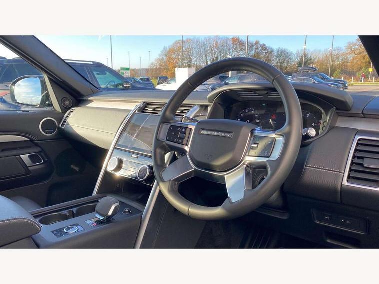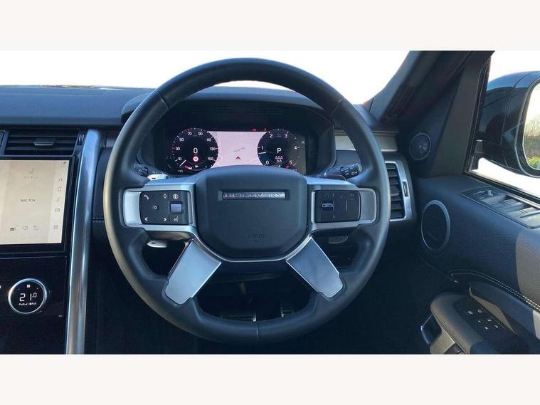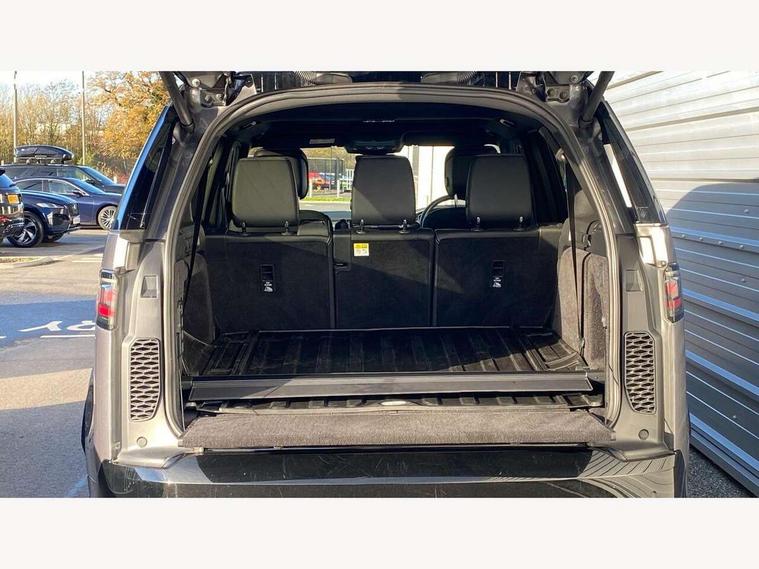 11.4" touchscreen, 3D surround camera, Adaptive cruise control, Android Auto, Apple car play, Blind spot assist, Driver condition monitor, Electric power assisted steering (EPAS), Emergency services call system, Front and rear parking aid, Interactive driver display, Lane keep assist, Power inner tailgate, Power tailgate/boot lid, Push button start, Rear collision monitor, Rear traffic monitor, Remote, Remote boot release, Service interval indicator, Speed proportional steering, Sportshift selector, Stop/start system, Traffic sign recognition with adaptive speed limiter, Trip computer, Wade Sensing, Adaptive dynamics, Dynamic stability control, Electronic air suspension, Front axle open differential, Digital Audio Broadcast radio-DAB, Dynamic volume control, Pivi pro connected, USB/aux input socket, Acoustic laminated windscreen, Animated directional indicators, Auto dimming interior rear view mirror, Auto high beam assist, Automatic headlight levelling, Automatic headlights, Body colour bumpers, Body colour door handles, Centre high mounted stop light, D300 badge, Electric heated/power fold memory door mirrors with approach lights and auto dimming driver side, Electric windows with one touch open/close and anti-trap, Heated rear window, Heated windscreen, LED darkend tail lights, LED headlights with signature DRL, Narvik black Discovery script, Privacy glass, Puddle lights, Rain sensing windscreen wipers, Rear fog lights, Rear side wing doors, Rear wash/wipe, Trailer stability assist, Variable intermittent wiper, 12V power sockets, 12V USB charging socket in loadspace, 18 way heated electric memory driver seats with captains armrest + manual height adjust headrest + 4way power lumbar support, 2 seat bench in 3rd row, 3 seat bench in 2nd row, Central hinged twin lidded storage, Ebony morzine headlining, Electric adjustable steering column, First and second row door bins, Footwell lights, Front and rear 12V with front USB, Front passenger seat isofix location point, In-facia storage, Isofix child seat preparation for front passenger seat, Loadspace cover, Loadspace Hook, Loadspace light, Lockable glovebox, Lower centre console storage, Luggage tie downs in loadspace, Multi function steering wheel, Overhead lighting console, Premium carpet mats, Premium non-leather steering wheel, Rear ISOFIX, Shopping bag hook, Single front passenger seat, Storage glovebox, Sunvisors with illuminated vanity mirrors, Third row storage, Treadplates with metal inserts, Twin front cupholders with cover, USB with 12V socket in centre console, Black exterior pack - Discovery Dynamic SE/HSE, Online pack with data plan - Discovery, 3x3 point rear seatbelts, Anti-lock braking system (ABS), Brake pre-fill technology, Cornering brake control, Curtain airbags, Customer configurable autolock, Driver and passenger airbags, EBD - Electronic brakeforce distribution, Electronic traction control, Emergency brake assist, Emergency braking, ESP, Front side airbags, Gradient acceleration control, Hill descent control, Hill launch assist, Power operated child locks, Rear airbags, Roll stability control, Seat belt reminder, Torque vectoring brake, Tyre pressure monitoring system, Immobiliser, Intrusion sensor, Keyless entry, Locking wheel nuts, Remote central locking, All terrain tyres,