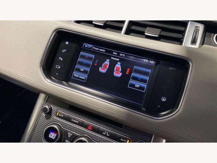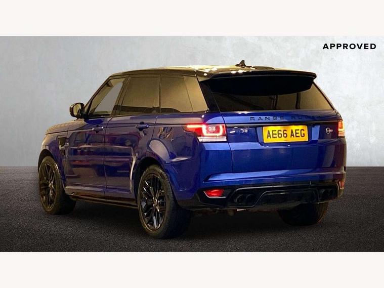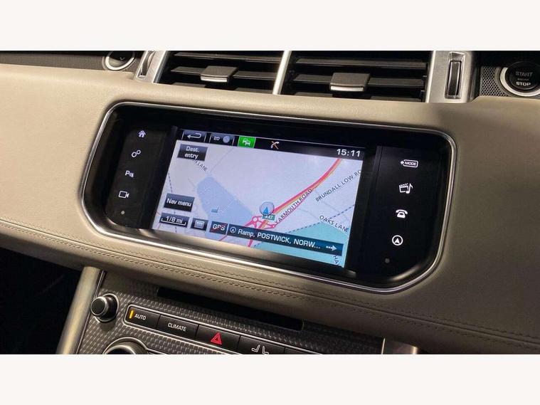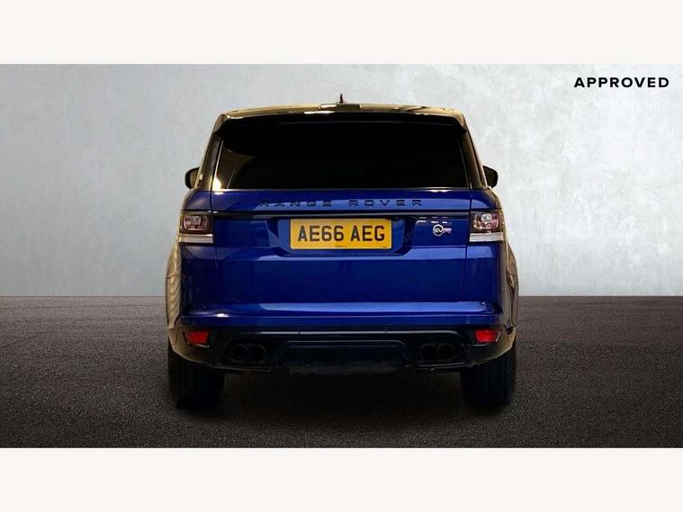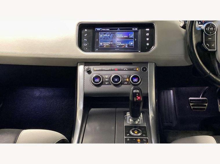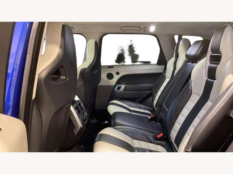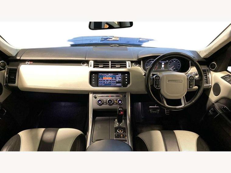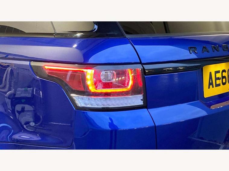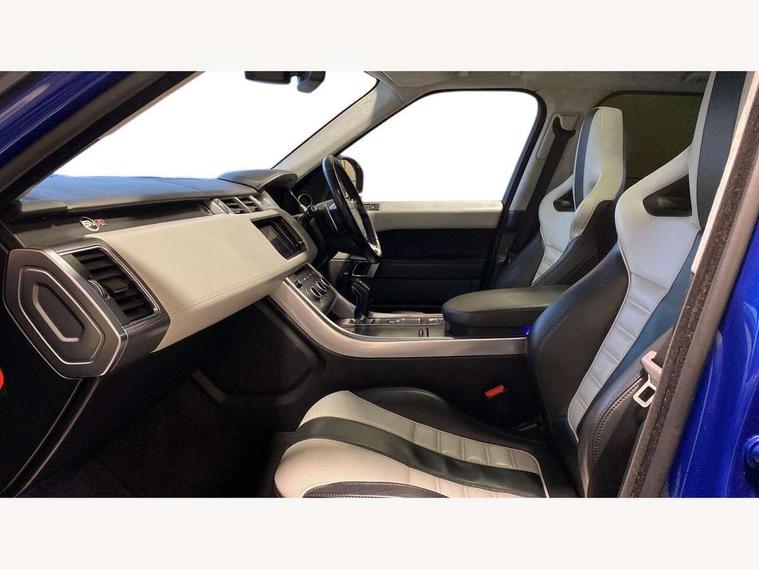 360 degree Park Distance Control, Bluetooth telephone connection, Dynamic response, Fatigue detection system, Front parking aid with visual display, Gesture tailgate, HDD Premium navigation including voice control, TMC with touch screen and media storage, InControl secure, Mist sensor, Push button starter, Rear park distance control, Speed limiter, Speed sensitive power steering, TFT Virtual Instrument Panel, Traffic sign recognition, Trip computer, Adaptive dynamics, Electronic air suspension, Terrain Response 2 Auto, Terrain Response 2 with dynamic program, Twin speed transfer box, Bluetooth audio streaming, DAB Digital radio, InControl protect, MP3 compatible radio/single CD player, USB/aux input socket, Active sports exhaust, Adaptive brake lights, Auto dimming door mirrors, Auto dimming rear view mirror, Automatic headlights with high beam assist, Body coloured side sills and bumpers, Daytime running lights, Door/quarter lights in toughened plate glass, Electric front/rear windows/one touch operation, Electric heated, adjustable, folding door mirrors with memory + approach lamp, Follow me home headlights, Gloss black door mirrors, Gloss black exterior trim, Headlight washers, Heated rear window, Heated washer jets, Heated windscreen, Illuminated aluminium treadplates with Range Rover lettering, Laminated front side windows, Laminated windscreen, LED rear lamps, Quad tailpipes, Rain sensor windscreen wipers, Rear wash/wipe, Remote window closing, Trailer stability assist, 16 way driver/passenger electrically adjustable sports seats with memory, 2 way rear head restraints, 60/40 split folding rear seat, Auto air recirculation, Centre armrest with cubby box, Climate control memory, Customer configurable interior mood lighting, Driver's footrest, Front and rear cupholders, Front and rear premium carpet mats, Front door storage bin, Front map lights, Front seat back map pockets, Front stowage pocket, Front/rear passenger grab handles, Glovebox, Heated front and rear seats, Integrated front head restraints, Isofix child seat preparation, Luggage compartment lighting, Multifunction steering wheel, Pollen filter, Premium Noble Plated Paddle Shift, Reach/rake electric adjustable steering column + entry/exit tilt away, Rear centre armrest, Roller blind loadspace cover, Sports pedals, SVR two tone oxford perforated leather upholstery, Three 12V accessory power outlets, InControl connect Pack - Range Rover Sport, 3 point seatbelts on all seats, ABS + EBD + EBA, Auto lock system when vehicle in motion, Auto locking differential, Autonomous emergency braking, Blue brake calipers, Cornering brake control (CBC), Curtain airbags, DSC - Dynamic Stability Control, Dual stage driver/passenger airbags, Electric child locks, Electronic parking brake, Electronic traction control, Front seatbelt pretensioners, Front side airbags, Height adjustable front seatbelts, Hill descent control, Low traction launch, Roll stability control, Seatbelt warning, Torque vectoring brake, Tyre pressure monitoring system, Keyless entry, Locking wheel nuts, Perimetric and volumetric anti theft alarm, Remote locking, Gloss black tailgate finisher,