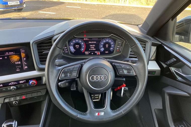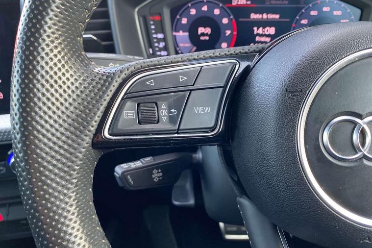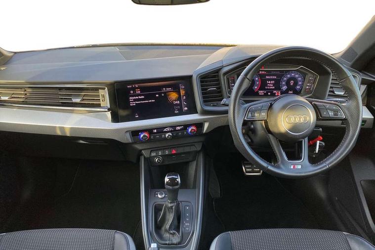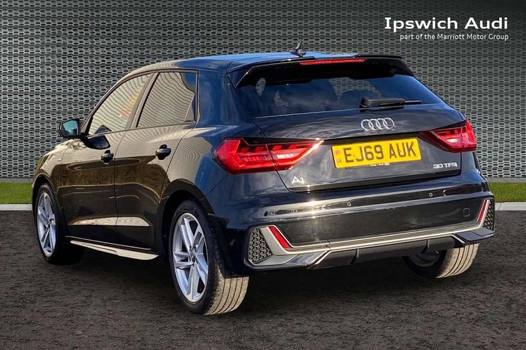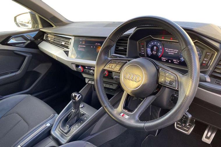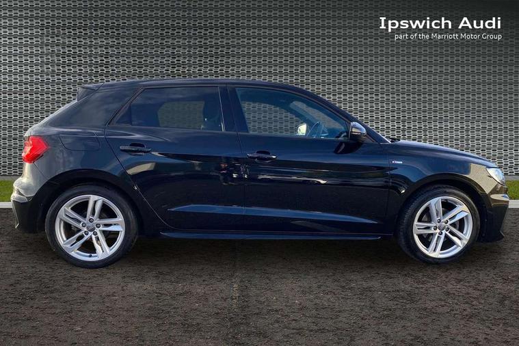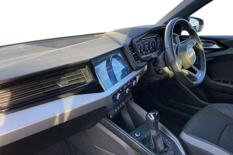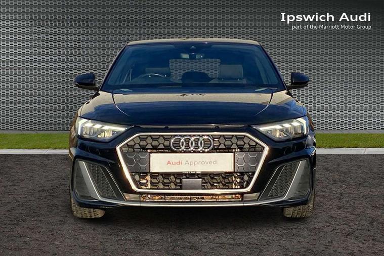 10.25" Digital instrument cluster display classis style instrument dials + speed, odometer, time, outside temperature, telephone menu + fuel level warning, Audi connect safety emergency and service including E-call, Audi drive select - power steering assistance + engine + gear shift 3 preset modes (auto, dynamic, efficiency and an Individual mode), Audi smartphone interface with connect compatible smartphone via USB directly MMI display + Nav, music, third party apps controlled via MMI controller, Automatic start/stop system, Bluetooth interface, Cruise control, Driver's information system, Electromechanical power steering, Lane departure warning system, Rear parking sensor, Service interval indicator, Speed limiter, Voice control system, Washer fluid level indicator, Sports suspension, 1 x SDXC card reader, 1 x USB type C and 1 USB type A charging points, DAB Digital radio, MMI radio plus with 8.8" colour MMI display screen and MMI touch, Auto dimming rear view mirror, Body coloured door mirrors, Door sills with aluminium inlays and S Line logo, Electric front and rear windows, Electrically adjustable, heated, folding door mirrors with integrated LED side indicator, Front side air inlets in grained matt black and C frame in titanium black, Heat insulating glass windscreen and side windows, Heated rear windscreen, LED headlights with LED rear lights + dynamic rear indicators + headlight adjustment and high beam, turning light + LED daytime running lights, Radiator grille and rear diffuser in matt titanium black, Radiator protective grille frame in matt aluminium silver, Rain and light sensors, Rear fog lights, Rear wiper, S line badges on front wings, Side front spoiler lips in grained matt black, 12V socket in centre console with two cup holders, 3 rear seats with headrests, 40:60 Split folding rear seat or folded fully, Black cloth headlining, Driver and passenger seat with manual height adjust with forward and backwards adjustment, Front and rear black floor mats with contrast stitching in fine silver, Front head restraints, Height and reach adjustable steering wheel, ISOFIX child seat mounting for front passenger and outer rear seats including top tether attachment point of outer rear seats, Leather gear knob with aluminium trim, Luggage compartment light with front and rear reading lights, Manually adjustable lumbar support in front seats, Stainless steel pedals, LED interior lighting pack - A1, Luggage compartment pack - A1, S line exterior styling pack - A1 Sportback, 3x3 point rear seatbelts, Audi pre-sense front with pedestrain and cyclist recognition, Brake assist function, Driver and front passenger airbag with front side and head airbags, Electronic Stability Control including ABS, EBD, ASR and EDL, Front and rear seatbelt reminder, Front passenger airbag deactivation switch, Hill hold assist, Seatbelt height adjustment for front seats, Seatbelt monitoring, Tyre pressure warning light, Warning triangle and first aid kit, Anti theft alarm, Anti theft wheel bolts and loose wheel warning, Immobiliser, Remote central locking with 2 foldaway keys, Aluminium trim for control switches, air vents and digital instrument cluster, Silver grey inlays polygon structure in diamond paint finish, Structured grey accent areas including air vents, door handle recesses and centre console in quartz paint finish,