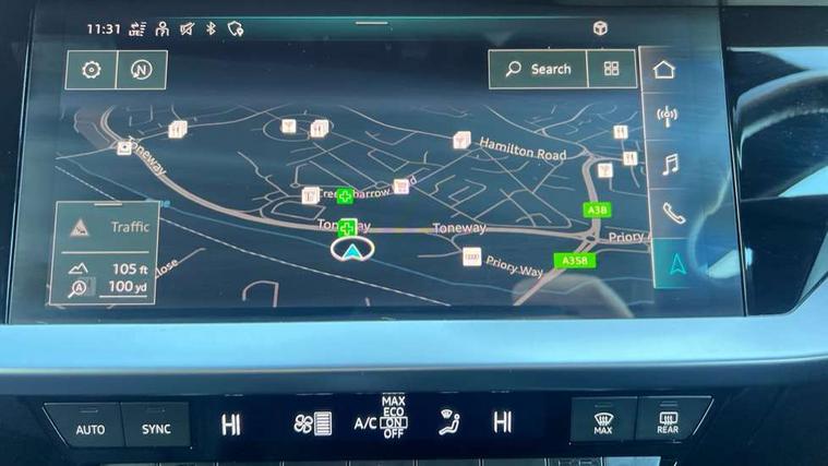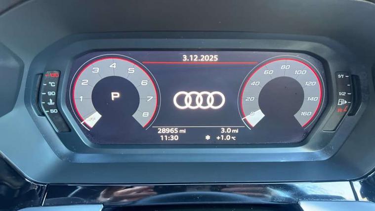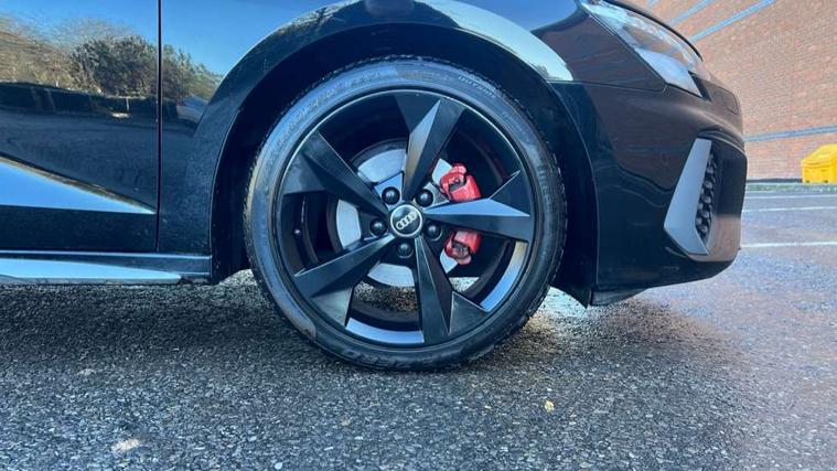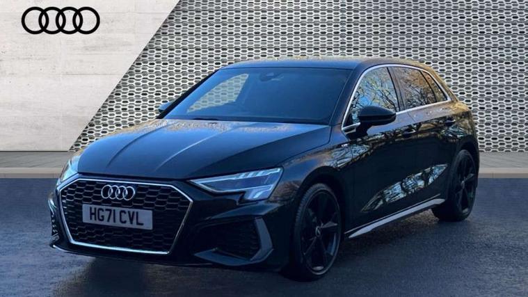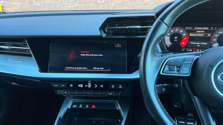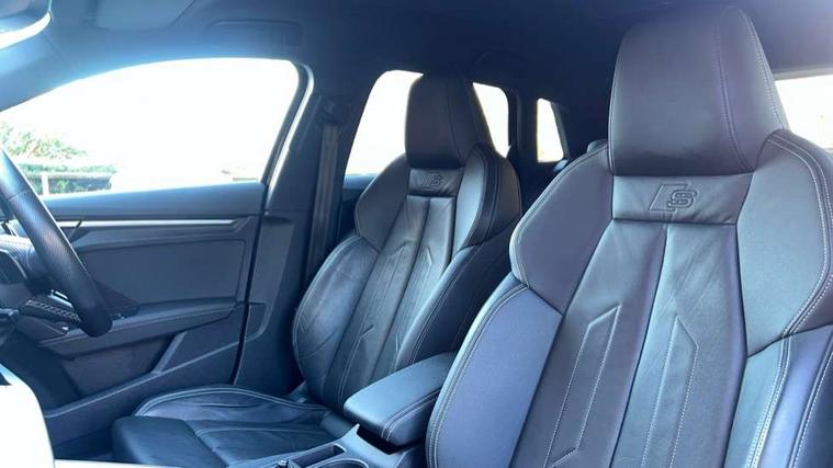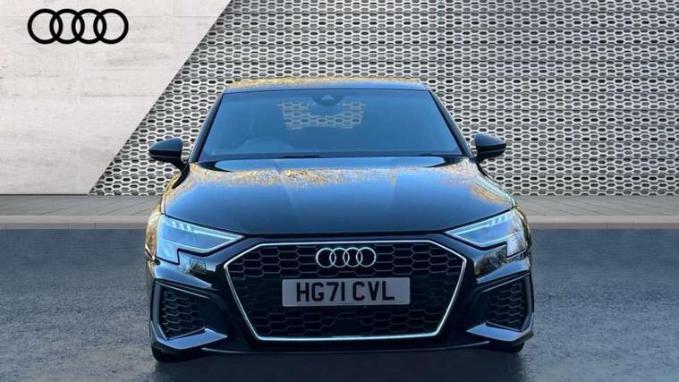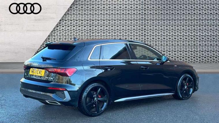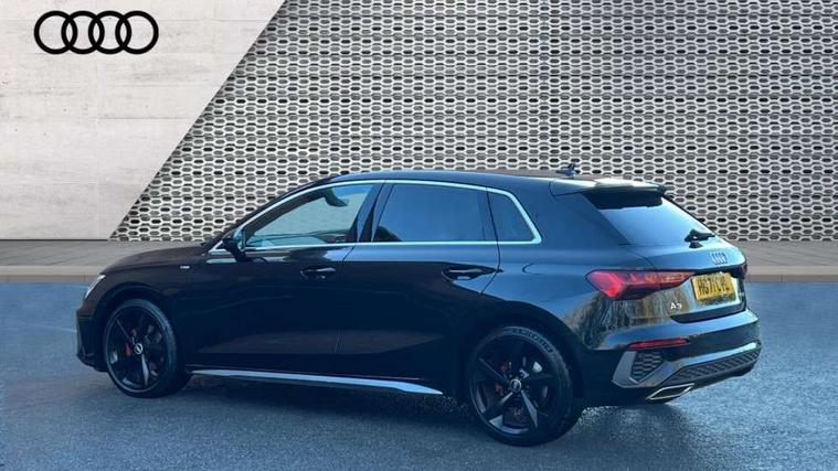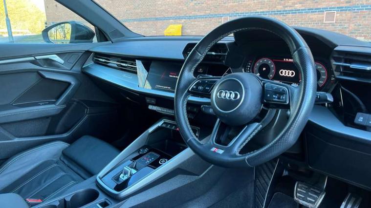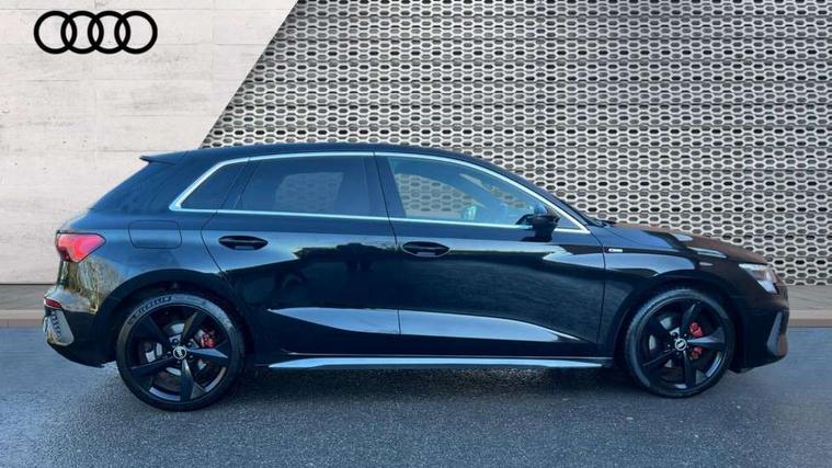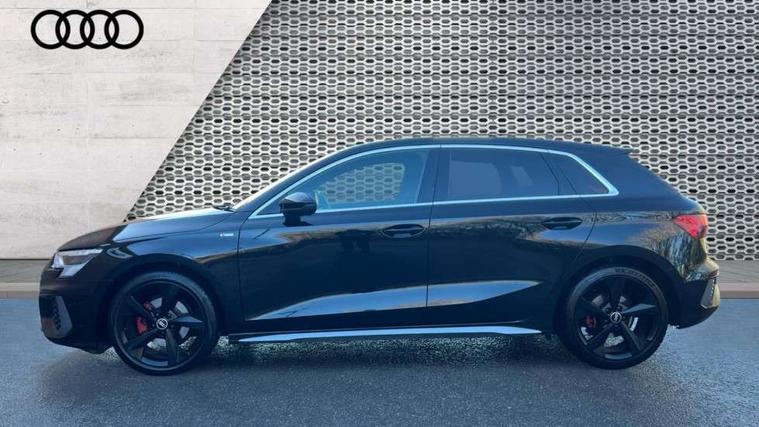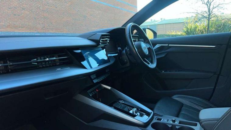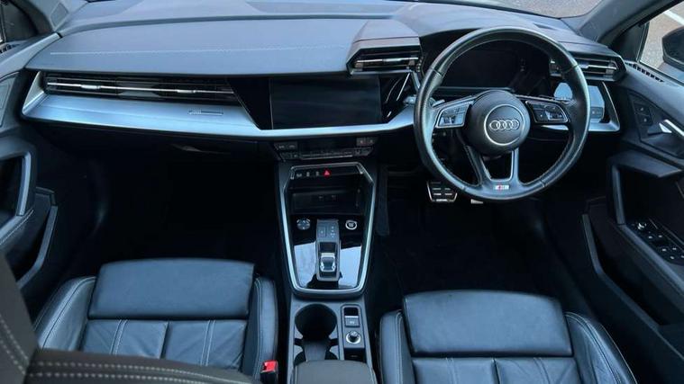 Audi connect emergency call and service, Audi drive select (Auto, Comfort, Dynamic, Efficiency and Individual), Audi smartphone interface, Audi Virtual Cockpit - 10.25" digital and colour instrument cluster, Automatic start/stop system with recuperation, Bluetooth interface, Collision avoidance assistant, Electromechanical power speed sensitive steering, Lane departure warning system, MMI Navigation Plus with high resolution 10.1" colour touch screen display, Service indicator, Trip computer, Voice control system with natural language interaction, 2xUSB-C connection with data and charging functions, 6 passive loudspeakers, DAB Digital radio, 3rd brake light, Acoustic glass windscreen, Aluminium window trim, Auto dimming frameless rear view mirror, Electrically adjustable/heated/folding/auto dimming door mirrors with integrated LED indications + kerb view function for passenger side, Front electric windows, Illuminated aluminium inserts front door sills with S logo, LED daytime running lights, LED headlights with LED rear lights and dynamic rear indicators, Light and rain sensors, Privacy glass - dark tinted rear window, rear door and side windows, Rear electric windows, Rear side air outlets in grained matt black, Rear wiper, S line bumpers, S roof spoiler, 12V socket and storage compartment in front centre console, 40/20/40 split folding rear seat bench with cupholder, Black cloth headlining, Dual zone electronic climate control, Front and rear centre armrest in leather, Front and rear headrests, Front/rear floor mats, Height and reach adjustable steering wheel, Interior lighting - glove compartment light and right hand side, Luggage compartment floor covering, Manual boot compartment lid, Manually adjustable front seats, Seat side bolsters, Stainless steel pedals and front footrest, Twin leather upholstery with front sports seats S embossed logo, Aluminium interior elements pack - A3 Sportback, S line styling pack - A3 Sportback, 3x3 point rear seat belts, Driver and front passenger airbag with passenger airbag deactivation, Electronic Stabilisation Control (ESC) including ABS, ASR and EDL, First aid kit with warning triangle and 2 safety vests, Front side airbags with head airbags and interaction airbag, Hill hold assist, Pre-sense front with pedestrian and cyclist detection, Seatbelt monitoring, Tyre pressure loss indicator, Anti theft alarm, Anti-theft wheel bolts, Electronically operated child lock, Immobiliser, Remote control central locking, Accent surfaces in the dashboard and centre console in platinum grey silk effect paint finish, Dark spectrum aluminium inlays,