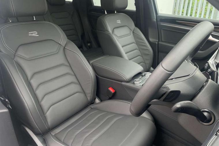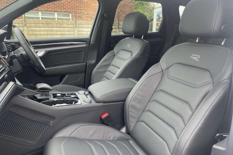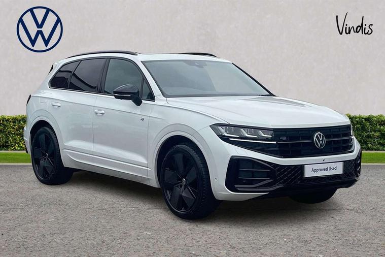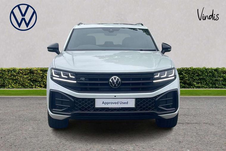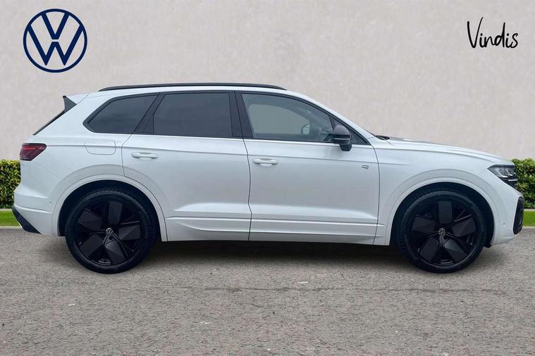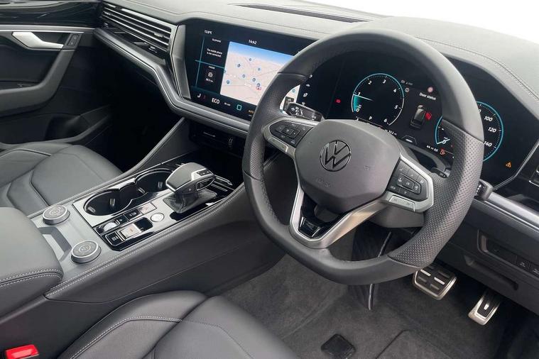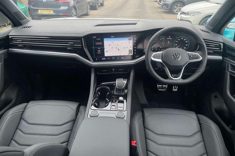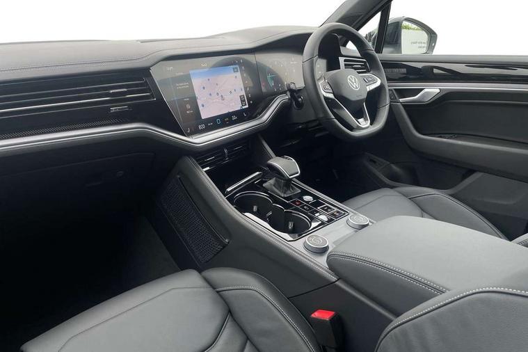 15" Screen Top infotainment system Premium (MIB3), Adaptive cruise control, Advanced driver attention and drowsiness monitor, Driver profile selection, Dynamic road sign display, E-Sim card for online connectivity, eCall emergency system, Innovision cockpit, Intelligent park assist, Mobile phone interface with inductive charging, Multi-colour Active Info display, Park Assist - Sensor controlled steering aid to assist parallel or bay parking, PAS, Warning signal and warning light for front and rear seatbelts not fastened, Wireless app connect, Adaptive chassis control, DAB Digital radio, Diversity antenna for AM/ FM reception, We Connect and We Connect Plus functionality, Automatic coming/leaving home lighting function, Automatic headlights, Black door mirrors, Black style comfort bumpers, Dynamic headlight range control with dynamic cornering light, Electric front tilt/slide panoramic sunroof and fixed rear sunroof, Electrically power adjustable, heated, folding, auto dimming, front passenger exterior door mirror lowering function, External USB type C socket and charging sockets, Gloss black roof rails, HD LED Matrix beam plus digital headlight projection with variable light distribution, Headlight washers, Highway light, LED 3rd brake light, LED daytime running lights, LED rear combination lamp with variable lighting functions and special styling, Poor weather light, Rain sensor, Rear exhaust tailpipe, Rear fog light with back up light on both sides, Rear light bar and illuminated logo, Rear side wing doors, Rear wiper, Stainless steel door sill protection, 12V socket in centre console, 3 rear headrests, 3 seat bench in 2nd row, 4 zone climate control, Airbag label on sun visor and B-pillar, Brushed stainless steel pedals, Double sun visors with illuminated vanity mirrors, Front + rear carpet mats, Front centre armrest, Leather wrapped multifunction sports steering wheel, heated, with touch control and shift paddles, Mechanical rear seat release, Power adjustable lumbar support in front, Power seats in front, right side with memory features and seat cushion depth adjustment, Rear seat backrest and split folding with center armrest, Single front passenger seat, Memory pack plus - Touareg, 3 point seatbelts, outer rear with ECE lable, ABS, Child locks on rear doors, Curtain airbags, Driver and front passenger safety-optimised head restraints, Driver/Front Passenger airbags, Extended pedestrian protection measures, Front assist, Front seat side impact airbags, Generative braking with start and stop system, Height adjustable 3 point front seatbelts with pre tensioners, Passenger airbag deactivate switch, Three 3 point rear seatbelts, Two tone horn, Tyre pressure loss indicator, Warning triangle and first aid kit, Alarm system with interior protection, Easy open and close sensor controlled luggage compartment opening and closing with remote unlocking, Keyless Access Keyless locking and starting system with SAFELOCK, Aluminium decorative inserts, Black decorative trims, Gloss black decorative inserts in centre console, Tool kit,