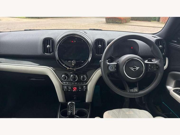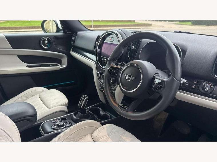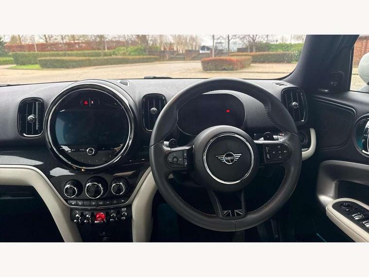 Active Guard incl speed limiting and lane departure functions with auto steering, and front collision warning with brake intervention, Automatic start/stop function with brake energy recuperation, Electro-mechanical speed dependant steering assistance, Instrument cluster, MINI Driving Modes - centre toggle switch to control driving setting (sport, mid and green), Mini E-call, MINI TeleServices, On board computer, Double Vanos system, Fully variable valve control, High precision injection, Performance Control, Sport automatic transmission with steering wheel paddles, FM tuner and DAB digital radio, 3rd brake light, Bonnet scoop, Chrome fuel filler cap, Day time driving lights, Dynamic brake lights, Electric windows, Heated rear window, Heated windscreen washer jets, LED fog lights, Metal door sill strips with Cooper S imprint, MINI yours exterior badge in C-Pillar, driver and passenger side, Model logo, Model logo on Tailgate, Rain sensor with auto headlights, Rear fog lights, Rear side wing doors, Rear window wiper, Side scuttle panel with integrated indicator, Split rear doors, Sun/heat protection glass, White indicator lenses, 12V socket in centre console, 3 seat bench in 2nd row, 360L luggage compartment capacity, 4 lashing eyes in luggage compartment, 40:20:40 split folding rear seats, Anthracite headlining with grab handles and clothes hooks, Chrome interior highlights, Colour line - Carbon black, Cupholders, English handbook, Front headrests, Glove compartment, Height and length steering column adjustment, Interior lighting with 12 basic colours selectable via toggle switch in roof, Isofix rear child seat preparation, Leather gearshift lever and handbrake gaiters, LED reading lights, vanity mirror lights, front foot well light and spotlight on front seats, MINI Yours fine walk nappa leather steering wheel with contrast stitching in silver and MINI Yours badge, Multifunction steering wheel, Rear headrests, Single front passenger seat, Storage compartments in doors, Sunvisors with vanity mirrors, Excitement pack - Countryman, Navigation plus pack - Countryman, 2 tone horn, 3 point seatbelts on all seats, 6 Airbags - front, side, head and seat belt tensioners, Anti-lock braking system (ABS), DSC - Dynamic Stability Control, Electronic handbrake, Front and rear disc brakes, Hill start assist, Manual rear child locks, Tyre pressure monitoring system, Alarm system with tilt sensor, monitoring doors, bonnet interior and tailgate, Auto drive away locking, Deadlocking function, Electronic vehicle immobiliser, Locking wheel bolts, Start/stop toggle with keyless go, Tool kit,