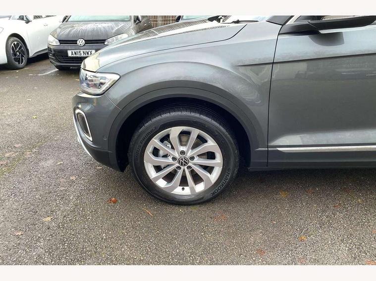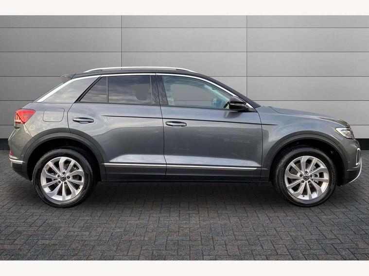 10.25" Digital cockpit pro, Bluetooth mobile phone interface, Driver alert system with fatigue detection, Driver tips and journey analysis, Dynamic road sign display, Emergency call service, Lane keeping system Lane Assist, Modified key software - reduce switch off time for key status change to Long no motion, Online services, Park assist including front and rear parking sensors, Power assisted speed sensitive steering, Service interval indicator, Tailgate/trunk lid release from outside, Think blue trainer driver tips and journey analysis, Warning sound and light for front seatbelts unfastened, Wireless app connect, Battery regeneration during braking, Front shock absorption, Rear shock absorption chassis with increased ride height, Start/stop function with battery regeneration, Diversity antenna for FM reception, Music playback - MP3, WMA and AAC files, Premium USB cable in choice of either Apple or Android smartphone compatibility, SD card slot, Simultaneous pairing of 2 compatible mobile devices, Title and cover art display, We Connect and We Connect Plus functionality, 3rd brake light, Auto dimming interior rear view mirror, Automatic hazard lights activation under emergency braking, Automatic headlight control with LED separate daytime running lights with coming/leaving home function, Body colour sports bumpers with silver metallic underbody fascia, Dynamic headlight range control with self adjusting whilst driving, Extended roof spoiler, Exterior mirrors aspherical on driver side, convex on front passenger side, External USB type C socket and charging sockets, Front windscreen wiper with intermittent wipe and 4 position delay, Heated rear window, LED rear combination lamps, LED rear number plate lights, LED tail lamp rear comination lamps, Light mode for poor weather, rain, fog or snow, Power windows with comfort operation and circuit breaker, Rain sensor, Rear exhaust tailpipe, Rear fog light on one side and reversing lights on both sides, Rear side wing doors, Rear wash/wipe with intermittent wipe setting, Remote electrically foldable door mirrors, puddle lights and reverse activated passenger's door mirror, 12V power socket in centre console, 3 rear head restraints, 3 seat bench in 2nd row, 4 load lashing points in luggage compartment, Air care climatronic air conditoning system with active combination filter and 2-zone temperature control, Chrome plated radiator grille inserts, air vent surrounds and light switch surrounds, Door and side trim panel with leatherette insert, Drawer under drivers seat, Front + rear carpet mats, Front centre armrest, Front comfort sports seats, Front cupholders x 2, Front footwell illumination, Instrument lighting, white adjustable panel illumination, Interior ambient lighting and surround lighting, Interior light delay, Isofix child seat preparation, Leather gearshift handle, LED interior light with switch off delay/dimmer and 2 front/rear LED reading lights, Load-through provision with cup holder when folded down ('Unsplit rear seat bench, split folding backrest, with centre armrest), Luggage compartment lighting, Non-folding front passenger seat backrest, Single front passenger seat, Storage compartment in left and right luggage area, Storage compartment in rear doors, Storage compartments in driver and front passenger doors, Sunvisors with illuminated vanity mirrors, Variable boot floor, height adjustable and removable, Driver assistance pack without proactive passenger protection - T-Roc, 3 point height adj front seatbelts + pretensioners, 3 point seatbelts in outer rear with ECE label, ABS, Child locks on rear doors, Driver and front passenger airbag with front passenger airbag deactivation, Driver and front passenger safety-optimised head restraints, Drivers seatbelt reminder, Electronic parking brake, Electronic Stability Control (ESC) inc EDL (Electronic Differential Lock) and ASR (Traction Control), Front and rear passengers curtain airbag system including front side airbags, Front assist with city emergency braking and pedestrian monitoring, Front disc brakes, Front seat side impact airbags, Predictive pedestrian protection, Rear disc brakes, Single tone horn, Tyre pressure loss indicator, Volkswagen roadside assistance, Anti-theft alarm system with interior monitoring, backup horn, and towing protection, Remote central locking with SAFELOCK, radio remote control with 2 remote control folding keys, Trims for alloy wheels,