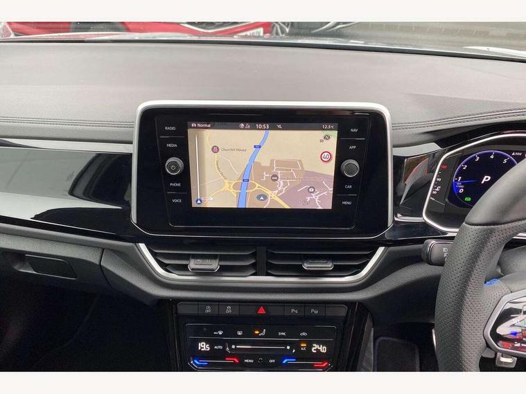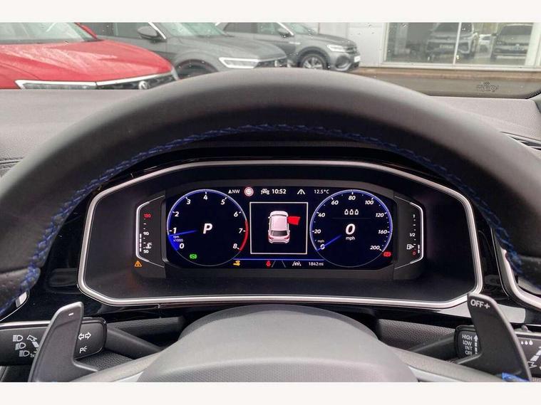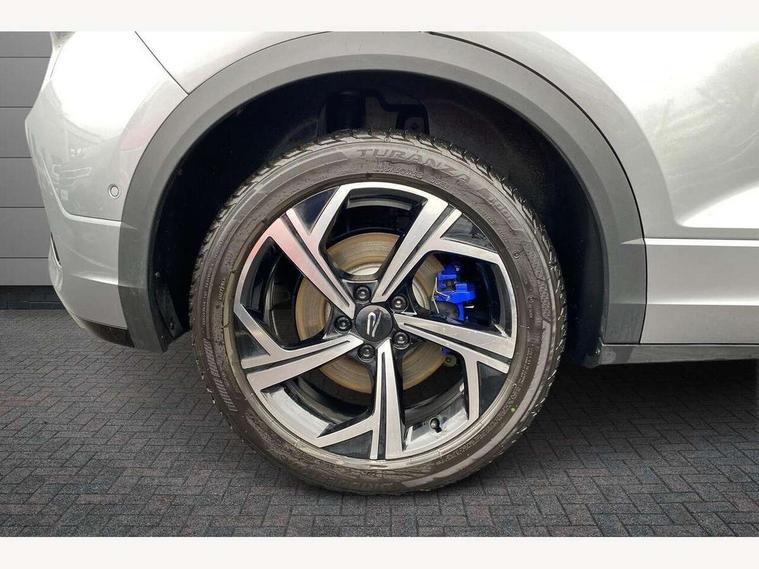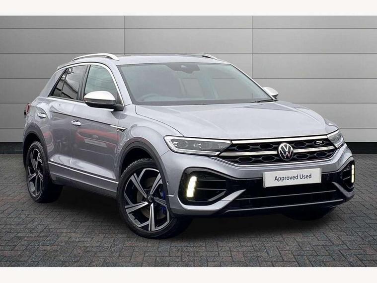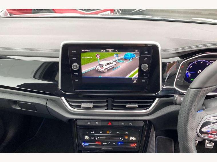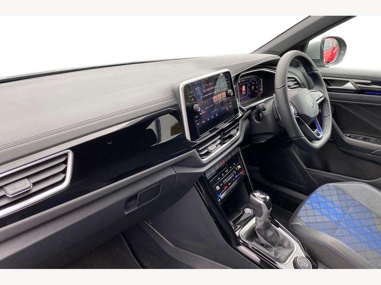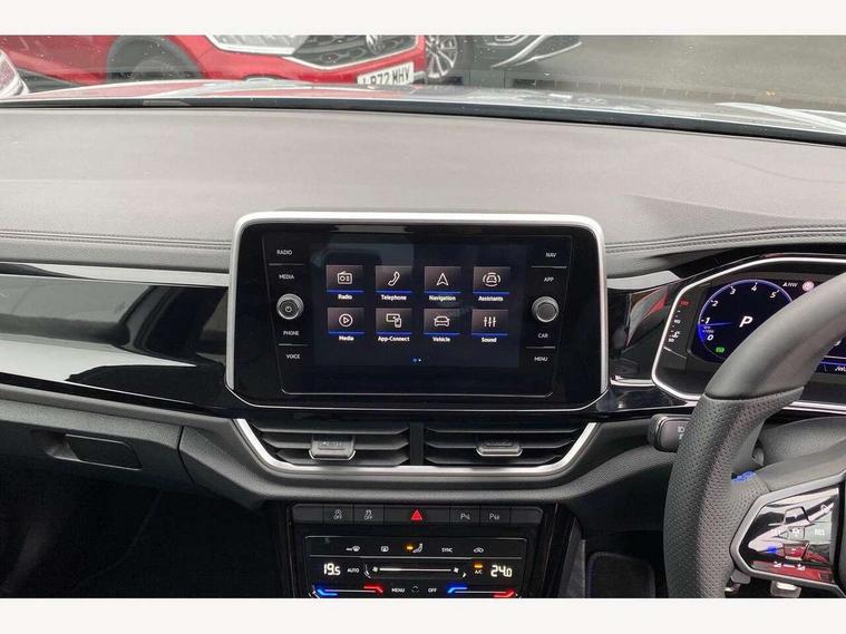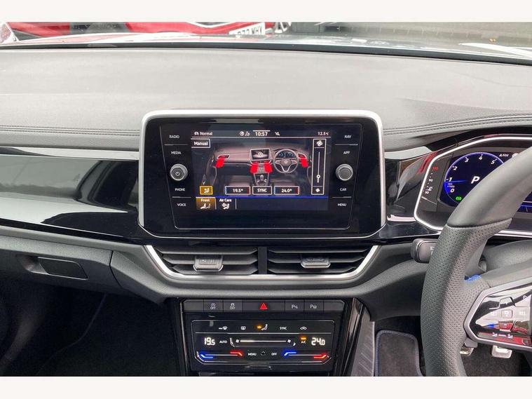 10.25" Digital cockpit pro, Advanced driver attention and drowsiness monitor, Emergency call service, Lane keeping system Lane Assist, Mobile phone interface, Modified key software - reduce switch off time for key status change to Long no motion, Online services, Park assist including front and rear parking sensors, Service interval indicator, Tailgate/trunk lid release from outside, Think blue trainer driver tips and journey analysis, Warning sound and light for front seatbelts unfastened, Wireless app connect, Battery regeneration during braking, Four wheel drive, Start/stop function with battery regeneration, DAB Digital radio, Diversity antenna for FM reception, Music playback - MP3, WMA and AAC files, Premium USB cable in choice of either Apple or Android smartphone compatibility, SD card slot, Simultaneous pairing of 2 compatible mobile devices, Title and cover art display, We Connect and We Connect Plus functionality, Auto dimming interior rear view mirror, Automatic hazard lights activation under emergency braking, Automatic headlight control with LED separate daytime running lights with coming/leaving home function, Body colour door handles, Electrically adjustable and heated door mirrors, Extended roof spoiler, Exterior mirror housings painted, Exterior mirrors aspherical on driver side, convex on front passenger side, External USB type C socket and charging sockets, Front windscreen wiper with intermittent wipe and 4 position delay, Heated rear window, LED 3rd brake light, LED rear combination lamps, LED rear number plate lights, Power windows with comfort operation and circuit breaker, Privacy glass for rear side windows and rear window, R-Line design body coloured bumpers, Rain sensor, Rear fog light on one side and reversing lights on both sides, Rear side wing doors, Rear wash/wipe with intermittent wipe setting, Remote electrically foldable door mirrors, puddle lights and reverse activated passenger's door mirror, 12V power socket in centre console, 3 rear head restraints, 3 seat bench in 2nd row, 4 load lashing points in luggage compartment, Air care climatronic air conditoning system with active combination filter and 2-zone temperature control, Ambient lighting - 10 colour (blue), Black roof lining, Chrome plated decorative trims, Chrome plated radiator grille inserts, air vent surrounds and light switch surrounds, Door and side trim panel with leatherette insert, Drawer under drivers seat, Front + rear carpet mats, Front centre armrest, Front cupholders x 2, Front footwell illumination, Front scuff plates with R logo in door apertures, Front seat back storage pockets, Front sport seats, Glove compartment door with light, Heated leather wrapped multi function sports steering wheel with tiptronic, Instrument lighting, white adjustable panel illumination, Interior light delay, Isofix child seat preparation, Leather gearshift handle, LED interior light with switch off delay/dimmer and 2 front/rear LED reading lights, Load-through provision with cup holder when folded down ('Unsplit rear seat bench, split folding backrest, with centre armrest), Luggage compartment lighting, Non-folding front passenger seat backrest, R-logo stitching in floor mats, Single front passenger seat, Stainless steel pedals, Storage compartment in left and right luggage area, Storage compartment in rear doors, Storage compartments in driver and front passenger doors, Sunvisors with illuminated vanity mirrors, Variable boot floor, height adjustable and removable, Driver assistance pack without proactive passenger protection - T-Roc, R styling pack - T-Roc, 3 point height adj front seatbelts + pretensioners, 3 point seatbelts in outer rear with ECE label, ABS, Child locks on rear doors, City emergency braking and pedestrian monitoring, Driver and front passenger airbag with front passenger airbag deactivation, Driver and front passenger safety-optimised head restraints, Drivers seatbelt reminder, Electronic parking brake, Electronic Stability Control (ESC) inc EDL (Electronic Differential Lock) and ASR (Traction Control), Front and rear passengers curtain airbag system including front side airbags, Hill descent control, Hill start assist, Predictive pedestrian protection, Rear disc brakes, Two tone horn, Tyre pressure loss indicator, Volkswagen roadside assistance, Trims for alloy wheels,