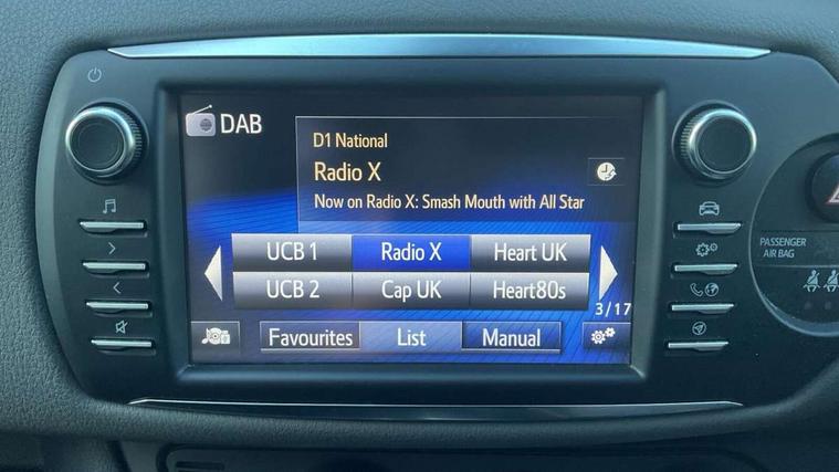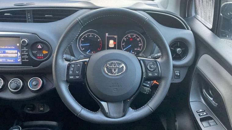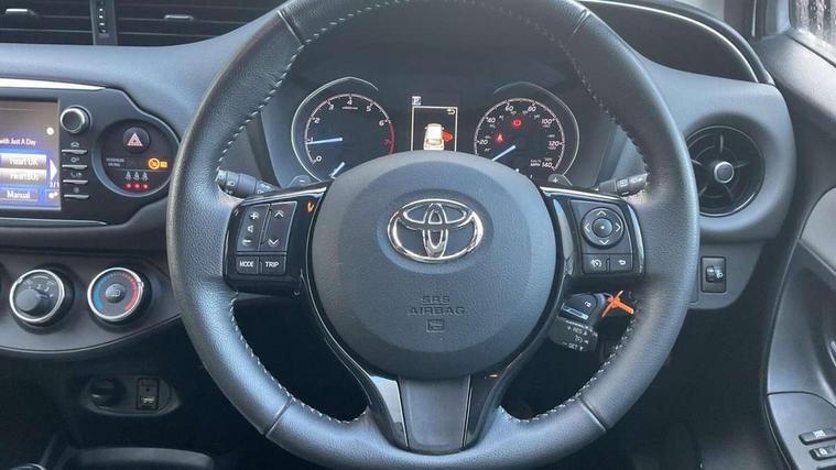 Bluetooth system, Cruise control, External temperature gauge, Fuel indicator with low level warning, Lane departure warning system, Lights on warning, Multi-information display, Power Steering, Rear parking sensor, Rear view camera, Road sign assist - RSA, TFT display screen, Touch 2 Go navigation system, Trip computer, 6 speakers, Auxiliary input socket, DAB Digital radio, Steering wheel mounted audio/telephone controls, Touch 2 touchscreen Radio with iPod connectivity, USB connection, 2 speed front wipers + intermittent wipe, Auto high beam, Auto up and down function on drivers window, Body colour bumpers, Body colour door handles, Body coloured door mirrors, Chrome fog light surround, Daytime running lights, Door mirror integrated indicators, Drivers window one touch up/down, Electric adjustable heated door mirrors, Electric front windows, Follow me home headlights, Front fog lights, Green tinted glass, Heated rear windscreen, Projector headlights, Rain sensitive windscreen wipers, Rear wiper, Turning signal integrated indicators in door mirrors, 3 spoke leather steering wheel, 60/40 split folding rear seat, Active headrests, Boot light, Cloth upholstery, Driver seat height adjust, Driver/passenger vanity mirrors with covers, Front cupholders x 2, Front map reading lights, Front seats with lumbar support, Glovebox, Height adjustable front head restraints, Height adjustable rear seat head restraints (x3), Isofix system on outer rear seats, Leather gear knob, Manual air conditioning, Rear cupholder, Removable rear parcel shelf, Sliding front seats, Tilt/telescopic steering column, 3 point seatbelts on all rear seats, ABS+EBD+Brake assist, Collision mitigation braking system, Curtain airbags, Driver and passenger airbags, Drivers knee airbag, Emergency brake light system (EBS), Front passenger airbag on/off switch, Front seatbelt reminder, Front side airbags, Height adjustable front seatbelts with pre-tensioners and load limiters, Hill start assist control (HAC), Passenger airbag deactivate switch, Rear child proof door locks, Rear seat belt reminder, Road sign information display, Seatbelt warning lamp and buzzer, Toyota safety sense including Road sign assist, Pre collision system, auto high beam and lane departure alert), Tyre pressure monitoring system, Vehicle stability control VSC + traction control, Engine immobiliser, Remote central locking, Instrument panel in grey, Space saver spare wheel,
