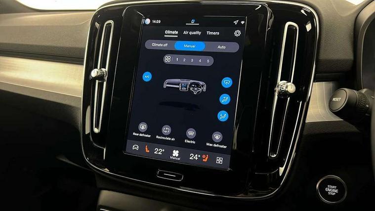 12.3" Progressive Driver Display, 9" centre console portrait touch screen, Adjustable steering wheel force, Android auto (Wired), Apple carplay (wired), Bluetooth handsfree system, Driver alert control, Driver assistance (pilot assist and adaptive cruise control), Driver awareness - Blind spot information system with steer assist, cross traffic alert with autobrake and rear collision warning and mitigation, E-call, Front and rear parking sensors, Front park assist, Google automotive services - Enabled entertainment apps, navigation with google maps, voice recognition with google assistant, Hands free power tailgate, Intelligent speed assistance, Lane keeping aid, Oncoming Lane Mitigation, Speed sensitive steering, Volvo cars services with app - Driving journal, emergency and breakdown call, engine remote start, remote door locking/unlocking and vehicle dashboard, Wireless/Inductive Mobile Phone Charging, Automatic transmission with start/stop and manual change functions, Dynamic chassis, DAB Digital radio, Steering wheel mounted remote controls, Adaptive brake lights with high level LED brake lights, Auto dimming feature for exterior door mirrors, Auto dimming interior mirror, Auto folding and heated power door mirrors, Automatic headlamp levelling, Automatic LED Headlights + Active high beam incorporating daytime running lights, Front aluminium tread plates, Front and rear electric windows, High gloss black front and rear skid plate, High gloss black front bumper deco, High gloss black mesh front grille with high gloss black surround, High gloss black window trim, Home safe and approach lighting, Integrated roof rails in high gloss black, LED front fog lights, Puddle lights, Rain sensor with automatic windscreen wiper activation, Rear side wing doors, Rear wiper, Roof antenna, Roof spoiler, Visible VIN plate, 12V socket in front tunnel console and luggage compartment, 2-Zone electronic climate control with CleanZone air quality system and pollen filter, 3 seat bench in 2nd row, 3 Spoke tailored steering wheel with chrome trim, 60/40 versatile split folding rear seat, Centre console cupholders and storage, Charcoal carpet and floor mats, Charcoal headlining, Connect suede textile/microtech upholstery, Flexible load floor and grocery bag holder, Front headrests, Front seat cushion extensions, Glovebox bag hook, Heated front seats, Height adjustable passenger seat, Height/reach adjustable steering column, High gloss centre tunnel deco, High level illumination - Front door pocket, front side step (under door), tailgate, instrument panel, front door inlay, rear courtesy&reading lights, Integrated waste bin, Isofix attachments on outer rear seats, Load cover, Load protection net, Mid level illumination - Front footwell, luggage & glovebox compartment, front cabin courtesy & reading lights, illuminated vanity mirrors+ticket holder, Multi directional lumbar support for driver and passenger seat, Power driver seat with memory + exterior mirrors memory, Rear armrest with cupholders, Rear headrests, Single front passenger seat, Underfloor luggage compartment storage, Climate pack without heated front seats - XC40, 3x3 point rear seatbelts, City safety with steering support with Pedestrian + cyclist + front collision warning with full auto brake and rear auto brake, Driver and passenger airbags, Drivers knee airbag, Electronic parking brake with auto hold, First aid kit, Front and outer rear seatbelt reminder and pretensioners, Front seats SIPS airbags, Hill descent control - Off-road drive mode, Hill start assist, IC (Inflatable Curtains) - Full Length, Passenger airbag cut-off device, Power child locks on rear doors, Road sign information display, Run off Road Protection, SIPS (Side Impact Protection System), Slippery road and hazard light alert, Stability and Traction Control with Spin control, Engine Drag Control and Corner Traction Control, Tyre pressure monitoring system, Vehicle deceleration control with Anti-lock Brake System, Electronic Brake Distribution and Emergency Brake Assist, Warning triangle, WHIPS whiplash protection system - front, 2 x Key integrated remote control central locking including with deadlocking system and auto open/close windows, Anti-theft alarm including immobiliser/volume sensor + level sensor, Keyless drive includes keyless entry and keyless start, Locking wheel nuts,