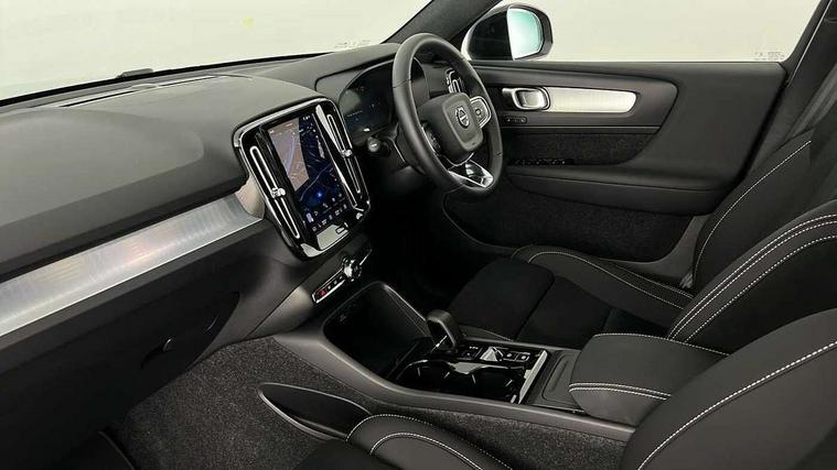 12.3" Progressive Driver Display, 9" centre console portrait touch screen, Adjustable steering wheel force, Android auto (Wired), Apple carplay (wired), Bluetooth handsfree system, Driver alert control, Driver assistance (pilot assist and adaptive cruise control), Driver awareness - Blind spot information system with steer assist, cross traffic alert with autobrake and rear collision warning and mitigation, E-call, Front and rear parking sensors, Front park assist, Google automotive services - Enabled entertainment apps, navigation with google maps, voice recognition with google assistant, Hands free power tailgate, Intelligent speed assistance, Lane keeping aid, Oncoming Lane Mitigation, Speed sensitive steering, Volvo cars services with app - Driving journal, emergency and breakdown call, engine remote start, remote door locking/unlocking and vehicle dashboard, Wireless/Inductive Mobile Phone Charging, Automatic transmission with start/stop and manual change functions, Dynamic chassis, DAB Digital radio, Steering wheel mounted remote controls, Adaptive brake lights with high level LED brake lights, Auto dimming feature for exterior door mirrors, Auto dimming interior mirror, Auto folding and heated power door mirrors, Automatic headlamp levelling, Automatic LED Headlights + Active high beam incorporating daytime running lights, Front aluminium tread plates, Front and rear electric windows, High gloss black front and rear skid plate, High gloss black front bumper deco, High gloss black mesh front grille with high gloss black surround, High gloss black window trim, Home safe and approach lighting, Integrated roof rails in high gloss black, LED front fog lights, Puddle lights, Rain sensor with automatic windscreen wiper activation, Rear side wing doors, Rear wiper, Roof antenna, Roof spoiler, Visible VIN plate, 12V socket in front tunnel console and luggage compartment, 2-Zone electronic climate control with CleanZone air quality system and pollen filter, 3 seat bench in 2nd row, 3 Spoke tailored steering wheel with chrome trim, 60/40 versatile split folding rear seat, Centre console cupholders and storage, Charcoal carpet and floor mats, Charcoal headlining, Connect suede textile/microtech upholstery, Flexible load floor and grocery bag holder, Front headrests, Front seat cushion extensions, Glovebox bag hook, Heated front seats, Height adjustable passenger seat, Height/reach adjustable steering column, High gloss centre tunnel deco, High level illumination - Front door pocket, front side step (under door), tailgate, instrument panel, front door inlay, rear courtesy&reading lights, Integrated waste bin, Isofix attachments on outer rear seats, Load cover, Load protection net, Mid level illumination - Front footwell, luggage & glovebox compartment, front cabin courtesy & reading lights, illuminated vanity mirrors+ticket holder, Multi directional lumbar support for driver and passenger seat, Power driver seat with memory + exterior mirrors memory, Rear armrest with cupholders, Rear headrests, Single front passenger seat, Underfloor luggage compartment storage, Climate pack without heated front seats - XC40, 3x3 point rear seatbelts, City safety with steering support with Pedestrian + cyclist + front collision warning with full auto brake and rear auto brake, Driver and passenger airbags, Drivers knee airbag, Electronic parking brake with auto hold, First aid kit, Front and outer rear seatbelt reminder and pretensioners, Front seats SIPS airbags, Hill descent control - Off-road drive mode, Hill start assist, IC (Inflatable Curtains) - Full Length, Passenger airbag cut-off device, Power child locks on rear doors, Road sign information display, Run off Road Protection, SIPS (Side Impact Protection System), Slippery road and hazard light alert, Stability and Traction Control with Spin control, Engine Drag Control and Corner Traction Control, Tyre pressure monitoring system, Vehicle deceleration control with Anti-lock Brake System, Electronic Brake Distribution and Emergency Brake Assist, Warning triangle, WHIPS whiplash protection system - front, 2 x Key integrated remote control central locking including with deadlocking system and auto open/close windows, Anti-theft alarm including immobiliser/volume sensor + level sensor, Keyless drive includes keyless entry and keyless start, Locking wheel nuts,