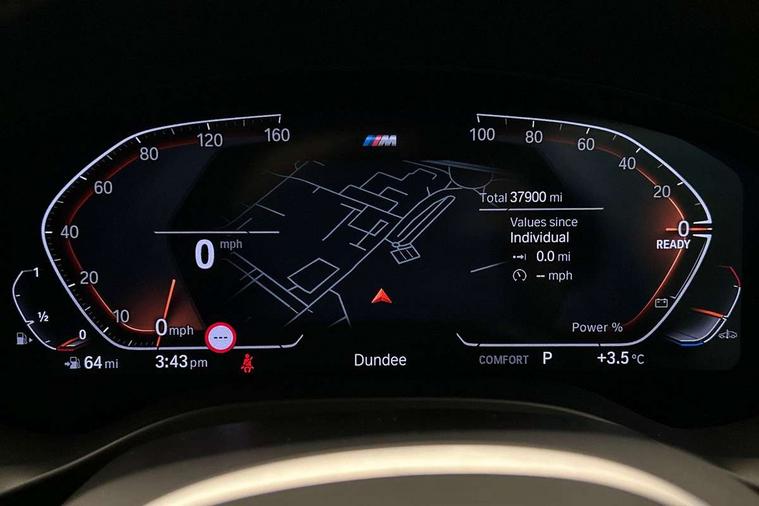 Active Guard, Attentiveness assist, BMW Live Cockpit Professional nav system including 12.3" instrument display + 12.3 high resolution control display, BMW Online services, BMW Teleservices, Brake pad wear indicator in front and rear, Check Control warning system for monitoring of lights and door/luggage compartment open warning, Condition based service - BMW service history, electronic service booklet, integrated owner's handbook, Connected drive services, Cruise control with brake function + speed limiter, Electric boot lid, Front/rear Parking distance control, iDrive Controller with 8 favourite buttons, Instrument cluster with speedometer with mph readout, tachometer, fuel gauge and oil temperature gauge, Lights on warning by audio warning signal when ignition is switched off, Oil sensor for level and grade, warning by check control system, On board computer - average speed+fuel consumption, service interval, clock/date, odometer/trip meter, outside temperature display and ice warning, Optimum shift indicator, Personal Profile - automatic lock when driving away selectable, Run flat indicator, Stop/start system, Variable sports power steering with drive performance control Sport+ mode, Automatic transmission with gearshift paddles, Incorrect fuelling protection, M sport suspension, Multi-link rear suspension, Performance Control, BMW professional radio/CD/MP3, DAB tuner, Acoustic glazing, Automatic windscreen wipers and automatic headlight, Black finish on B pillars, Body colour door handles, Body colour electric adjust heated aspherical door mirrors, Body colour roof mouldings, Body coloured bumpers, Direction indicator, side repeaters, integrated in exterior mirrors, Dynamic brake lights, Exhaust tailpipes - dual, round, split left and right with chrome finisher, Fingertip control / anti-trap function on electric window, Folding wing mirrors with auto dimming, Follow me home headlights, Front and rear bumper system with replaceable deformation elements, Front and rear electric windows, Gloss chrome tailpipes finishers, Green tinted heat insulating glass, Heated windscreen washer jets, High beam assistant, High gloss black shadow line roof rails, High gloss shadowline exterior trim in decorative moulding side frame/recess cover/guide rail/B, C pillars/mirror frame and triangle with mirror base, High level 3rd brake light incorporating LED Technology, Interior rear view electrochromatic mirror with automatic anti dazzle function, LED tail lights, Lightweight engineering, M aerodynamic bodystyling, M Sport entry door sill strips, Model designation, Rear side wing doors, Rear wing door, Rear wiper, Shark fin antenna, Side exterior M designation badges, Visible VIN plate, Welcome lighting, Windscreen wipers with adjustable interval, 12V power socket in front centre console, 3 rear headrests, 3 seat bench in 2nd row, 3 zone automatic air conditioning, 4 lashing points to secure luggage, 40:20:40 split folding rear seat with loading system, Ambient lighting, Anthracite headlining, Automatic interior light when door is opened/ignition switched off or via remote key, Driver seat backrest width adjustment, Floor mats in velour, Foldable storage floor with compartment, Four grab handles integrated in roof lining, Front and rear bottle holders integrated into door trim storage compartments, Front and rear side armrests integrated into door trim, Front centre armrest with storage compartment, Front footwell lights, Front head restraints, Front passenger seat, Front sports seats, Front/rear courtesy lights with soft on/off dimming, Front/rear reading lights, Heated front seats, Isofix rear child seat preparation, Leather gear knob, Luggage area underfloor compartment, Luggage compartment lighting, M sport leather steering wheel, Multifunction steering wheel, Parcel shelf removeable and storable under boot floor, Reach and rake adjustable steering column, Rear centre armrest with 2 cupholders, Removable / retractable luggage cover, Slope adjustable rear seats, Storage compartment in rear centre console and front/rear door trims, Sun visors with vanity mirrors and ticket pocket, Toolkit located in luggage compartment, Two front cupholders with removable oddments tray/lid, Vernasca leather upholstery, Connected pro pack - X3, Driving assistant pack - X3, ADB - Automatic Differential Brake, Anti-lock braking system (ABS) with brake assist, Automatic Stability Control (ASC), Battery safety cut-off, BMW emergency call, Brake drying, Brake energy regeneration, Braking pre-tensioning, Child locks on rear doors, Cornering brake control (CBC), Crash Sensor - activation of central locking release, hazard warning light and interior lighting, Deactivation of fuel pump in the event of a crash, Driver and front passenger front and side airbags with passenger deactivation and ITS front and rear head airbags, DSC+, Dynamic brake control, Dynamic Traction Control - DTC, Electromechanical parking brake, Hill descent control, Hill start assist, Seatbelt security check for front seats, Side impact protection, Three point seatbelts to all seats with front and outer rear pyrotechnic belt tensioners and seat belt force limiters, Two tone horn, Tyre pressure sensor, Ventilated front and rear disc brakes, Warning triangle and first aid kit, Central locking switch for all doors, fuel filler cap and luggage compartment, Electronic engine immobiliser, Locking wheel nuts, Remote control including two integrated key - one button for open/close all lockable content, windows and separate button for open luggage compartment, Remote control Thatcham category 1 alarm, Start/stop button with Comfort Go keyless engine start and auto Start/stop deactivation button, Low rolling resistance tyres,