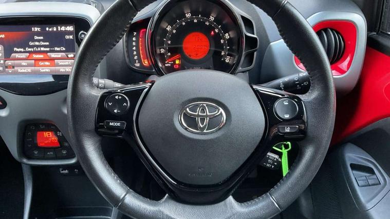 Air vent surround in body colour, 15" 10 spoke black machined alloy wheels, Space saver spare wheel, Engine immobiliser, Lockable fuel cap, Remote central locking, 4 speakers, Auxiliary input socket, DAB Digital radio, iPod connection, MP3 connection, Multimedia System, Stereo radio, USB connection, ABS, Collision mitigation braking system, Emergency brake assist, ESP, Force limiting rear seatbelts, Front seatbelt reminder, Hill start assist, Passenger front airbag cut off switch, Rear child proof door locks, Rear seatbelt reminder, Seatbelts with pre-tensioners and load limiters, Supplement restraints system (SRS) - 6 airbags, Tyre pressure warning, 2 speed wipers/variable intermittent/mist function, Auto headlight levelling, Automatic headlights, Body colour bumpers, Body colour door handles, Carbon rear diffuser, Decal kit - Front and rear bumper, side sills and matching mirror covers, Electric adjustable door mirrors, Electric front windows, Electric headlamp adjustment, Front fog lights, Green tinted glass, Heated door mirrors, Heated rear windscreen, LED daytime running lights, LED rear lights, Manually dimming rear view mirror, Projector halogen headlights with LED tracer line, Rear privacy glass, Rear spoiler, Rear window demister, Rear wiper, Red roof decal, Roof mounted aerial, 12V Accessory socket, 3 spoke leather steering wheel with audio, telephone and LDA control, 50/50 split folding rear seat, Air recirculation system, Auto air conditioning, Black roof lining, Body colour instrument panel, Centre console storage, Chrome insert to gearknob, Chrome interior door handles, Clean air filter, Cloth upholstery, Driver and passenger sunvisors, Driver and passenger vanity mirrors with sunvisors, Driver's seat height adjuster, Driver/passenger seat recline/slide adjust, Front and rear door pockets, Front cupholder, Front map reading lights, Glovebox, Height adjustable front head restraints, Isofix system on outer rear seats, Leather gear shift, Manual tilt steering wheel, Pollen filter, Rear cupholders, Rear headrests, Steering wheel mounted radio/phone controls, Storage bins on all doors, Storage pockets in centre console, Tonneau cover, 7" touch screen, Analogue tachometer, Bluetooth system, DCM - Data Communication modules, Digital clock, Electric power steering, Fuel indicator with low level warning, Lane departure warning system, Lights on warning, Reversing camera, Smartphone integration powered by pioneer compatible with Apple CarPlay and Android Auto, Speed limiter, Start and stop, Vehicle Stability Control (VSC),