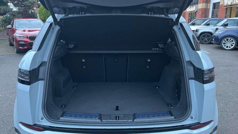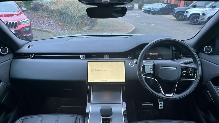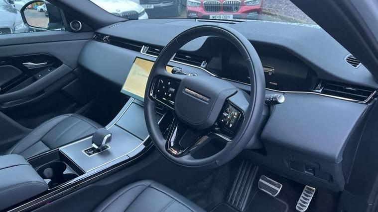 11.4" touch screen, Adaptive cruise control, Android Auto, Apple car play, Blind spot assist, Bluetooth connectivity, Brake pad wear indicator warning light, Driver condition monitor, eCall emergency system, Eco mode, Electronic power assisted steering (EPAS), Front and rear parking aid, InControl remote, Interactive driver display, Land Rover InControl apps, Lane keep assist, Pivi pro connected includes diamond pivi variant, smart settings, connected navigation pro, nuance speech licence, Powered tailgate/boot lid, Rear collision monitor, Rear traffic monitor, Traffic sign recognition with adaptive speed limiter, Voice control system, Wireless device charging, All terrain progress control, Diesel exhaust fluid (DEF) large tank, Efficient Driveline, Large fuel tank, Passive suspension, Terrain Response 2, Digital Audio Broadcast radio-DAB, Steering wheel mounted controls, Acoustic laminated windscreen, Auto headlights, Automatic headlight levelling, Electric windows with one touch open/close and anti trap, Flush deployable exterior door handles, Front and rear recovery eyes, Heated rear window with timer, Heated washer jets, Heated windscreen, Pixel LED headlights with signature DRL and LED tail Lights, Power fold, auto-dimming, heated door mirrors with approach lights and auto dimming driver side, Rain sensing windscreen wipers, Rear animated directional indicators, Rear fog lights, Rear side wing doors, Rear wiper, Side repeater indicators in mirror, Tailgate spoiler, Third brake light, Winter wiper park position, 14 way driver memory electric front seats with 2 way manual headrests + 4 way lumbar support, bolsters, 40:20:40 split folding rear seats with centre headrest and armrest, Ambient interior lighting, Bright metal pedals, Carpet mats, Chrome tread plates with range rover branding Includes stainless steel loadspace scuff plate with etched graphic, Customer configurable single point entry, Electrically adjustable steering column with memory function and easy entry/exit, Front and rear cupholders, Heated steering wheel, Isofix system on outer rear seats, Overhead lighting console, Overhead stowage for sunglasses, Passive front head restraints, Rear air vents, Rear head restraints, Satin chrome gearshift paddles, Single passenger seat, Sunvisors with illuminated vanity mirrors, Twin sliding front centre armrest, Online pack with data plan - Evoque, Power socket pack 2 - Evoque, 3 rear 3 point seatbelts, Anti-lock braking system (ABS), Brake hold function, Customer configurable autolock, DSC - Dynamic Stability Control, Electronic brake force distribution, Electronic parking brake, Electronic traction control, Emergency braking, Front and rear seatbelt reminder, Hill descent control, Hill launch assist, Low traction launch, Occupant protection assist, Passenger seat occupant detector, Power operated child locks, Roll stability control, Six airbags - Driver and passenger airbags/driver knee airbag/front side airbag and curtain airbags, Torque vectoring brake, Tyre pressure monitoring system, Alarm, Immobiliser, Intrusion sensor, Keyless entry, Locking wheel nuts,