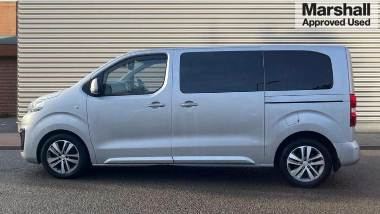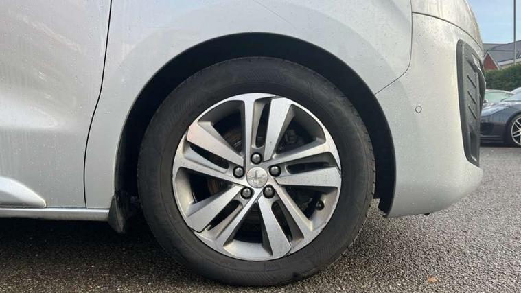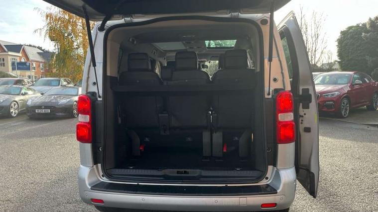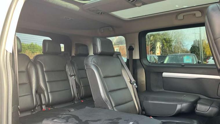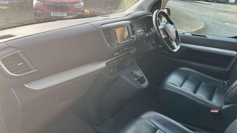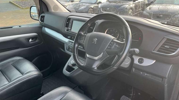 3D connected navigation + voice control + Peugeot connect SOS and assistance, Attention assist, Audible lights on warning, Bluetooth + USB, Head up Display, Mirror screen with mirror link and car play, PAS, Visio park assist 180 with front and rear sensors, blind spot monitor and reversing camera, 7" touch screen with DAB radio, Bluetooth audio streaming, Steering wheel mounted controls, Acoustic windscreen, Automatic front windscreen wipers, Automatic headlights, Body colour bumpers/side rubbing strips, Body colour door handles with chrome trim, Body colour door mirrors, Cornering front fog lights, Dark tinted rear windows, Electric folding and heated door mirrors, Electrochrome rear view mirror, LED daytime running lights, One touch electric front windows, Panoramic sunroof, Rear wiper, Sunblind for sunroof, Twin sliding side doors, Xenon headlights, 1/3 to 2/3 split folding rear seats, 12V accessory sockets - front and rear, Additional Webasto heating, Aircraft type trays in front seat backrests, Child observation mirror, Driver/passenger armrests, Dual zone automatic air conditioning, Front cupholders x 2, Front head restraints, Full leather trim, Glovebox, Heated front seats, Height/reach adjust steering wheel, Height/tilt adjustable driver's seat, Height/tilt adjustable passenger seat, Integrated sunblind for rear side windows, Isofix attachments on outer rear seats, Leather steering wheel, Massage function for front seats, Rear air conditioning, Rear head restraints, Refrigerated and illuminated storage in dashboard, Alarm pack - Traveller, Easy entry pack - Traveller, Hi-Fi Pack - Traveller, 3 point seatbelts on all seats, ABS/EBD, Automatic parking brake with hill start assist, Curtain airbags, Door open warning, Driver and passenger airbags, Driver/front passenger head+thorax airbag, ESP, Seatbelt warning, Side airbags, Tyre pressure sensor, Immobiliser, Remote central locking + deadlocks, Full size steel spare wheel,