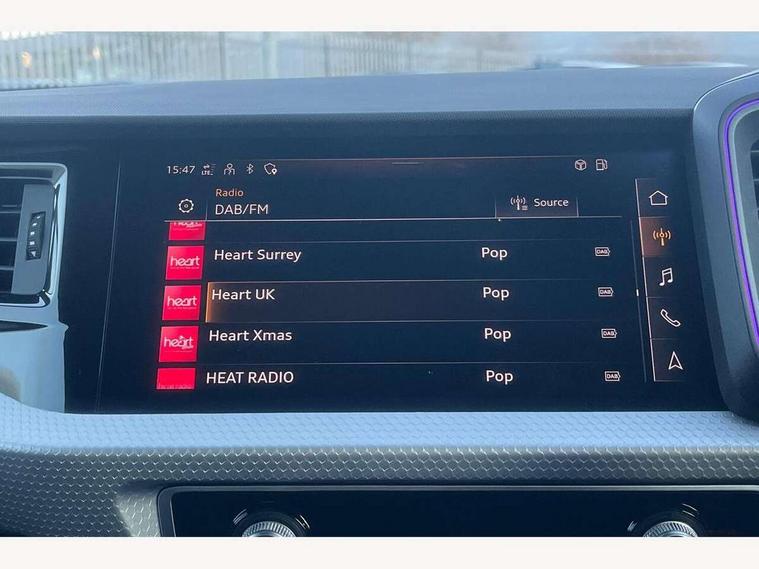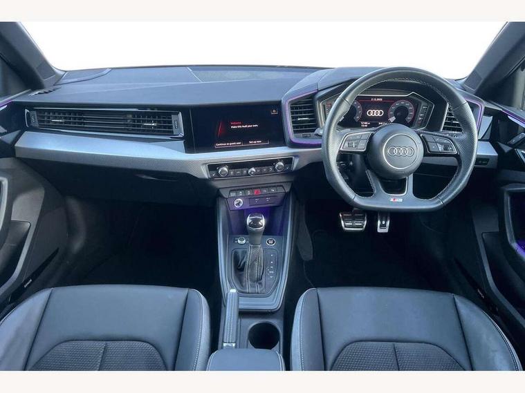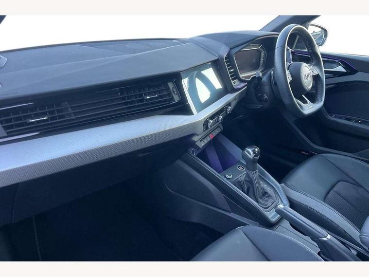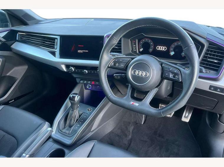 Adaptive speed assist, Audi connect safety emergency and service including E-call, Audi drive select - power steering assistance + engine + gear shift 3 preset modes (auto, dynamic, efficiency and an Individual mode), Automatic start/stop system, Bluetooth interface, Cruise control, Driver's information system, Electromechanical power steering, Emergency services call system, Lane departure warning system, Service interval indicator, Speed limiter, Voice control system, Washer fluid level indicator, Sports suspension, 1 x SDXC card reader, 2 x USB type C connection points, DAB Digital radio, Auto dimming rear view mirror, Black Audi rings and black badging (with model name in black, no engine badging), Body coloured door mirrors, Door sill trims with aluminium inlays and logo, Electric front and rear windows, Electrically adjustable, heated, folding door mirrors with integrated LED side indicator, Front side air inlets in grained matt black and C frame in titanium black, Front wing badges, Heat insulating glass windscreen and side windows, Heated rear windscreen, High level LED brake light, LED headlights with LED rear lights + dynamic rear indicators + headlight adjustment and high beam, turning light + LED daytime running lights, Radiator grille and rear diffuser in matt titanium black, Radiator protective grille frame in matt aluminium silver, Rain and light sensors, Rear fog lights, Rear side wing doors, Rear wing door, Rear wiper, Side front spoiler lips in grained matt black, 12V socket in centre console with two cup holders, 3 rear seats with headrests, 3 seat bench in 2nd row, 3 spoke flat bottomed multi-function plus leather steering wheel with S badging, grips in preforated leather, contrast stitching and paddle shift, 40:60 Split folding rear seat or folded fully, Black cloth headlining, Driver and passenger seat with manual height adjust with forward and backwards adjustment, Frequency alcantara/leatherette upholstery and S embossed logo + front sports seats, Front and rear black floor mats with contrast stitching in fine silver, Front head restraints, Front passenger seat, Height and reach adjustable steering wheel, ISOFIX child seat mounting for front passenger and outer rear seats including top tether attachment point of outer rear seats, Leather gear knob with aluminium trim, Luggage compartment light with front and rear reading lights, Manually adjustable lumbar support in front seats, Stainless steel pedals, Black exterior styling pack - A1 Sportback Vorsprung, Comfort and sound pack - A1 Sportback, Luggage compartment pack - A1, Multicoloured LED Ambient lighting pack - A1 Sportback, Plus pack - A1 Sportback, Technology pack - A1 Sportback, 3x3 point rear seatbelts, Audi pre-sense front with pedestrain and cyclist recognition, Brake assist function, Driver and front passenger airbag with front side and head airbags, Electronic Stability Control including ABS, EBD, ASR and EDL, Front passenger airbag deactivation switch, Hill hold assist, Manual rear child locks, Seatbelt height adjustment for front seats, Seatbelt monitoring, Tyre pressure warning light, Warning triangle and first aid kit, Advanced key, Anti theft alarm, Anti theft wheel bolts and loose wheel warning, Immobiliser, Remote central locking with 2 foldaway keys, Aluminium trim for control switches, air vents and digital instrument cluster, Silver grey inlays polygon structure in diamond paint finish, Structured grey accent areas including air vents, door handle recesses and centre console in quartz paint finish, 18" 5 double arm design alloy wheels in matt titanium look with diamond cut finish,