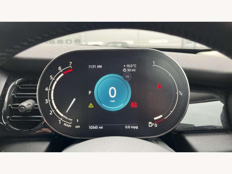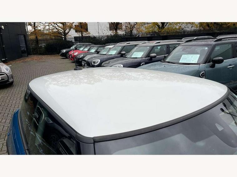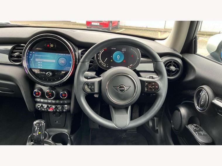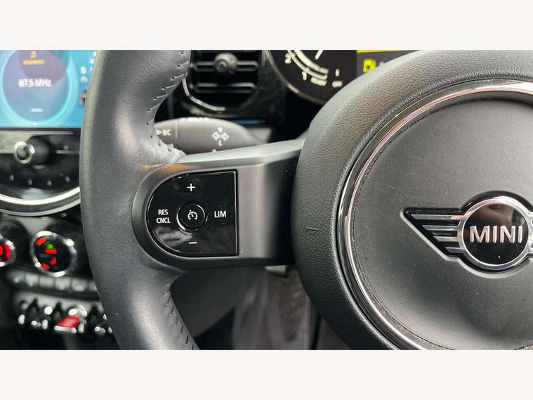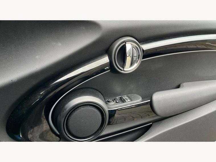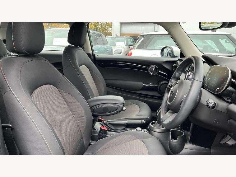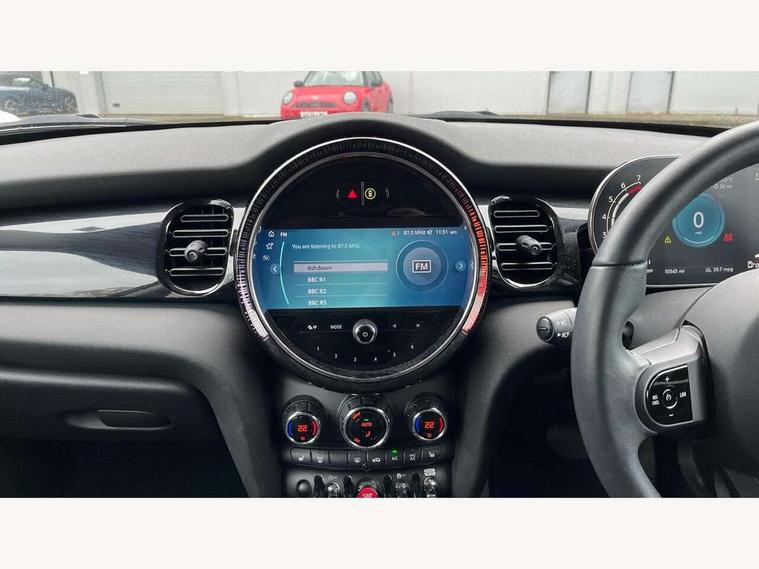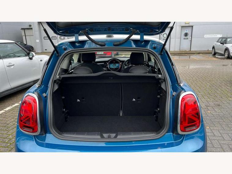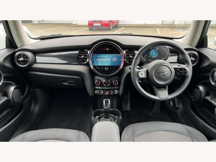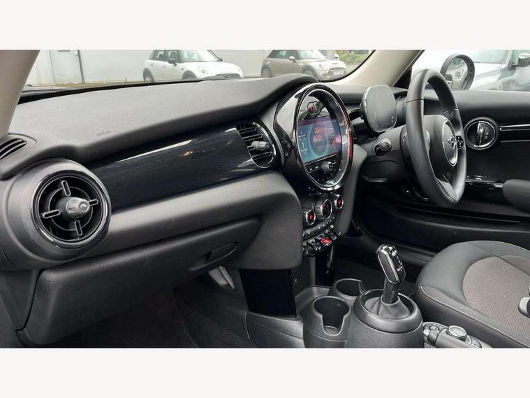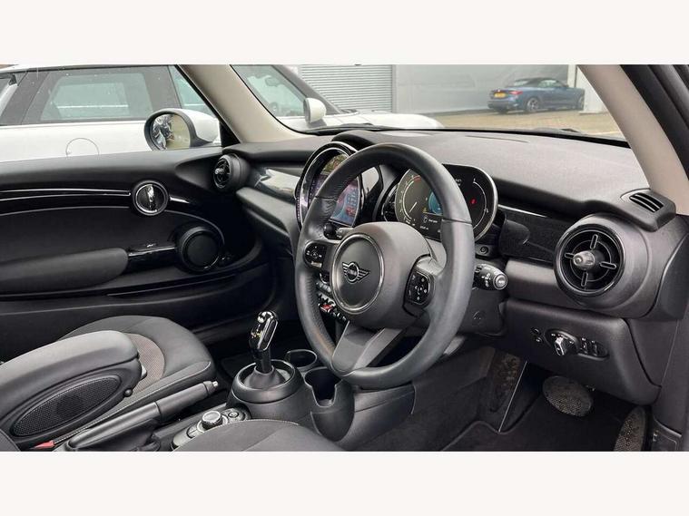 Apple CarPlay, Automatic start/stop function with brake energy recuperation, Compatible mobile phone bluetooth with audio streaming, Cruise control with brake assist, Electro-mechanical speed dependant steering assistance, Flexible car sharing preparation, Instrument cluster, Mini E-call, MINI TeleServices, On board computer, Service interval indicator, Double Vanos system, Fully variable valve control, High precision injection, Performance Control, Steptronic transmission with double clutch, 8.8" touchscreen with LED ring, FM tuner and DAB digital radio, 3rd brake light, Automatic headlight activation switch, Body colour fuel filler cap, Chrome border high gloss black slats radiator grille, Dynamic brake lights, Electric front windows, Exhaust tailpipe on left with chrome finisher, Heated rear window, Heated windscreen washer jets, LED headlight with closed ring and daytime driving lights, Metal door sill strips with MINI imprint, Model logo Cooper on right of tailgate, Rain sensor window wipers, Rear fog lights, Rear LED lights with union jack design, Rear window wiper, Side scuttle panel with integrated indicator, Sun/heat protection glass, White indicator lenses, 12V Accessory socket in centre console, 2 seat bench in 2nd row, 4 lashing eyes in luggage compartment, 60/40 split folding rear seat, Ambient lighting, Carbon black colour line - Knee roll and door armrest, Chrome interior highlights, Cupholders, Front and rear head restraints, Front and rear isofix with front passenger airbag deactivation, Front floor mats in velour, Glove compartment, Height and length steering column adjustment, Interior lighting with 12 different colours across the dashboard, underneath door bezel with illuminated laser-engraved design on central display, Leatherette gearshift lever and handbrake gaiters, LED reading lights, vanity mirror lights, front foot well light and spotlight on front seats, Manual air conditioning, Mechanical seat adjustment - forward/back & backrest for front seats and driver seat height adjust, Multifunction steering wheel, Passenger seat height adjuster, Satellite grey headlining including grab handles and clothes hooks, Single front passenger seat, Sport leather steering wheel with speed limiter and audio/communication controls, Storage compartments in doors, Sunvisors with vanity mirrors, 3 point seatbelts on all four seats, 6 Airbags - front, side, head and seat belt tensioners, Anti-lock braking system (ABS), DSC - Dynamic Stability Control, Front and rear disc brakes, Single tone fanfare horn, Tyre pressure monitoring system, Alarm system with tilt sensor, monitoring doors, bonnet interior and tailgate, Electronic vehicle immobiliser, Start/stop toggle with keyless go, Piano black interior trim, Tool kit, Tyre repair kit,