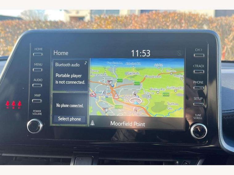 4.2" coloured TFT screen for multi-information display, Adaptive cruise control, Bluetooth connectivity, Electric power steering, Front parking sensors with ICS and auto braking, Hybrid system indicator, Lane departure alert with steering control, Rear parking sensors with ICS, Remote boot door release in cabin, Remote boot door release in key, Reversing camera, Road sign assist - RSA, Simple Intelligent parking assist, Smart entry and push button start, Touch 2 Go navigation system, Trip computer, Voice recognition, Vehicle Stability Control (VSC), 6 speakers, AM/FM radio, DAB Radio (Digital Audio Broadcasting), Toyota touch 2 multimedia system with 8" display, USB connector, Wi-fi connectivity, Anti-jam protection on power windows, Auto dimming rear view mirror, Auto high beam, Auto up and down function on all power windows, Auto wipers, Automatic headlights, Automatic headlights cut-off, Automatically retractable door mirrors, Black and body coloured rear bumper, Black upper front grille, Body colour door handles, Body colour door mirrors, Body colour front spoiler lip, Body coloured front bumper, Boot door release with push button, Electric heated door mirrors, Follow me home headlights, Front and rear power windows, Front fog lights, Hard tonneau cover, Honeycomb lower front grille, LED daytime running lights, LED front light guide, LED High mounted stop light, LED rear brake lights, LED rear combination lights, Manual headlight levelling, Noise reduction layer on front windows and windscreen, Power adjustable door mirrors, Privacy glass, Rear spoiler, Rear tailgate, Rear window defogger, Rear window wiper, Reflective LED headlights, Shark fin antenna, UV-filter on driver and passenger windows, UV-filter on rear windows, 12v power outlet - front, 3 rear headrests, 3 spoke leather steering wheel, 60/40 split folding rear seat, Adjustable rear headrests, Adjustable speed limiter switch on steering wheel, Assist grips front and centre pillar, Audio and telephone switches on steering wheel, Black front door assist grips, Blue ambient lighting on front cup holders, Blue ambient lighting on front doors, Boot light, Chrome interior door handles, Cloth upholstery, Driver and front passenger personal light, Driver and front passenger Whiplash Injury Lessening seats, Driver and passenger seatback pockets, Dual zone automatic air conditioning, Front cupholders, Front head restraints, Front sports seats, Glovebox with internal light, Heated driver and front passenger seats, Hooks for luggage holding net, Humidifying Nanoe air purifier, Illuminated entry system, Isofix attachments on rear seats, Leather gearshift, Light on driver sun visor, Light on passenger sun visor, Manual telescopic steering wheel, Manual tilt steering wheel, Manually height adjustable driver seat, Manually height adjustable front passenger seat, Manually reclining driver seat, Manually reclining front passenger seat, Manually sliding driver seat, Manually sliding front passenger seat, Microphone on front personal light, Mirror on driver sun visor, Mirror on passenger sun visor, Multimedia switches on steering wheel, Pollen filter, Power adjustable lumbar support on driver seat, Shopping bag hooks, Slow opening on lower glovebox, Voice recognition switch on steering wheel, 16 Disk front wheel brake, 3x3 point rear seatbelts, ABS+EBD+Brake assist, Electronic parking brake, Front and rear seatbelt reminder, Front passenger airbag on/off switch, Hill start assist control (HAC), Pre collision system with pedestrian detection, Pre-tensioners and force limiters, Rear door child safety locks, SRS Airbags - Driver + Front passenger, front side, front and rear curtain and driver's knee airbags, Toyota safety sense, Tyre pressure monitoring system, Acoustic vehicle alert system (AVAS), Glass-breaking alarm sensors, Immobiliser, Intrusion alarm, Intrusion sensor, Motion sensor alarm, Power door locks, Power passenger window lock, Remote central locking, Black lower dashboard, Black upper dashboard, Piano black console, Satin grey deco line on upper dashboard, Tyre repair kit,