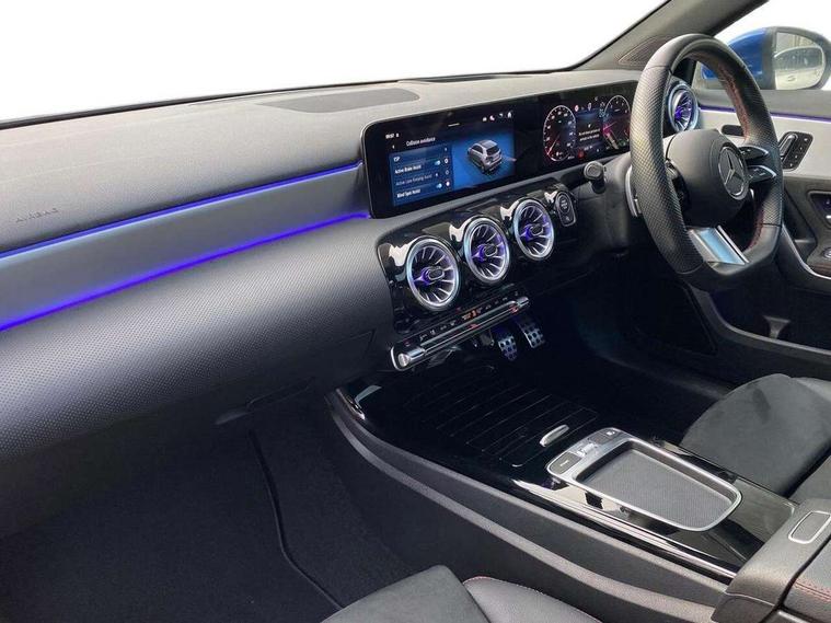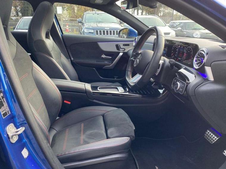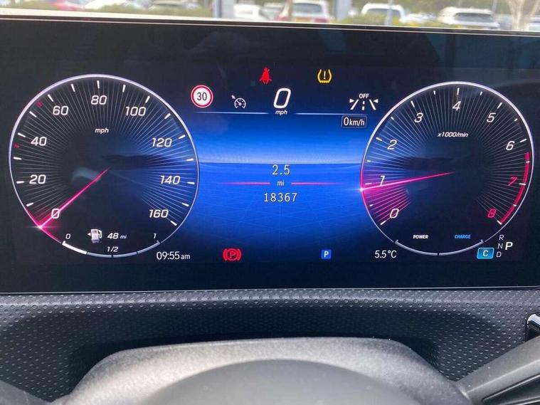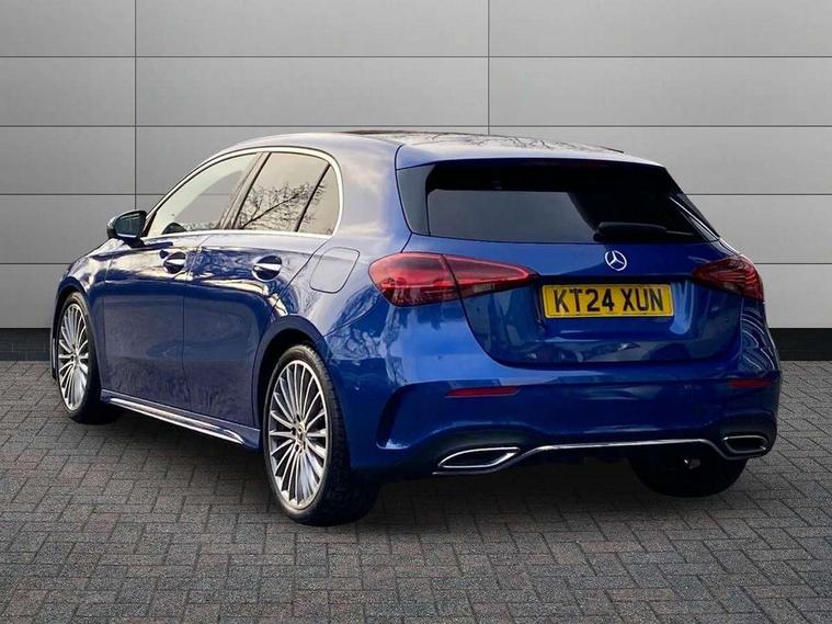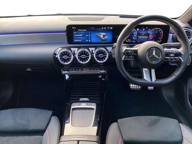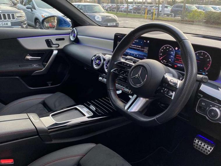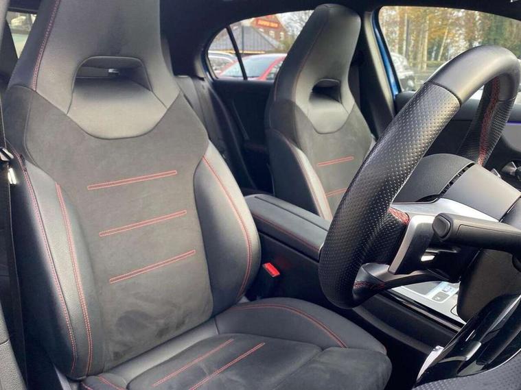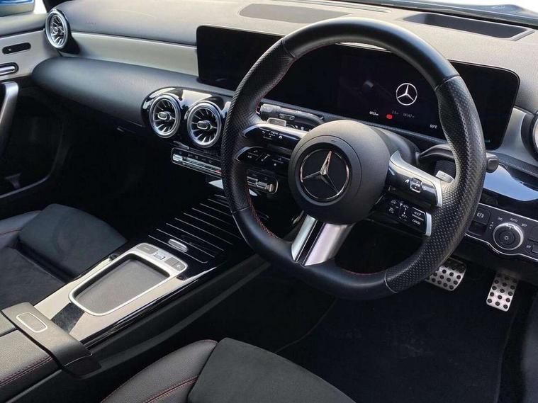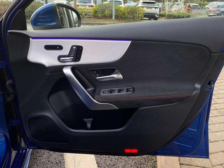 10.25 inch touchscreen central media display, 10.25" Digital instrument cluster display screen, Attention assist, Brake pad wear indicator warning light, Car wash mode, Direct steering, Direction indicators with lane change function, Dual bluetooth interfaces, DYNAMIC SELECT with a choice of driving modes (ECO, Comfort, Sport and Individual), Easy pack tailgate hands-free access, ECO start/stop function, Engine start/stop button, Fluid level warning indicator for fuel, oil, coolant and washer fluid, Fluorescent jacket for driver, Hard-disk navigation, Head up Display, Hey Mercedes Voice activation, Lamp failure indicator, MBUX Interior assistant, Mercedes me connect including emergency call system, accident recovery, breakdown and maintenance management, Mercedes me remote services, Outside temperature gauge, Owners manual in English, Pre-installation of private car share, Preinstallation for Mercedes Benz link, Remote boot closing, Service indicator (ASSYST), Smartphone integration with Apple CarPlay and Android auto, Speed sensitive power steering, Tailgate, Traffic sign assist, Trip computer in multifunction display with current consumption indicator, Wireless charging, Lowered comfort suspension, DAB Digital radio, MBUX multimedia system, Mercedes Benz advanced sound system (225 W) with 10 speakers, 1 central speaker, speakers on doors, a tweeter on door, one sub woofer + boost amplifier, 4 Electric Front and Rear windows, Adaptive brake lights, AMG body styling - AMG front apron with front splitter and AMG rear apron and visible exhaust tailpipe trim elements, Body colour bumpers, Body colour door handles with chrome inserts, Body colour side skirt, Body coloured door mirrors, Chrome beltline strips, Diamond radiator grille with pins in fine star pattern, Electric adjustable and heated door mirrors with integrated LED side indicators, Exhaust system with 2 visible tailpipe trim elements and rear apron, Headlamp assist automatic headlamp activation, Heat insulating dark tinted rear and rear side windows, Heated glass rear windscreen + timer control, LED daytime running lights, LED High level third brake light, LED tail lamp, Multibeam LED headlamps with adaptive highbeam assist and cornering function, Panoramic sliding sunroof, Privacy glass, Radio aerial, Rain sensing windscreen wipers with two sensitivity settings, Rear fog lights, Rear side wing doors, Rear windscreen wiper, Surround lighting with logo projection, Window line trim strip in chrome, 3 seat bench in 2nd row, 3 Spoke flat bottom leather multi function steering wheel with perforated leather in grip area, 40:20:40 split folding rear seats, Air conditioning - Two zone thermotronic luxury automatic climate control with display, AMG floor mats, Automatic child seat recognition sensor, Black air vents with surround in silver chrome, Black roof lining, Brushed stainless steel sports pedals with rubber studs, Electrically adjustable front memory seats including lumbar support and backrest inclination, Front centre armrest with stowage, Front seat backs luggage nets, Galvanished gear shift paddles on steering wheel, Heated front seats, Height/reach adjustable steering column, Illuminated Mercedes Benz lettering front door sills with changeable cover, Interior lighting - 64 colour Ambient lighting, Interior mirror with reading lamps in black and frameless, Rear armrest with 2 cupholders, Seat occupancy sensor for front passenger seat, Single front passenger seat, Sports seats with integrated headrests, Stowage compartment in centre console with retractable cover, Sunvisors with illuminated vanity mirrors, Twin front cupholders, Light and sight pack - A Class, Mirror package - A Class, Parking pack with 360 degree camera - A Class, Seat comfort pack - A Class, USB pack plus - A Class, 3 rear 3 point seatbelts, ABS with Brake Assist, Active bonnet, Adaptive brake assist with hold function and hill start assist, Black seatbelts, Bonnet with power domes, Childproof locks manually operated for rear doors and electrically operated for rear power windows, Crash responsive emergency lighting, Driver and passenger head and side airbags, Drivers knee airbag, Dual stage driver/passenger airbags, Electronic parking brake, ESP curve dynamic assist, ESP with ASR, Exit warning, Front and rear seatbelt reminder, ISOFIX and top tether child seat fixing points in two outer rear seats, Tyre pressure monitoring system, Warning triangle and first aid kit, Window airbags, Alarm system/interior protection/immobiliser, Guard 360 degree vehicle protection, Keyless entry lock/unlock, Keyless Go, Remote central locking and crash sensor with emergency opening function, Light longitudinal grain aluminium trim, 19" AMG multi-spoke light alloy wheels, aerodynamically optimised, painted in titanium grey with high sheen finish, Summer tyres, Tirefit sealant kit,