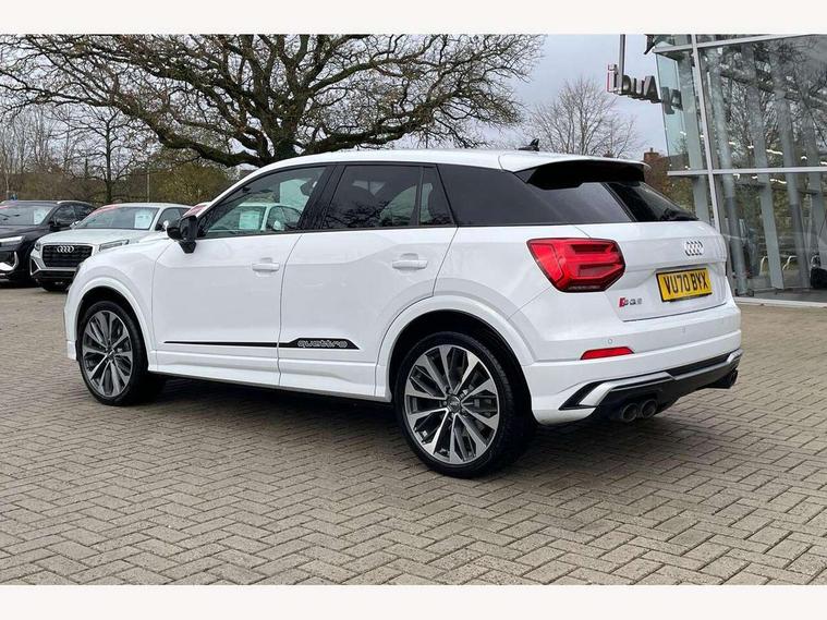 Audi drive select, Audi smartphone interface, Automatic start/stop system with recuperation, Bluetooth interface includes bluetooth audio streaming, Cruise control, Driver's information system - 3.5" colour display, Instrument dials with S logo, MMI SD card integrated nav with 3D map display, dynamic route guidance with TMC, MMI search, natural voice recognition and myAudi special destinations, Power operated tailgate, Progressive steering, Service interval indicator, S sports suspension with lowered by 20mm, 2 x SDXC card reader, Audi music interface - apple iPod, apple iPhone, USB storage media, compatible MP3 players, 2 x USB charging points and 1 x Aux-in, CD Drive, DAB digital radio and AM/FM radio, MMI radio plus with 7" colour MMI screen and MMI controller, Black window trims, Electrically adjustable and heated door mirrors with integrated LED side indicators, Enhanced rear spoiler, Exhaust tailpipes in black, Front and rear electric windows, Front windscreen with grey tinted sunband, Headlight washers, Interior mirror, LED headlights with LED rear lights + dynamic rear indicators, LED indicator lights, Manual folding door mirrors, Privacy glass - dark tinted rear and rear side windows from B-pillar backwards, Rain and light sensors, Rear wiper, S design body styling - underbody protection, SQ2 - front bumper with S design inlets, rear diffuser in silver and roof spoiler, S design radiator grille with horizontal struts and SQ2 logo, 3 spoke flat bottomed high multi-function leather sport steering wheel with gearshift paddles, 60/40 split folding rear seat bench, Black cloth headlining, Dual zone electronic climate control, Floor mats with contrast stitching, Front centre armrest, Front headrests, Front sport seats with S embossed logo, Height/reach adjust steering wheel, Illuminated door sill trims with S logo, ISOFIX child seat mounting for front passenger with airbag deactivation and outer rear seat including top tether attachment point for outer rear seats, Manual seat adjustment including seat height adjustment for front seats, Stainless steel pedals, Storage compartments - Glovebox, cupholder compartment in centre console, storage compartment in rear centre console, front and rear door pockets, Three rear headrests, Black styling pack - Q2, Extended interior upholstery pack - Q2, Non smoking pack - Q2, 3x3 point rear seatbelts, 6 airbags - Front, curtain and front side airbags, Electromechanical parking brake, Electronic stabilisation control including ABS, ASR and EDL, Extended and proactive pedestrian protection, Hill hold assist, Multi collision brake assist, Pre-sense front with pedestrian recognition, S model enhanced braking system, Seatbelt monitoring, Tyre pressure warning light, Warning triangle and first aid kit, Anti theft alarm, Anti theft wheel bolts, Central locking system with remote control key, Electronically operated child locks, Aluminium interior element, 19" 5 twin spoke V design alloy wheels with diamond cut finish,