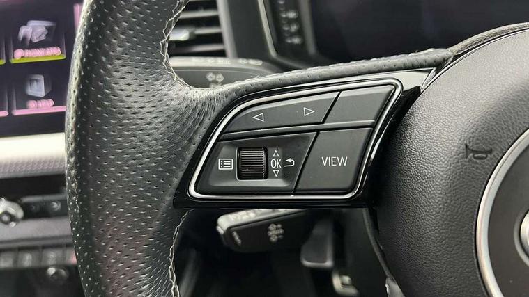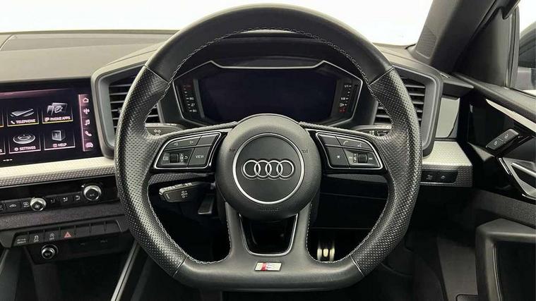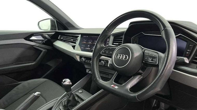 10.25" Digital instrument cluster display classis style instrument dials + speed, odometer, time, outside temperature, telephone menu + fuel level warning, Audi drive select - power steering assistance + engine, Audi smartphone interface with connect compatible smartphone via USB directly MMI display + Nav, music, third party apps controlled via MMI controller, Automatic start/stop system, Bluetooth interface, Cruise control, Driver's information system, Electromechanical power steering, Emergency e-call, Lane departure warning system, Rear parking sensor, Service interval indicator, Speed limiter, Voice control system, Washer fluid level indicator, Sports suspension, 2 x USB type C connection points, 6 passive loudspeakers, DAB Digital radio, MMI radio plus with 10.1" colour MMI display screen and MMI touch, Auto dimming rear view mirror, Black side skirts, Body coloured bumpers, Door sill trims with aluminium inlays and logo, Electric front and rear windows, Electrically adjustable, heated, folding door mirrors with integrated LED side indicator, Front side air inlets in grained matt black and C frame in anthracite black, Front wing badges, Heat insulating glass windscreen and side windows, Heated rear windscreen, High level LED brake light, LED headlights with LED rear lights + dynamic rear indicators + headlight adjustment and high beam, turning light + LED daytime running lights, Privacy glass, Rain and light sensors, Rear fog lights, Rear side wing doors, Rear wiper, Side front spoiler lips in grained matt black, 12V socket in centre console with two cup holders, 3 rear seats with headrests, 3 seat bench in 2nd row, 3 spoke flat bottomed multi-function plus leather steering wheel with S badging, grips in preforated leather and contrast stitching, 40:60 Split folding rear seat or folded fully, Black cloth headlining, Driver and passenger seat with manual height adjust with forward and backwards adjustment, Front and rear black floor mats with contrast stitching in fine silver, Front head restraints, Front passenger seat, Height and reach adjustable steering wheel, ISOFIX child seat mounting for front passenger and outer rear seats including top tether attachment point of outer rear seats, Leather gear knob with aluminium trim, Leatherette handbrake grip, Luggage compartment light with front and rear reading lights, Manual air conditioning, Manually adjustable lumbar support in front seats, Stainless steel pedals, Black styling pack - A1 Sportback Black Edition, LED interior lighting pack - A1, Luggage compartment pack - A1, 3x3 point rear seatbelts, Audi pre-sense front with pedestrain and cyclist recognition, Brake assist function, Driver and front passenger airbag with front side and head airbags, Electronic Stability Control including ABS, EBD, ASR and EDL, Front passenger airbag deactivation switch, Hill hold assist, Manual rear child locks, Seatbelt height adjustment for front seats, Seatbelt monitoring, Tyre pressure warning light, Warning triangle and first aid kit, Anti theft alarm, Anti theft wheel bolts and loose wheel warning, Immobiliser, Remote central locking with 2 foldaway keys, Aluminium trim for control switches, air vents and digital instrument cluster, Black dashboard, Silver grey inlays polygon structure in diamond paint finish, Structured grey accent areas including air vents, door handle recesses and centre console in quartz paint finish,