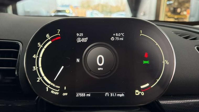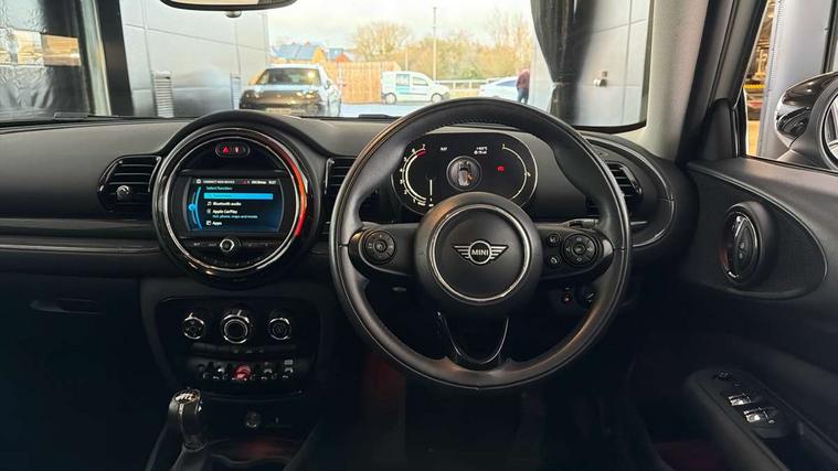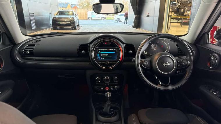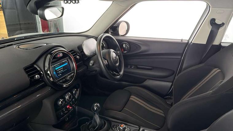 Active Guard incl speed limiting and lane departure functions with auto steering, and front collision warning with brake intervention, Automatic start/stop function with brake energy recuperation, Compatible mobile phone bluetooth with audio streaming, Digital cockpit, Electro-mechanical speed dependant steering assistance, Instrument cluster, Mini E-call, MINI TeleServices, On board computer, 6 Speed manual transmission including gear change indicator display, Double Vanos system, Fully variable valve control, High precision injection, Performance Control, FM tuner and DAB digital radio, Bonnet scoop, Chrome border honeycomb structure radiator grille with S badge, Chrome fuel filler cap, Dynamic brake lights, Electric windows, Heated rear window, Heated windscreen washer jets, LED headlights with closed ring as daytime driving lights, LED rear light with union jack design, Metal door sill strips with Cooper S imprint, Model logo, Model logo on rear doors, Rain sensor with auto headlights, Rear fog lights, Rear window wiper, Side scuttle panel with integrated indicator, Split rear doors, Sun/heat protection glass, Twin exhaust tailpipe, White indicator lenses, 12V Accessory socket in centre console, 3 spoke sport leather steering wheel + limiter function and audio controls, 360L luggage compartment capacity, 4 lashing eyes in luggage compartment, 60/40 split folding rear seat, Chrome interior highlights, Cupholders, English handbook, Front and rear head restraints, Glove compartment, Headliner with grab handles and clothes hooks, Height and length steering column adjustment, Interior lighting with 12 basic colours selectable via toggle switch in roof, Isofix rear child seat preparation, Leather gearshift lever and handbrake gaiters, LED reading lights, vanity mirror lights, front foot well light and spotlight on front seats, Manual air conditioning, Mechanical seat adjustment, driver seat height adjust, forward/back and front seats backrest, Multifunction steering wheel, Storage compartments in doors, Sunvisors with vanity mirrors, Toolkit, Excitement pack - Clubman, Navigation pack - Clubman, 2 tone horn, 3 point seatbelts on all seats, 6 Airbags - front, side, head and seat belt tensioners, Anti-lock braking system (ABS), DSC - Dynamic Stability Control, Electronic handbrake, Front and rear disc brakes, Tyre pressure monitoring system, Alarm system with tilt sensor, monitoring doors, bonnet interior and tailgate, Auto drive away locking, Deadlocking function, Electronic vehicle immobiliser, Locking wheel bolts, Start/stop toggle with keyless go, Tyre repair kit,