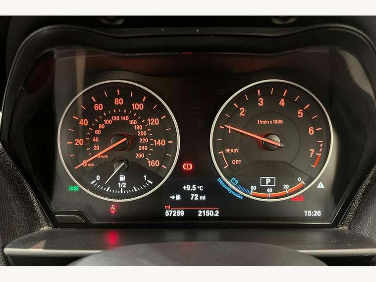 'Lights On' Reminder warning buzzer, BMW Teleservices, Brake force display, Engine start/stop button, Oil level indicator, On board computer, On board diagnostics, Outside temperature display, Service interval indicator, Drive Performance Control, Auxiliary point for auxiliary devices, BMW professional radio with CD player, DAB Digital radio, Body colour bumpers, Body colour door handles, Body coloured door mirrors, Chrome exhaust tailpipe, Chrome kidney grille with black vertical slats, Electric front windows + one touch + anti-pinch, Electric rear windows, Electrically adjustable door mirrors, Follow me home headlights, Green tinted heat insulating glass, Heated door mirrors, Heated windscreen washer jets, Rain sensor including auto headlights activation, Rear wash/wipe, Welcome lighting, 12V power socket in centre console, 12V power socket in passenger footwell, 4 grab handles, 60/40 split rear seats, Anthracite Velour floor mats, Door armrests, Folding rear seat head rests, Front folding/sliding centre armrest with storage, Front head restraints, Front/rear courtesy lights with soft on/off dimming, Glovebox, Isofix rear child seat preparation, Leather gear knob and handbrake grip, Load restraint lashing eyes, Multifunction steering wheel with audio controls, Reach + rake adjustable steering column, Storage compartments in doors, ABS/EBD, Automatic Stability Control (ASC), BMW emergency call, Child locks on rear doors, Cornering brake control (CBC), Crash sensor, Driver/Passenger airbags (Impact dependent), Drivers knee airbag, DSC+, Dynamic brake control, Dynamic Traction Control - DTC, Front passenger airbag deactivation, Front side airbags, Hill start assist, ITS head airbags for front/rear, Pyrotechnically pre-tensioned front seatbelts, Seat belt force limiter, Three 3 point rear seatbelts, Tyre pressure monitor, Warning triangle and first aid kit, Automatic drive away locking facility, Electronic immobiliser, Remote central locking, Thatcham Cat.1 alarm,