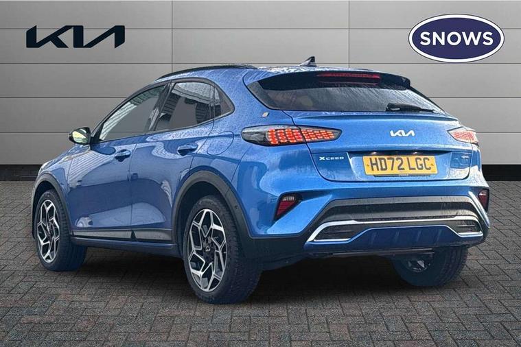10.25" touchscreen satellite navigation with telematics, 12.3" TFT supervision cluster display, Android auto with voice control, Apple car play with voice control, Blind spot collision warning, Bluetooth with Voice Recognition & Music Streaming, Cruise control + speed limiter, Driver attention warning, Emergency call service, Forward Collision-Avoidance Assist (FCA) - City/Pedestrian/Cyclist, Intelligent speed limit warning, Lane Following Assist (LFA), Lane keep assist, Motor driven power steering, Reversing camera with dynamic guide lines, Smart park assist system (SPAS) with parallel/perpendicular/reverse with front/rear parking sensors, Smart power tailgate, Tailgate, Trip computer, Wireless Mobile Phone Charger, Intelligent Stop and Go, 1x Rear USB-C, 2x Front USB (1x USB-C, 1x USB-A), DAB Radio with MP3, JBL Premium sound system with 8 speakers, Rear console USB C-type charge port, Steering wheel mounted controls, All-round Electric Windows with Auto Up & Down Function, Auto dimming rear view mirror, Automatic defog system, Automatic headlights, Black side sill mouldings with body coloured inserts, Black wheel arch trim, Body colour bumpers, Body colour exterior door handles, Body colour rear spoiler, Body coloured and dark chrome rear skid plate, Dark chrome window surround, Electrically folding, adjustable and heated door mirrors with integrated LED indicator lights, Gloss black shark fin antenna, Heated rear window with timer, High beam assist, High gloss black door mirrors with matt black lower housing, High gloss black roof rails, High glossy black and dark chrome radiator grille, LED Bi-Function projection headlights, LED daytime running lights, LED front fog lights, LED High-mounted Brake Light, LED honeycomb rear light, LED rear fog light, Panoramic sunroof with tilt/slide function and automatic electric roll blinds, Privacy glass - Rear windows and tailgate, Rain sensing front wipers, Rear side wing doors, Rear wiper, Smaller XCeed badge on rear left hand tailgate, Tinted glass, Variable front intermittent wipers, Wide view drivers door mirror, Windscreen Washer Level Warning, 3 seat bench in 2nd row, 40:20:40 split folding rear bench seat, All-round height adjustable headrests, Aluminium pedals, Centre Console with Storage Box and Sliding Armrest, Chrome interior door handles, Cupholders in centre console, Driver + front passenger electric lumbar support, Driver and passenger front seat pockets, Driver seat memory function, Driver seat power height adjuster, Dual zone automatic air conditioning, Faux leather door trim, Front and luggage area 12V power sockets, Front and rear door storage, Front cabin LED map light with sunglasses case, Front Passenger Seat Height Adjuster, Heated front seats, Heated outer rear seats, Heated steering wheel, Illuminated driver and front passenger sunvisors with vanity mirror, ISOFIX Child seat top tethers and anchor fixings, Leather D cut steering wheel, Leather/suede upholstery, Luggage area light, Luggage area parcel shelf, Luggage hooks, Rear cabin light, Rear centre armrest with cupholders, Single front passenger seat, Tilt/telescopic adjustable steering wheel, ABS with Electronic Brakeforce Distribution (EBD) and Brake Assist System (BAS), All round 3-point seatbelts, Dual horn, Electronic parking brake, Electronic stability control (ESC) and vehicle stability management (VSM), Front passenger airbag cut off switch, Height adjustable front seatbelts, Hill start assist control (HAC), Impact sensing auto door unlocking, Rear door child safety locks, Seatbelt reminder warning, Traction control, Twin curtain airbags, Twin front airbags, Twin front side airbags, Tyre pressure monitoring system, Alarm system, Engine Immobiliser & Deadlocks, Locking wheel nuts, Smart key with engine start/stop button, 18" GT-Line alloy wheels, Tyre mobility kit,