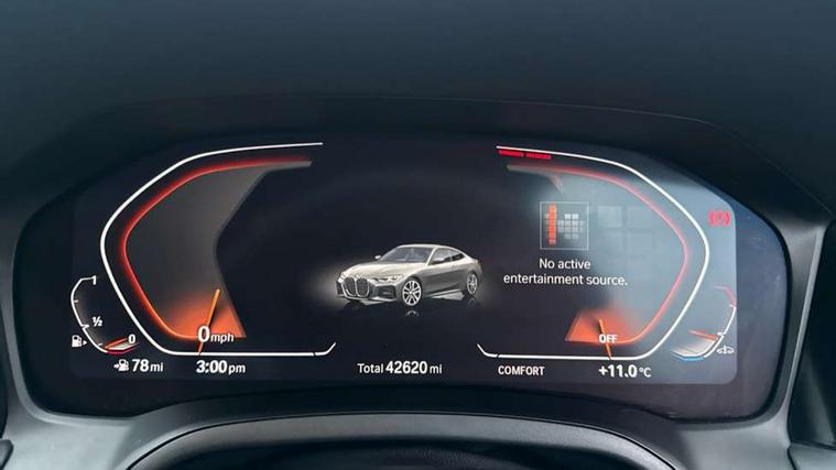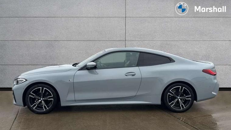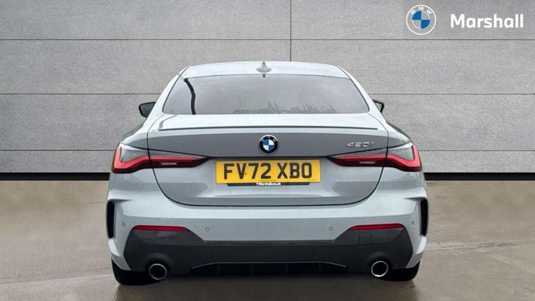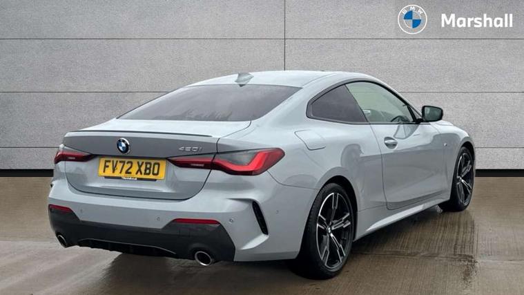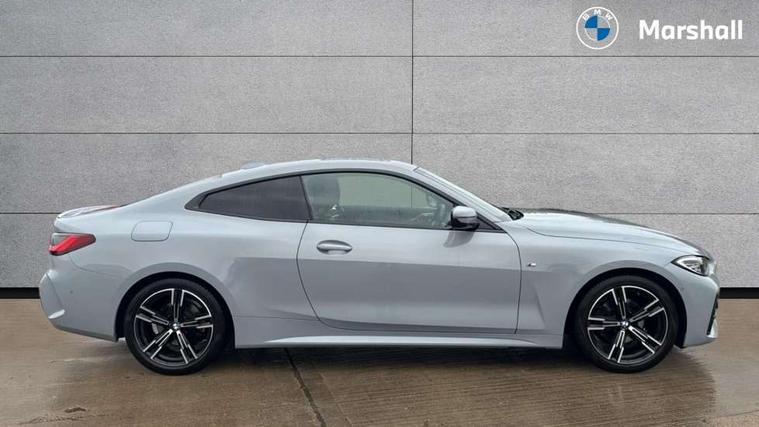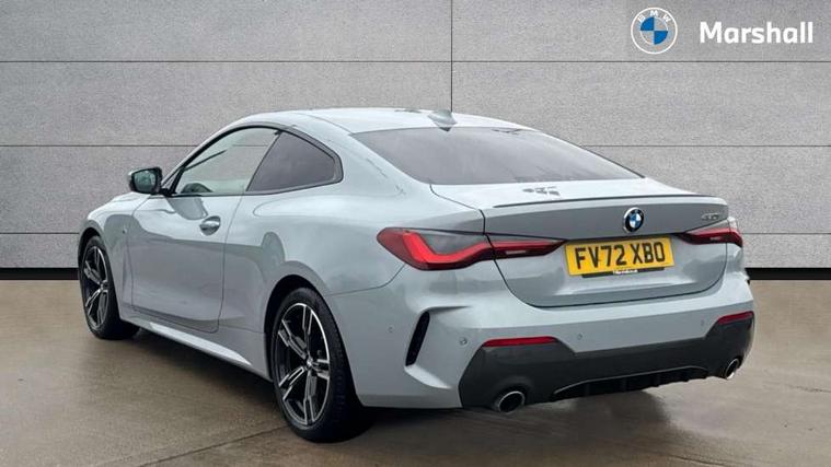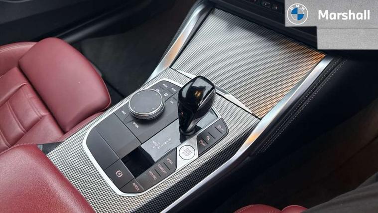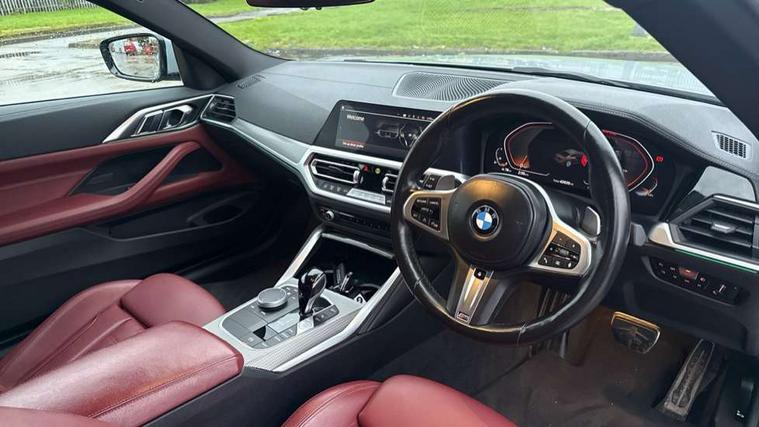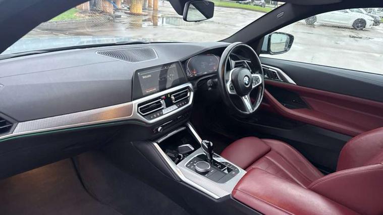 Active guard plus, Attentiveness assist, Auto start-stop, BMW ConnectedDrive online services, BMW iDrive controller on centre console, BMW Live Cockpit Professional Nav with 12.3" instrument display + 10.25" display, Intelligent Voice Assist, BMW OS 7, HDD, 2USB, 4G LTE connect, BMW service history, BMW Teleservices, Brake pad wear indicator in front and rear, Check Control warning system for monitoring of lights and door/luggage compartment open warning, Condition based service, Cruise control with speed limit function, Electric power steering with Servotronic steering optimised at all speed ranges, Gearshift time display in manual mode, Instrument cluster with speedometer with mph readout, tachometer, fuel gauge and oil temperature gauge, Integrated owners handbook, Oil sensor for level and grade, warning by check control system, On board computer - average speed, fuel consumption, outside temp display with acoustic warning, clock/date, service interval, odometer/trip meter, Optimum shift indicator, Run flat indicator, Shifting point display, Touch control functionality for BMW Live Cockpit Professional Nav, Variable sport steering, 8 speed automatic steptronic transmission with gearshift paddles, Balanced 50/50 weight distribution, Double joint spring strut front axle, Double VANOS, Drive performance control - ECO PRO, comfort and sport modes, High precision injection, Low centre of gravity, M sport suspension, Petrol Particulate Filter, Stroke dependent dampers, VALVETRONIC engine management, 2x USB Type C ports in front centre console for charging and data transfer, 2x USB Type C ports in rear centre console for charging, DAB tuner, Electronic service booklet, Acoustic glazing, Automatic headlight beam throw control with load dependent regulating reaction, dynamic compensation of braking dive and acceleration squat, Automatic windscreen wipers and automatic headlight, Automatically dimming electrochromatic rear view mirror, BMW emblem on engine compartment lid and tailgate, BMW kidney grille with mesh grille front side of the nuggets in matt aluminium and frame in chrome high gloss, Body colour fuel filler flap, Body colour roof fin, Brushed aluminium inserts in the front door sill finishers with BMW designation, Door sill strips, Dynamic brake lights, Electric windows - front and rear, with open/close fingertip control, anti trap facility and comfort closing function all round, Exterior mirrors - electrically folding with anti-dazzle, Fading support, Follow me home headlights, Front and rear bumper system, Front apron plastic in body colour, Green tinted heat protection glazing, High gloss shadow line exterior trim, Illuminated bow type door handles in body colour drivers side with door lock, Interior rear view electrochromatic mirror with automatic anti dazzle function, LED daytime running lights, LED front fog lights, LED front indicators, Licence plate panel integrated into front bumper and tailgate, Lightweight engineering, M designation on front side panels, left and right, M rear boot spoiler, Model designation on right side of tailgate, One piece front bumper cover including towing eye cover in body colour, Preparation for high beam assistant, Rear boot, Reversing light, Side frame decorative moulding black matt, Two part LED tailights in L-shape with components in smoked glass, brake light, LED turn indicator and rear fog light, Visible exhaust tailpipe finisher, Visible VIN plate, Welcome lights in interior and door handle area, Widened track and increased camber values for max transverse dynamics, agility and steering precision, Window recess cover black high gloss, Windscreen wipers with integrated heated washing jets, 12V power socket in front centre console, 2 front cupholder in centre console with clamping elements and matt black inlay, 2 Rear seat headrests, 2 seat bench in second row, 3 spoke M sport leather multifunction steering wheel, 3 zone automatic air conditioning, 4 pieces lashing eyelets in luggage compartment, 40:20:40 split folding rear seat and rear centre armrest with two cupholders, Anthracite headlining, Armrest integrated in front and rear door trim + front centre console armrest, BMW ID, Driver seat backrest width adjustment, Four grab handles integrated in roof lining, Front and rear door pockets, Front and rear reading lights, Front sport seats, Heated driver and front passenger seats, Height adjustable front headrests, Height adjustable mechanically and infinitely variable steering column, Illuminated armrest storage compartment, Illuminated glove compartment with separate small compartment, Make-up mirror lights, Single front passenger seat, Storage compartment in rear centre console, Sunvisors with illuminated vanity mirrors and ticket pocket, Toolkit located in luggage compartment, Velour front floor mats, Vernasca leather upholstery, Ambient lighting pack - 4 Series, Connected professional pack - 4 Series, M sport exterior styling pack - 4 Series, 2 x 3-point rear seatbelts, Battery safety cut-off, BMW emergency call, Brake energy regeneration, Braking pre-tensioning, Child seat ISOFIX attachment for the two outer rear seats, Coasting in idle in ECO PRO mode, Cornering brake control (CBC), Crash sensor activating of airbags, Unlocking doors, hazard warning lights, interior light, safety battery terminal, Driver and front passenger side airbags, integrated in the door side seat backrest bolsters for all seat variants, Driver/Front Passenger airbags, Dry braking, Dynamic brake control, Dynamic stability control + (DSC+) - Anti-lock Braking System (ABS) with brake assist and cornering brake control + Automatic Stability Control (ASC), Dynamic Traction Control - DTC, Electric parking brake including automatic hold function and automatic release of the parking brake when driving off, Electronic differential lock control (EDLC), Front and rear ventilated brake disc, Front passenger manual airbag deactivation, Head airbags for all 4 outer seats, Hil