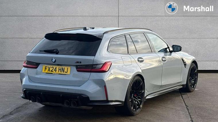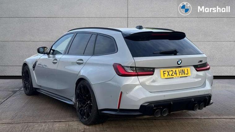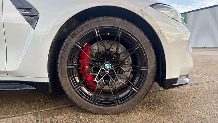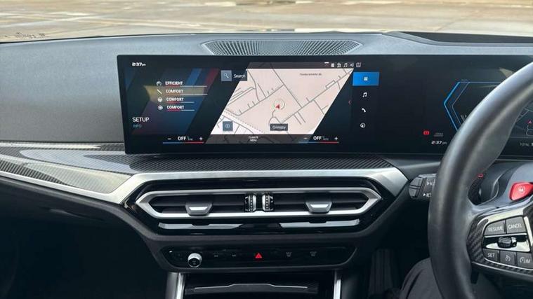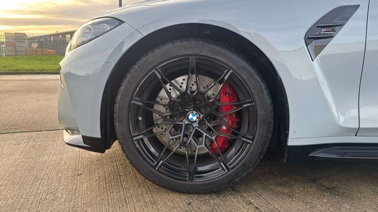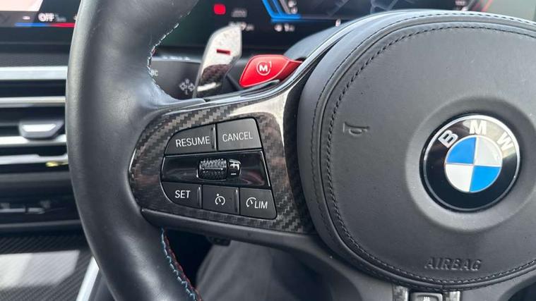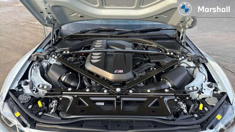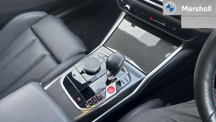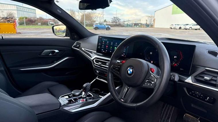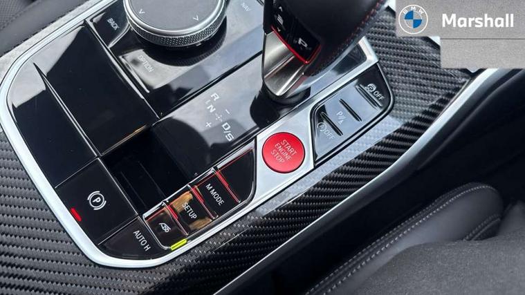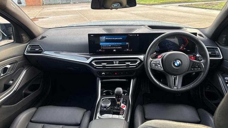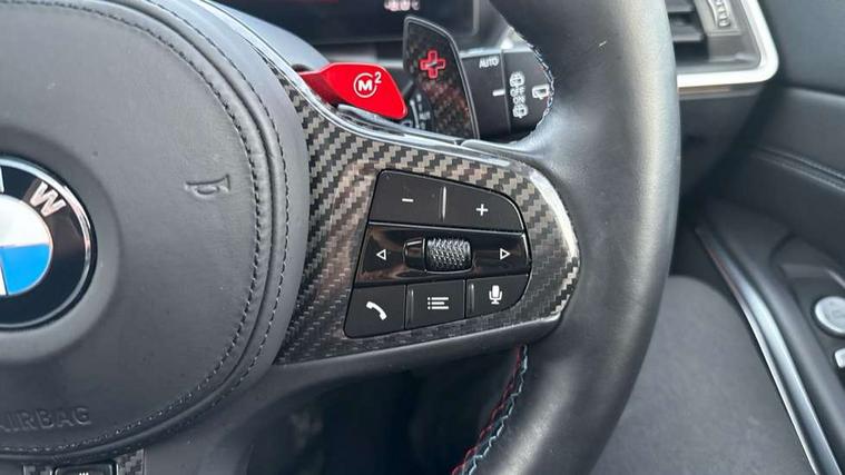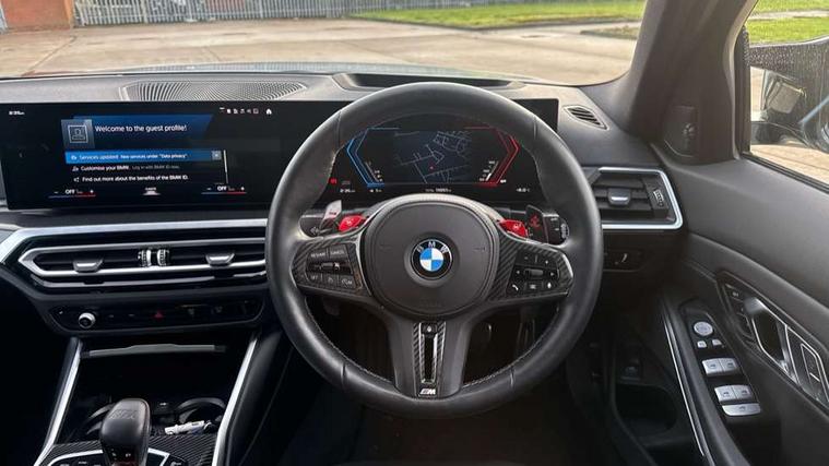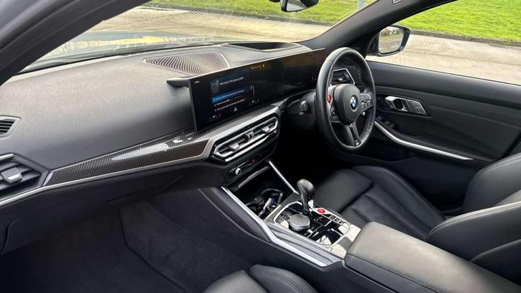 Active guard plus, Automatic start/stop system, Bluetooth functionality with Apple CarPlay/Android Auto, BMW ConnectedDrive online services, BMW iDrive controller on centre console, BMW legal emergency call, BMW Live Cockpit Professional sat nav system with 12.3" instrument display and high resolution control display, BMW Online services, BMW Teleservices, Brake pad wear indicator warning light, Condition based service, Door/boot open warning light, Driving experience switch, Electric boot lid, Head up Display, Illuminated control elements, Instrument cluster with extended contents, Lights on warning, M drive buttons, Oil sensor for level and grade, warning by check control system, Oil temperature gauge, On board computer, On board diagnostics, Optimum shift indicator, Outside temperature display, Pull away assistant, Run flat indicator, Service interval indicator, Shifting point display, Speed limiter, Variable sport steering, Adaptive M Sport suspension, Double joint spring strut front axle, M Drive Professional including track mode, laptimer, traction control & Drift analyser, M Sport differential, M steptronic sport transmission with drivelogic, Safety battery terminal clamp, 8 programmable favourite buttons, Auxiliary point for auxiliary devices, DAB Digital radio, Harman/Kardon loudspeaker system, Personal eSim, 3rd brake light, Acoustic glazing, Auto dimming driver's door mirror, Auto dimming rear view mirror, Automatic headlights + automatic windscreen wipers, Automatic parking function on front passenger's exterior mirror, Black model designation badges, BMW emblem on engine compartment lid and tailgate, BMW high gloss shadow line with extended contents, BMW Individual shadowline lights, Body colour bumpers, Carbon fibre reinforced plastic (CFRP) roof with high gloss black roof aerial bulge and roof mouldings, Day time running light, Door mirror integrated indicators, Door sill finishers with aluminium inserts, Dynamic brake lights, Electric adjustable heated door mirrors, Electric folding door mirrors, Electric front and rear windows with one touch/convenient open/close function, Follow me home headlights, Front and rear apron plastic in body colour, Front and rear bumper system, Headlight beam throw control, Heat protection, sun protection glazing, Heated rear window with automatic switch off, Heated washer jets, High beam assistant, High gloss black frameless kidney grille with M badge, High gloss black lower bumper edges, side sills and diffuser edge binding, High gloss black M roof rails, Illuminated bow type door handles in body colour drivers side with door lock, LED number plate light, LED tail lights with 3D L-shaped LED light design, M designation, M Sport entry door sill strips, Mirror glass aspheric on driver's side, convex on passenger side, Rear fog lights, Rear reflectors, Rear right M3 competition inscription, Rear side wing doors, Rear wiper, Reversing light, Shark fin roof aerial, Strakes in front side panel, black matt/black high-gloss, with model badge, Visible VIN plate, Welcome lighting, 2 front cupholder in centre console with clamping elements and matt black inlay, 2 x 12 V Power sockets (luggage compartment and front centre console), 2 x USB Type C ports for charging and data transmission in front centre console, 3 folding rear headrests, 3 seat bench in 2nd row, Ambient inside door handle light, Ambient lighting for instrument panel, Ambient lighting for storage compartment, Ambient lighting front and rear, Ambient lighting in door panels, Anthracite headlining, Battery in luggage compartment, Carbon fibre centre console incl. cover for cupholders and storage compartment, Carbon fibre decorative steering wheel finishers, Carbon fibre shift paddles, Carbon fibre strip in instrument panel on front passenger side, Centre console armrest with storage compartment, Compartment in front of cupholder, Driver/passenger sunvisors with illuminated vanity mirrors + covers, Dynamic ambient interior lighting, Electric front seats + driver memory, English handbook, Floor mats in velour, Folding rear centre armrest with 2 cupholders, Front door storage bins with bottle holder, Front isofix attachment + airbag deactivation, Front seat backrest width adjustment, Front seats lumbar support, Front/rear door armrests, Gearshift lever with embossed M badge, Heated front seats, Height adjustable front headrests, Isofix on 2nd row outer seats, Lockable/illuminated glovebox, Luggage compartment lighting, Manual 40:20:40 split folding rear seat with two tilt positions for backrest, Multifunction steering wheel, Rake/reach adjustable steering wheel, Single front passenger seat, Storage compartment in rear doors, Three zone automatic air conditioning, Through loading system, Toolkit located in luggage compartment, Wireless charging tray, Additional storage compartment pack - M3, Connected package professional - M3, High gloss shadowline exterior trim pack - M3, 3 point seatbelts on all seats, Anti-lock braking system (ABS), Automatic Stability Control (ASC), Brake energy regeneration, Brake fade compensation, Compound structure brake discs, Cornering brake control (CBC), Crash sensor, Driver/Front Passenger airbags, Dry braking, Dynamic brake control, Dynamic stability control + (DSC+), Dynamic Traction Control - DTC, Electromechanical parking brake, Electronic differential lock control (EDLC), Front and rear head airbags, Front seat side impact airbags, Front seatbelt pretensioners + load limiters, Hill start assist, M Sport seat belts, Rear child proof door locks, Seat occupancy detection for driver and passenger side, Seatbelt warning, Side impact protection, Two tone horn, Tyre pressure sensor, Warning triangle and first aid kit, Centre lock switch, Closing system with central locking, Digital key, Electronic immobiliser, Thatcham cat 1 remote alarm, Vehicle Key with 4 buttons including the integrated key, Galvanic finish to control surrounds, High gloss black interior trim, T