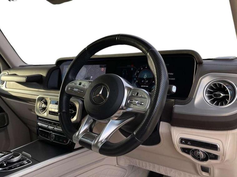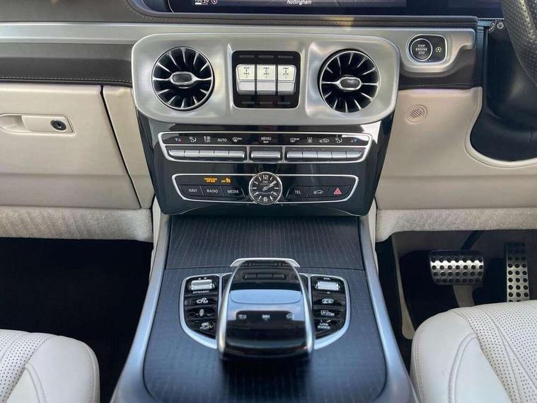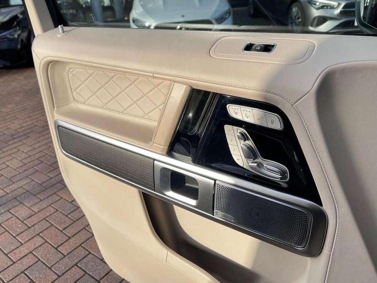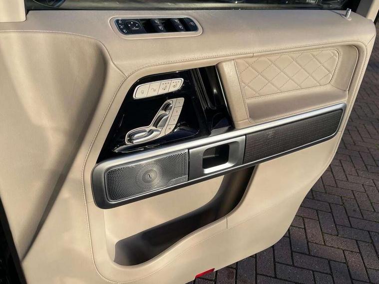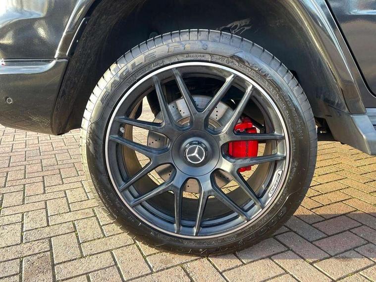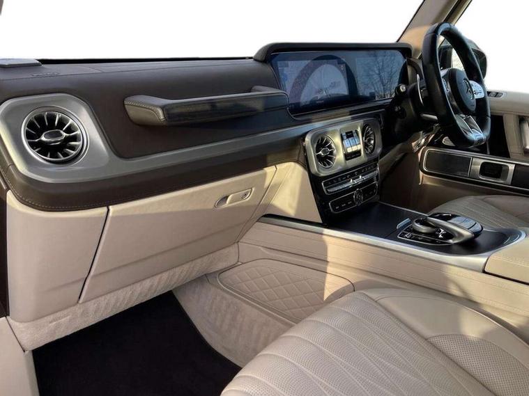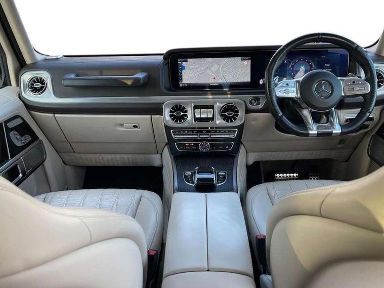 360 degree parking camera, Active lane keep assist, AMG DYNAMIC SELECT with a choice of driving modes (ECO, Comfort, sport, sport+ and Individual), AMG instrument cluster, Analogue clock, Attention assist, Bluetooth interface for hands free telephone, COMAND online HDD Nav with media interface, radio/CD/DVD/MP3, 12.3" screen, linguatronic voice control, Communications module (LTE), Cruise control with speedtronic variable speed limiter, Mercedes connect me, Mercedes-Benz emergency call, Parktronic audio/visual front and rear parking aid, PAS, Service indicator (ASSYST), Smartphone integration with Apple CarPlay and Android auto, Touch pad controller for COMAND online, Traffic sign recognition, Trip computer, AMG Ride Control suspension, Differential lock, Electronic selectable low range gearing, Petrol Particulate Filter, Aux-in socket, Burmester surround sound system with 16 speakers, DAB digital radio module, Steering wheel mounted remote controls, AMG bodystyling with exclusive Mercedes AMG G 63 front aprons with cooling air intakes and AMG flared wheel arches in vehicle colour, AMG Panamericana radiator grille, AMG performance exhaust system, selectable , left and right two chrome trimmed twin tailpipes, Auto dimming rear view mirror, Automatic headlamp activation, Body colour bumpers, Dark tinted heat insulated glass, Door mirror memory, Electric slide and tilt sunroof, Electrically adjustable and heated door mirrors, Exterior protective strip with trim insert in black, Front and rear electric windows, LED daytime running lights, LED tail lights, Multibeam LED headlights with adaptive highbeam assist plus, Privacy glass with dark grey tinted glass for tailgate and rear side windows, Rain sensor windscreen wipers, Trailer coupling, V8 BITURBO lettering on front wings, 1/3 to 2/3 split folding rear seats, 12V socket in boot/load compartment and rear passenger compartment, Ambient lighting with 64 colours and projection of brand logo, AMG aluminium gear shift paddles, AMG door sill panels in brushed stainless steel, AMG floor mats with AMG lettering, Door pockets with bottle holder, Electric adjustable steering column with memory, Electric front headrests with memory, Electric front seats with memory function, Front and rear cup holders, Front centre armrest with storage compartment, Front seat back map pockets, Heated front seats, Heated multi function steering wheel, Heated rear seats, Ionisation of interior air including fine particle activated charcoal filter system, Luggage cover and safety net, Rear bench seat, Spectacles compartment in overhead control panel, THERMOTRONIC automatic climate control, Assistance pack - G Class, Exterior styling pack - G class, Stowage space pack - G class, ABS with Brake Assist, Adaptive brake system, Airbags - windowbags, AMG high performance braking system, Auto hold function, Black seat belts, Driver/Front Passenger airbags, Electronic four wheel traction control, ESP with ASR, Front side airbags, Hill start assist, i-Size and ISOFIX rear child restraint system, Pre-safe system for anticipatory occupant protection, Seatbelt pretensioners, Tyre pressure monitoring system, Alarm with towing protection, Immobiliser, Keyless Go access/ignition system, Remote central locking, Space saver spare wheel,