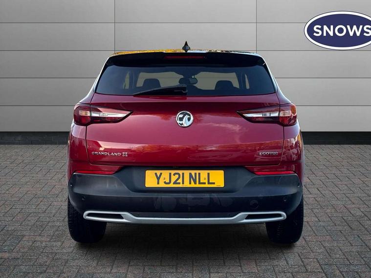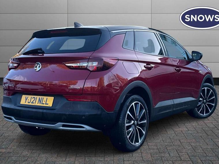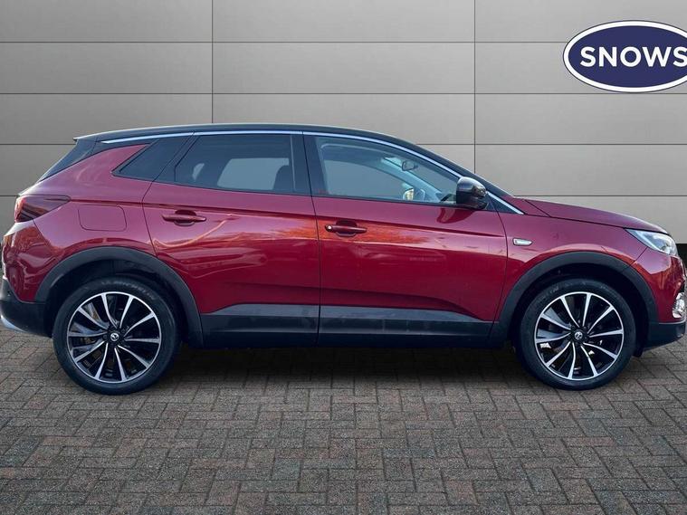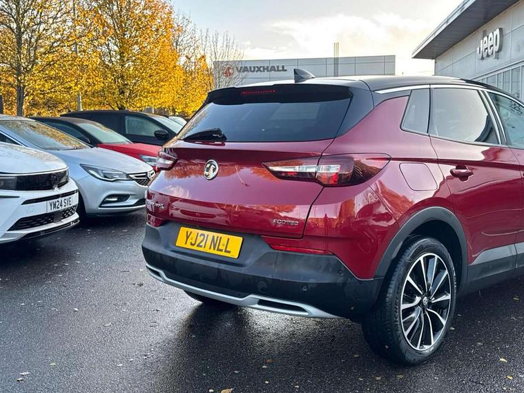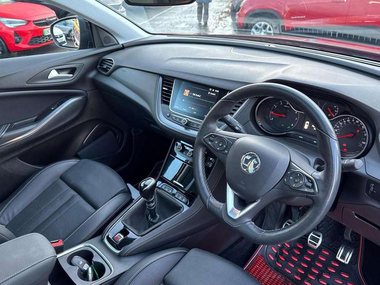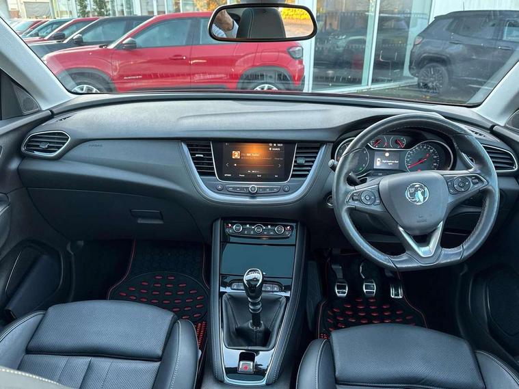3.5" colour information display, Audible lights on warning, Central facia display with digital clock, outside air temperature and audio information, Cruise control with speed limiter, Digital water temperature gauge with warning light, eCall emergency call system, Fuel gauge with low fuel level warning light, Gearshift up/down indication light, Lane departure warning system, Multi function trip computer, Multimedia navi pro with 8" colour touch+ sat nav+AM/FM/DAB radio, bluetooth audio streaming/mobile phone portal, Apple carplay/Android auto, USB, Rev counter, Service interval indicator, Speed sensitive electric power assisted steering, Speed sign recognition, Speedometer, Vauxhall connect including Ecall and connected services, iPod connection, Steering wheel mounted audio/phone/cruise controls, Alloy effect front door sill covers, Auto tilting door mirrors, Automatic anti dazzle rear view mirror, Automatic lighting control, Body colour door handles, Chrome effect bar on front grille, Chrome side window trim, Collapsible windscreen wipers, Dark tinted rear windows, Door to door illumination, Electrically foldable door mirrors with puddle lights, Electrically operated front and rear windows with safety auto reverse and one touch up/down facility, Gloss black finish B pillar, Hazard warning lights, Heated windscreen, High beam assist, High level centre rear brake light, IntelliLux LED headlights with adaptive forward lighting, Intermittent rear window wash/wipe, LED daytime running lights, LED front fog lights, LED rear fog lights, LED tail lights, Manual headlight beam levelling, Rain sensor windscreen wipers, Rear spoiler, Reversing lights, Shark fin aerial, Side protection mouldings, Side window demist vents, Sound absorbing windscreen, Twin electrically adjustable and heated door mirrors, Two speed windscreen wipers with variable intermittent wipe, Upper and lower bumper design, Welcome lighting, Windscreen demist vents, 12V electrical accessory socket in front, 12V electrical accessory socket in luggage compartment, 230V accessory socket, 3 spoke leather covered heated steering wheel with satin chrome bezel, Alloy sports pedals, Anti submarining front seats, Automatic air direction and fan speed with manual override, Black sienna leather side bolsters, Chrome effect interior door handles, Covered storage compartment in centre console and in driver armrest, Driver's centre armrest, Driver/passenger sunvisors with illuminated vanity mirrors, Electronic dual zone climate control with air conditioning + advanced predictive logic control using sensor + Charcoal filter + illuminated controls, Four adjustable facia vents, Front and rear passenger assist handles, Front door pockets with 2.6 litre capacity, Front seat back storage pockets, Heated rear windscreen with timed cut-off, Height adjustable front and rear head restraints, Interior courtesy light operated by all doors, Isofix attachment on front seat, Isofix system on outer rear seats, Luggage compartment cover, Premium lighting -Ambient centre console downlighter/ambient lighting in front doors, Reach + rake adjustable steering column, Rear door pockets with 1.8 litre capacity, Rear passenger compartment heating ducts, Rear reading lights, Sienna perforated leather upholstery, Two drinks holder in centre console, Ventilated glove box with lid, Ergonomic active sports front seats and power driver's seat pack - Grandland X, Exterior styling pack - Grandland X, Park and Go pack three - Grandland X, Safety pack - Grandland X, Versatility pack - Grandland X, Winter pack one - Grandland X, 3x3 point rear seatbelts, Anti-lock braking system (ABS), Child proof locks on rear doors, CSC - Cornering stability control, Deactivation switch for front passenger front and side impact airbags, Deflation detection system, Deformation zones front and rear, Driver/Front Passenger airbags, Dual seatbelt pretensioners on front seats, EBD - Electronic brakeforce distribution, Electronic parking brake, Energy absorbing steering column, Engine drag torque control, Front and rear seatbelt reminder, Front seat side impact airbags, Full size curtain airbags for driver, front passenger and outer rear passenger seats, Hill start assist, Hydraulic Brake Assist (HBA), Inertia reel lap and diagonal seatbelts for all seats, Load limiters on outer rear seatbelt retractors, Outer rear seatbelt pretensioners, Reinforced passenger safety cell, Side impact protection beams, Switchable electronic stability programme, Traction control, Tyre pressure monitoring system, 2 remote folding keys, Electronically protected audio equipment, Engine deadlock and immobiliser, Keyless entry and engine start/stop includes power operated tailgate with foot sensor, Locking wheel nuts, Remote control central locking, Remote security alarm system, Visible vehicle identification number, Black door panels with black premium leather effect inserts, 19" Multi spoke bi-colour diamond cut alloy wheels,