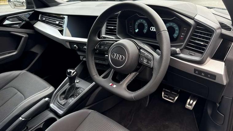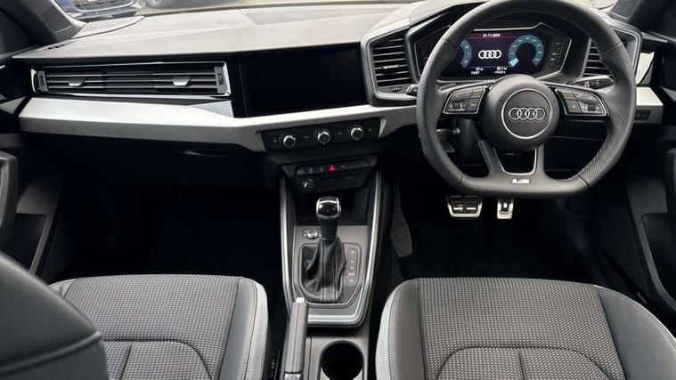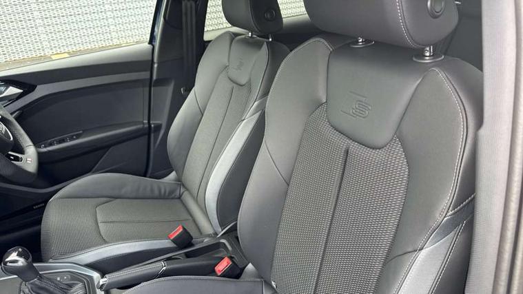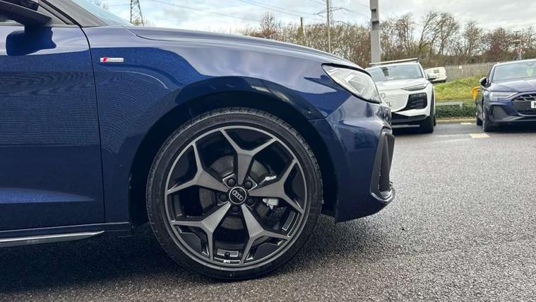 10.25" Digital instrument cluster display classis style instrument dials + speed, odometer, time, outside temperature, telephone menu + fuel level warning, Advanced driver attention and drowsiness monitor, Audi connect emergency call and service, Audi drive select, Audi remote connect and control, Bluetooth interface, Camera based traffic sign recognition, Cruise control, Driver's information system, Electromechanical power steering, Lane departure warning system, Rear parking sensor, Service interval indicator, Smartphone interface, Speed limiter, Start stop system with recuperation, Voice control system, Washer fluid level indicator, Sports suspension, 2 x USB type C connection points, 6 loudspeakers, DAB Digital radio, MMI radio plus with 10.1" colour MMI display screen and MMI touch, Auto dimming rear view mirror, Black door mirror housings, Black side skirts, Body coloured bumpers, Door sill trims with aluminium inlays and logo, Electric front and rear windows, Electrically adjustable, heated, folding door mirrors with integrated LED side indicator, Front side air inlets in grained matt black and C frame in anthracite black, Front wing badges, Headlight cleaning system, Heat insulating glass windscreen and side windows, Heated rear windscreen, High level LED brake light, LED daytime running lights, LED headlights with range control LED rear lights + dynamic rear indicators, Light and rain sensors, Privacy glass, Radiator grille and rear diffuser in matt anthracite black, Radiator protective grille frame in matt aluminium silver, Rear fog lights, Rear side wing doors, Rear wiper, Side front spoiler lips in grained matt black, 12V socket in centre console with two cup holders, 3 rear seats with headrests, 3 seat bench in 2nd row, 3 spoke flat bottomed multi-function plus leather steering wheel with S badging, grips in preforated leather, contrast stitching and paddle shift, 40:60 Split folding rear seat or fully collapsed, Black carpets, Black cloth headlining, Front and rear velour black floor mats with contrast stitching in fine silver, Front head restraints, Front passenger seat, Height and reach adjustable steering wheel, Interior lighting includes roof module, front and rear reading lights and right luggage compartment lighting, ISOFIX child seat mounting for front passenger and outer rear seats including top tether attachment point of outer rear seats, Leather gear knob with aluminium trim, Leather handbrake grip, Manual air conditioning, Manual height adjustable for driver and front passenger seat, Manually adjustable lumbar support in front seats, Stainless steel pedals, Ambient lighting package - A1, Black styling pack - A1 Sportback Black Edition, Luggage compartment pack - A1, 3x3 point rear seatbelts, Audi pre-sense front with pedestrain and cyclist recognition, Brake assist function, Driver and front passenger airbag with front side and head airbags, Electronic Stability Control including ABS, EBD, ASR and EDL, Front passenger airbag deactivation switch, Hill hold assist, Manual rear child locks, Seatbelt height adjustment for front seats, Seatbelt monitoring, Tyre pressure loss indicator, Warning triangle and first aid kit, Anti theft alarm, Anti theft wheel bolts, Immobiliser, Remote control key with safelock, Aluminium trim for control switches, air vents and digital instrument cluster, Black dashboard, Silver grey inlays polygon structure in diamond paint finish, Structured grey accent surfaces insert of air vents, interior door handle recesses and centre console in quartz paint finish,