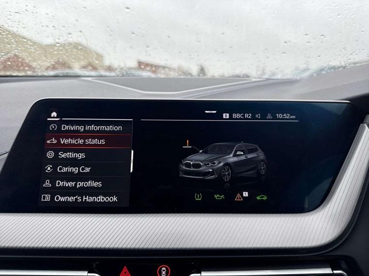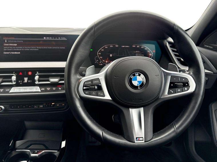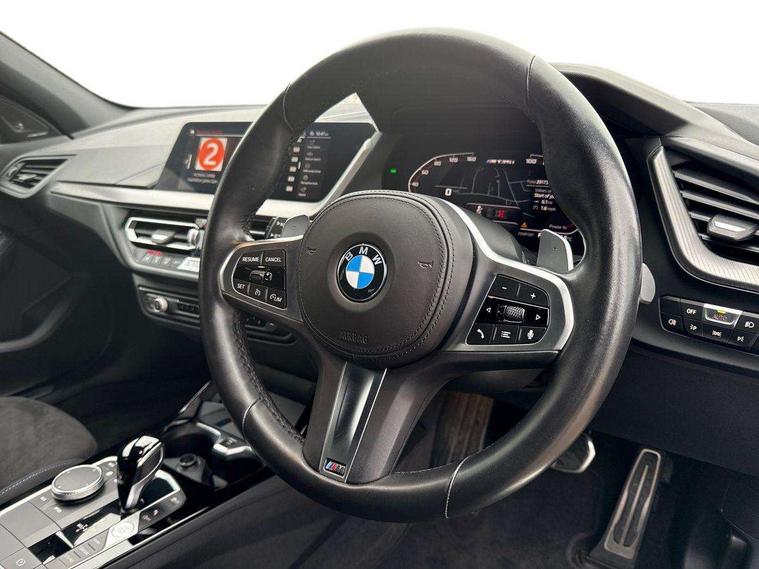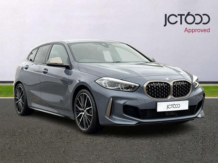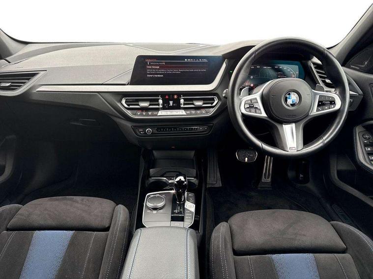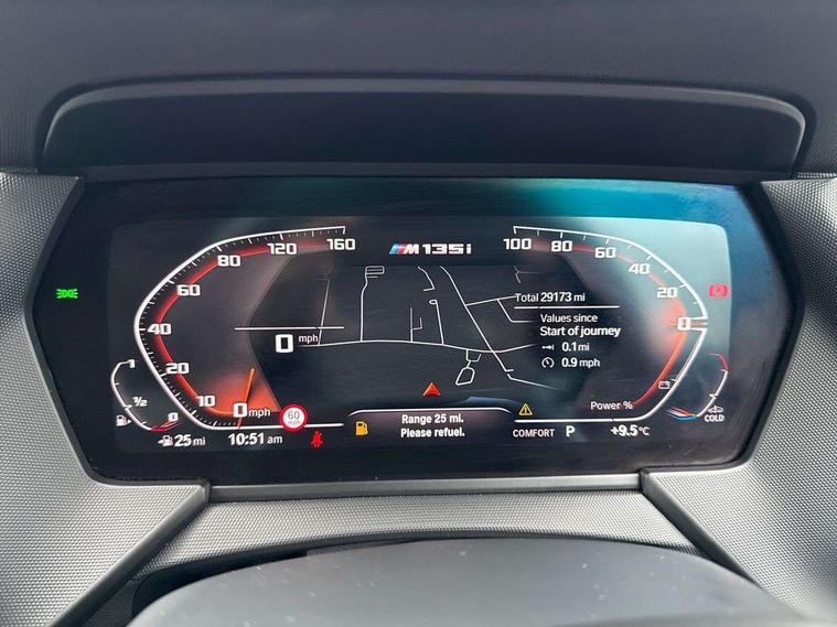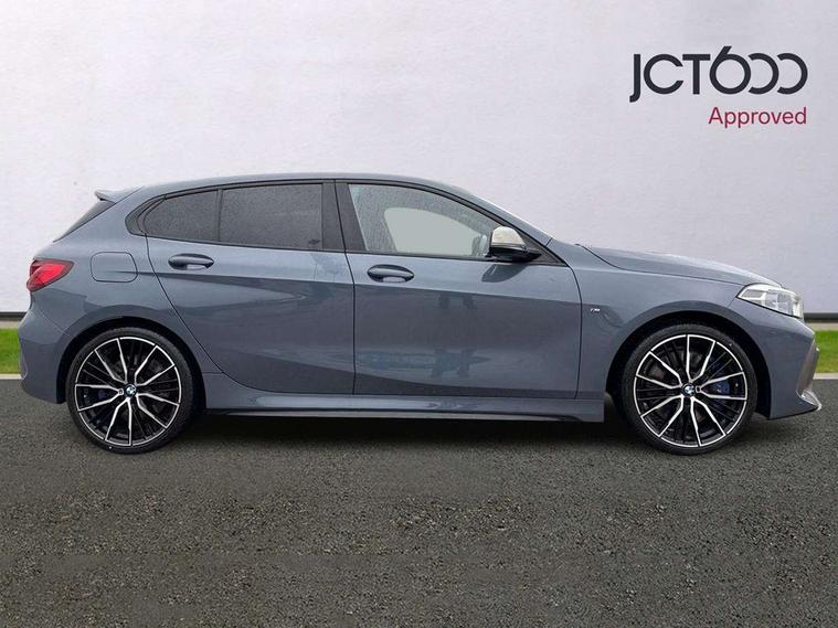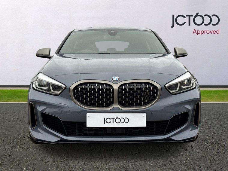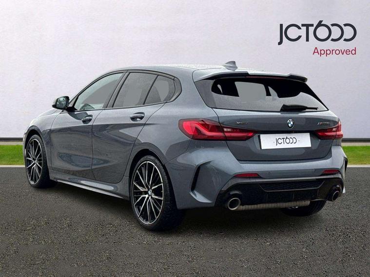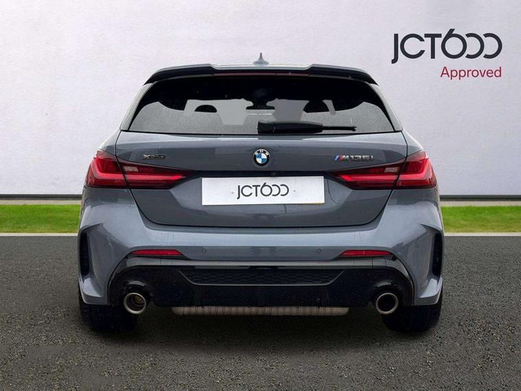 Active guard plus, Attentiveness assist, BMW ConnectedDrive online services, BMW Teleservices, Check Control warning system for monitoring of lights and door/luggage compartment open warning, Cruise control with speed limiter, Eco pro mode, Electric power steering, Electro hydraulically controlled multi-plate clutch transfers drive to rear axle and with power take-off device located on the front differential., Energy efficient operating strategy, Front axle single joint with specific axle kinematics to minimise drive influences on steering + provide increased rigidity agile driving behaviour, Gearshift time display in manual mode, Integrated owners handbook, Lane departure warning system, M Sports steering with M135i xDrive specific settings, Oil sensor for level and grade, On board computer, Optimum shift indicator, Personal Profile, Pull away assistant, Rigidly mounted rear subframe - Multi link construction with separate spring / damper configuration and excellent driving characteristics, Speed limit Info including no-overtaking indicator, Sporty fast gear shifting in sport mode, Aluminium lightweight construction, Anti roll bar front and rear, Balancer shaft, Double VANOS, Drive Performance Control, Eight speed sport automatic transmission with gearshift paddle switches, Electronic differential lock, Electronic selector lever, Engine cover with M performance designation, High precision injection, Larger fuel tank capacity (50 litres), Launch control, M135i specific heavily de-throttled engine intake air guide, M135i specific high-performance cooling package, M135i specific larger turbocharger with integrated divert-air valve, Petrol Particulate Filter, Twin tube gas filled shock absorbers with degressive characteristic curve, VALVETRONIC engine management, Variable, stepless and infinitely adjustable distribution of drive torque between the front and rear axles, xDrive intelligent all wheel drive with M135i specific reinforced components, DAB Digital radio, Auto dimming rear view mirror, Automatic headlight beam throw control, Automatic windscreen wipers and automatic headlight, Body colour door handles, Body colour roof trims, Cerium grey exterior mirror caps, Direction indicator side lights in exterior mirrors, Electrically adjustable exterior mirror with mirror adjustment switch on drivers armrest and aspheric on driver side, convex on passenger side, Exhaust tailpipe, Cerium Grey with bevelled finish - twin, round 100mm, left and right split, Fading support, Folding side mirrors with auto dimming/folding wing mirrors with auto dimming, Follow me home headlights, Front and rear bumper system with replaceable deformation elements, Front and rear electric windows with open and close fingertip control, anti trap facility and comfort closing, Front door sill finishers with M135i designation, Green tinted heat protection glazing, High gloss shadowline window frame, Recess cover mirror frames and B/C pillar embelisher trim, High level third brake light, Integrated front windscreen with washer jets, Kidney grille frame in Cerium Grey with Mesh design, LED daytime running lights, LED eyebrow turn indicators, Lightweight engineering, M logo designation side in cerium grey, M Performance exhaust system with valve control and minimised exhaust back pressure, M Performance specific setup, M Sport spoiler, Matt black air guide grilles, Matt black wheel arch trim, Model designation on electric bootlid includes xDrive designation for M135i xDrive, Nearside reverse light in rear light cluster, Preparation for high beam assistant, Rear fog lights, Rear side wing doors, Rear window wiper, Reinforced crank drive, new pistons and adapted con rods, Shark fin antenna, Trailer stabilisation logic, Visible VIN plate, Welcome lighting, 12V power socket in front centre console with blanking plug, 3 rear seat head restraints, 3 seat bench in 2nd row, 3 spoke sports leather steering wheel with black leather and stitching, pearl chrome decorative finish, specific M Badge, Anthracite headlining, Black boot net with lashing eyes, Cargo function on 2nd seat row, Child seat ISOFIX attachment for two outer rear seats and front passenger seat with anchorage points, Conditioned based service, Driver and front passenger backrest net on rear, Driver and front passenger seat heating, Driver side folding compartment in instrument panel, Folding rear clothes hook, Four grab handles integrated in roof lining, Front and rear door pockets with bottle holders, Front and rear side armrest integrated into door trim, Front armrest, Front M sports seats, Glove compartment, Height adjustable front head restraints, Luggage compartment for bag hooks on left and right, foldable luggage compartment liner and four lashing eyelets, Manual adjust steering wheel, Multi-function controls for steering wheel, Single front passenger seat, Storage compartment in centre console, Storage compartment in luggage compartment, Stowage of the parcel shelf in luggage compartment trim, Sun visors with vanity mirrors and insert tab, Two front centre console cupholders, Two zone automatic air conditioning, Type C two USB ports in rear centre console, Velour floor mats, Additional interior lighting pack - 1 Series M135i, BMW live cockpit professional pack- 1 Series, Connected pack professional - 1 Series, Interior lights pack - 1 Series, M Sport exterior styling aerodynamics pack - 1 Series 135i, 2 tone horn, 3 point seatbelts on all seats, front pyrotechnic belt tensioners, stopper and belt force limiters, rear coded belt buckles, Airbags - Front driver/passenger, front and rear curtain head protection, front side, manual deactivation of front passenger airbag, Anti lock braking system (ABS) with brake assist, BMW emergency call, Brake drying, Braking readiness, Child proof locking system in rear door, City braking function, Comfort modes, Cornering brake control, Crash sensor activating of airbags, Unlocking doors, hazard warning lights, interior light